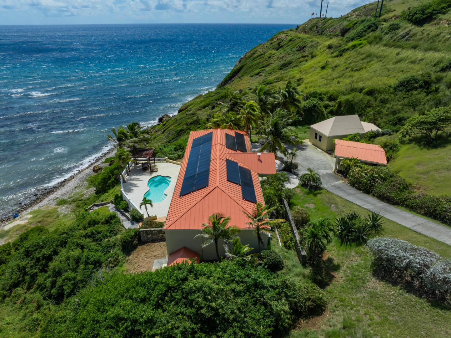 Waterfront Luxury Estate - 5 & 5A Turners Hole, St. CroixDiscover unparalleled waterfront living with this exquisitely renovated estate on 1.62 acres of prime Caribbean real estate. Located in the serene Estate Turners Hole area of St. Croix, this gated property offers breathtaking ocean views, a saltwater pool, and modern amenities, making it an ideal private residence or lucrative rental investment. The estate has undergone extensive renovations between 2023 and 2024, ensuring it is turnkey-ready for its next owners.The main house features 4 bedroom suites, 4.5 bathrooms, and 4,133 sq. ft. of interior space. The exterior spans 3,722 sq. ft., including a 3,110 sq. ftpool deck, a 468 sq. ft. gallery, and a 144 sq. ft. pergola. Recent upgrades include a central AC system, new windows and doors, fresh exterior paint, all bathrooms fully renovated and a full kitchen renovation with Samsung and Thor appliances. The pool deck has been completely redone with pavers, and the pool itself has been re-plastered and fitted with new plumbing.