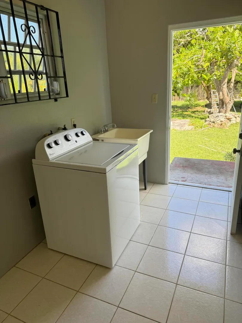 This beautiful 3-bedroom, 2-bathroom home is located in a quiet, established neighborhood on a peaceful dead-end street with no through traffic. Enjoy privacy and convenience just minutes from the west end of the island, grocery stores, restaurants, and shopping.The home features spacious bedrooms, a primary suite with a walk-in closet and private access to the front porch, and a bright, breezy layout with ceiling fans in every room. The kitchen is equipped with a gas stove and refrigerator, and there's a separate laundry room with a washing machine and wash tub.Outside, you'll find a large front porch perfect for relaxing and plenty of outdoor space for children to run and play. The home sits on a well-maintained lot with a cleared lot next door, offering extra space and privacy.