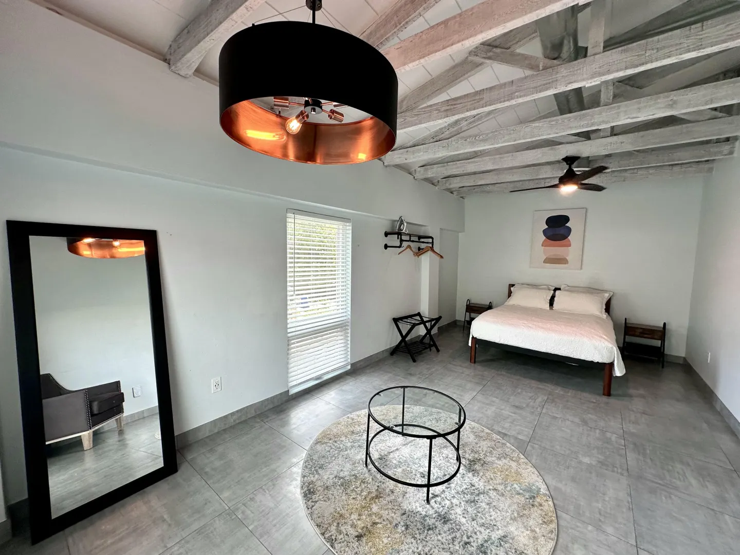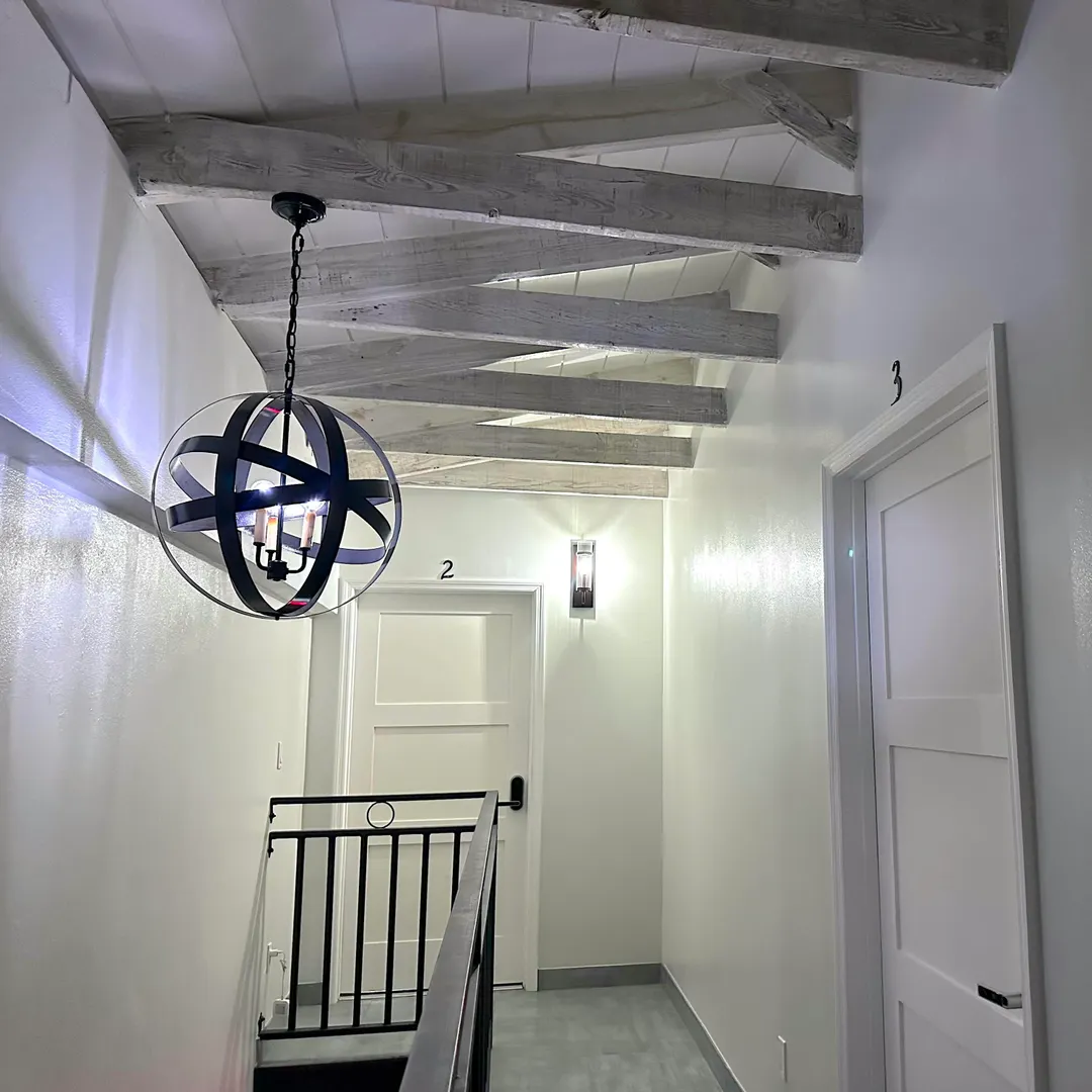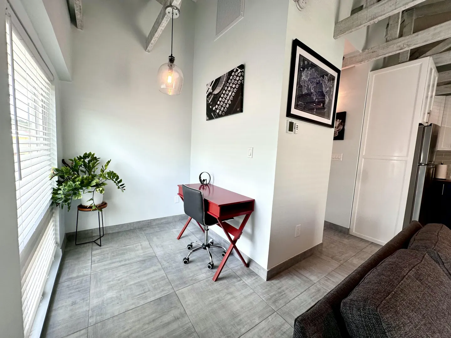 1-Bedroom/1-Bath upper-level apartment with a sea view in the heart of Christiansted Town. Unit is fully furnished with updated kitchen, private home office nook, central A/C, flat screen Smart TV, washer/dryer, WiFi, monthly pest control, & trash pick up. Private parking is available for Tenants. Unit is above a modern work space & cafe which features great breakfast, lunch, coffee, tea, and smoothies as well as private, enclosed work spaces with desks perfect for remote work. Dinner is available at the downstairs restaurant which also features a Beergarden & cocktail/wine bar. Unit is cozy and provides both quiet privacy with updated windows and central A/C and convenience just outside. Walking distance to restaurants, bars, stores, groceries, banks, & a public park.