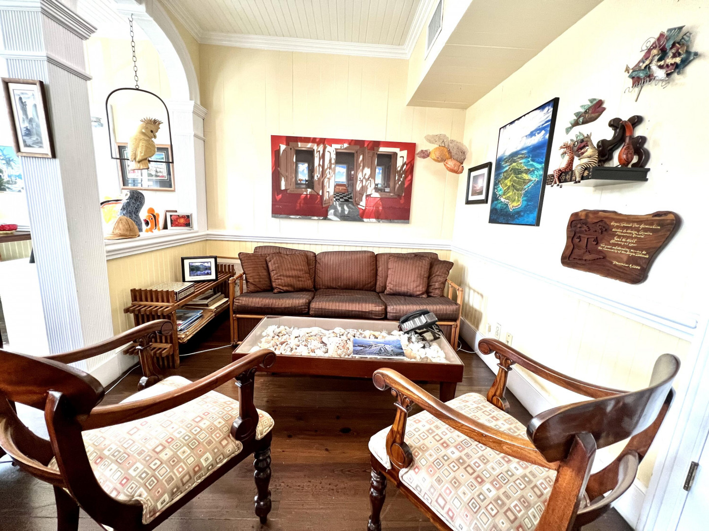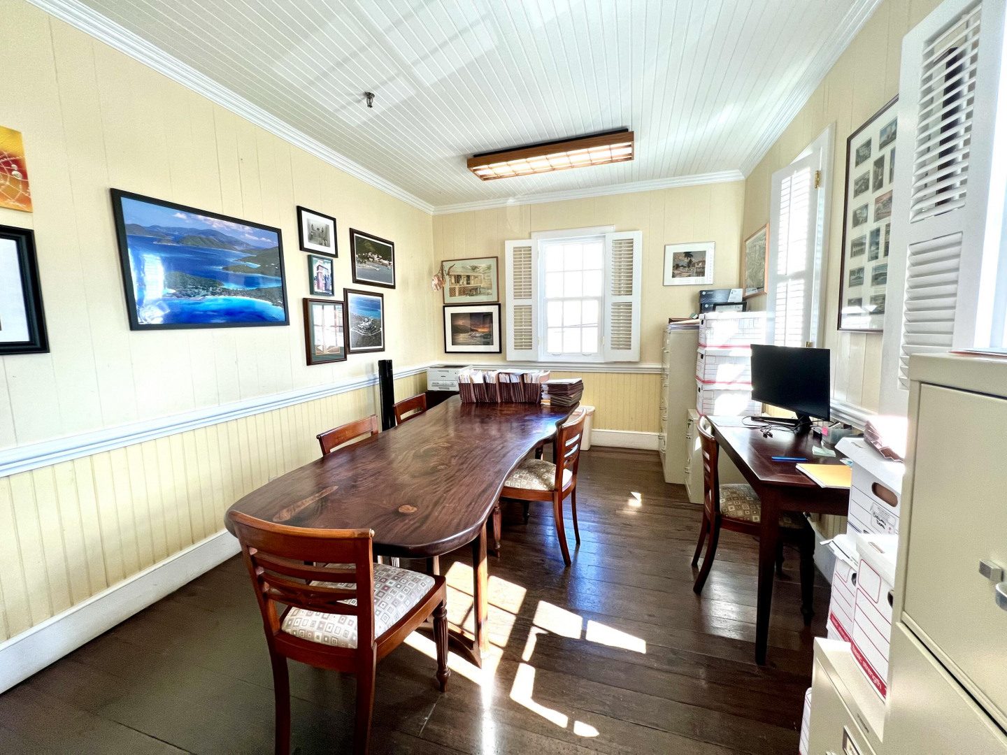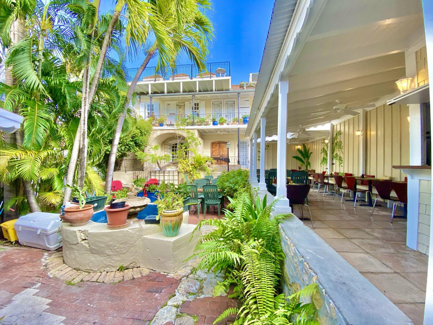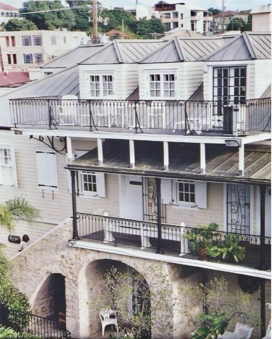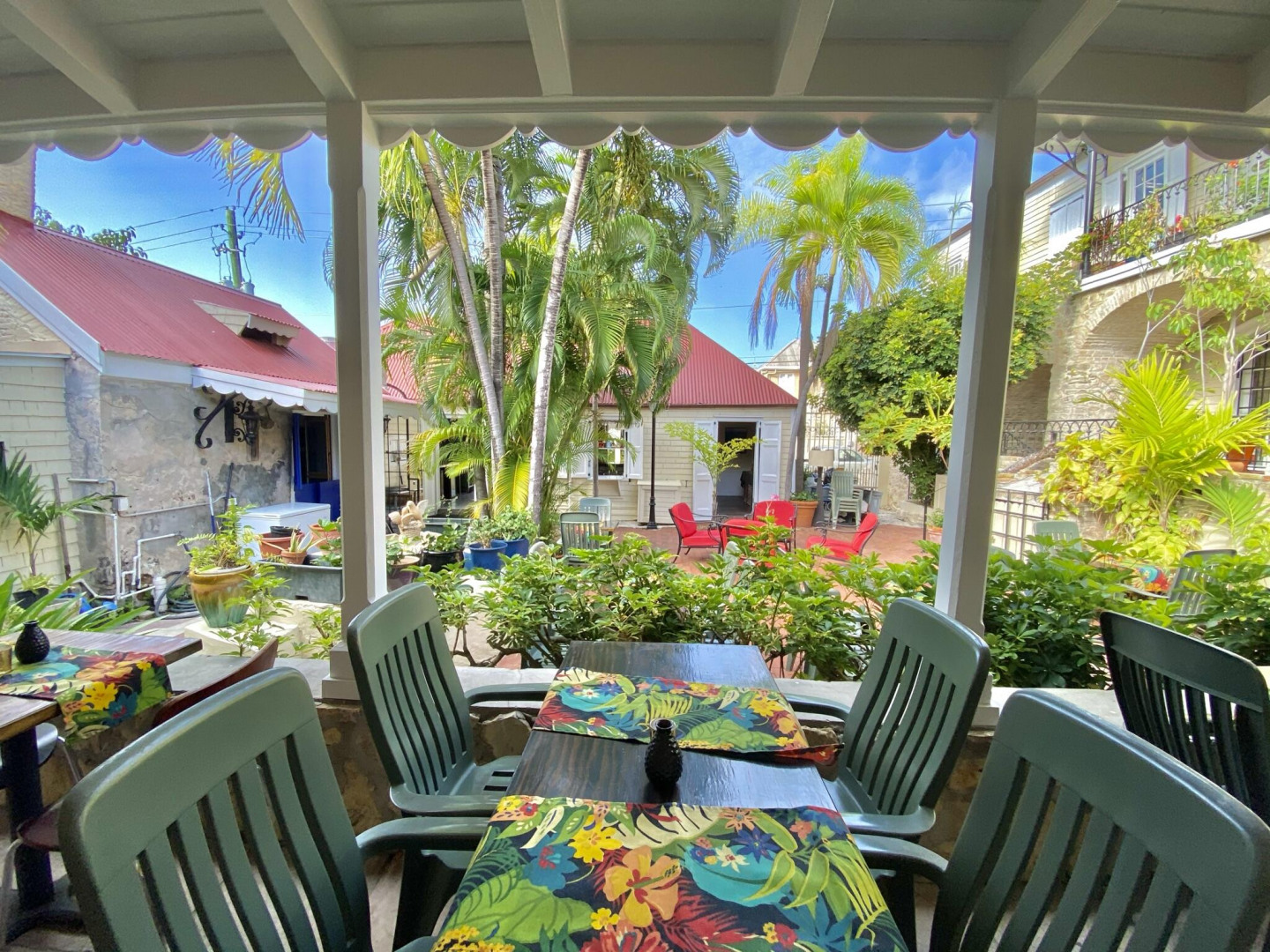 The Quin House located in the heart of Christiansted town is one of the most iconic historic properties in the US Virgin Islands. While it has been restored and meticulously maintained, the property retains its historic architectural features. The property features a romantic courtyard that is enclosed by structures including open air seating and a satellite bar, street level bar with professional kitchen & a three-story building that has commercial/restaurant space with a half bath on the first level, office space on the second floor with five offices and two half baths, and an upper level two-bedroom, two-bathroom condo with a rooftop deck overlooking the historic town and Christiansted harbor. The courtyard & lower level has housed some of the most well-known & successful restaurants- including Kendricks, Zion Modern Kitchen and Too Chez (currently in-house, great tenants!). The lower-level space is not only beautiful, but also flexible to maximize rental returns. One can easily rent out the entire space to one-tenant (as it is now) or to multiple tenants by closing off the rooms (doors already in place to do so). This corner property has multiple access points from the high-traffic arcades along Company Street and King Cross street, making this a highly desirable space for any commercial tenant. The space would be great for a boutique, restaurant (as proven and current), wine bar, coffee shop, boutique hotel/airbnb and/or art gallery - AND SO MUCH MORE!