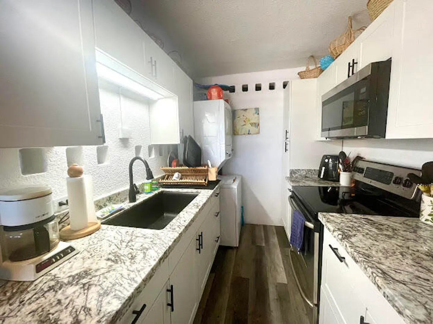This second floor one bedroom unit has been well maintained and features a newly renovated kitchen with granite counters, durable laminate wood plank flooring, and built in washer/dryer. The roomy living area has a beautiful stone accent wall and overlooks the breezy balcony where you can take in amazing views of Buck Island and the surrounding lush landscape. Beaches are nearby, or enjoy a day in the sun at the community pool. Convenient mid island location and low monthly fees make this a great investment property or the perfect place to call home!