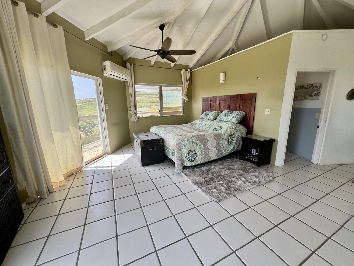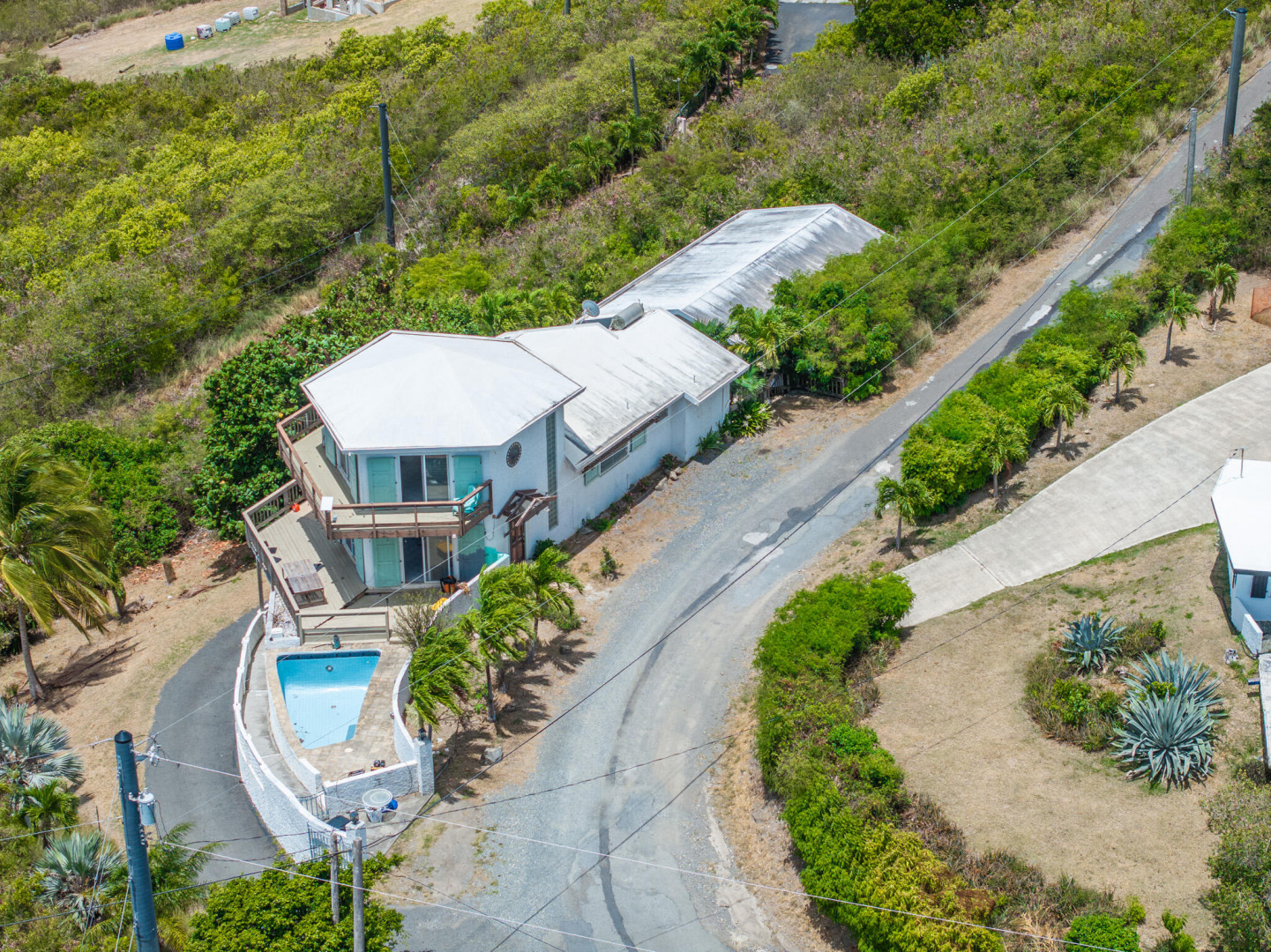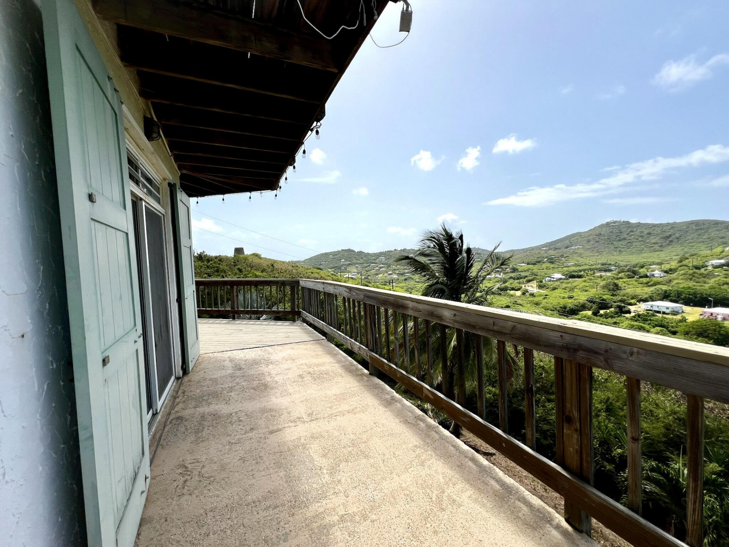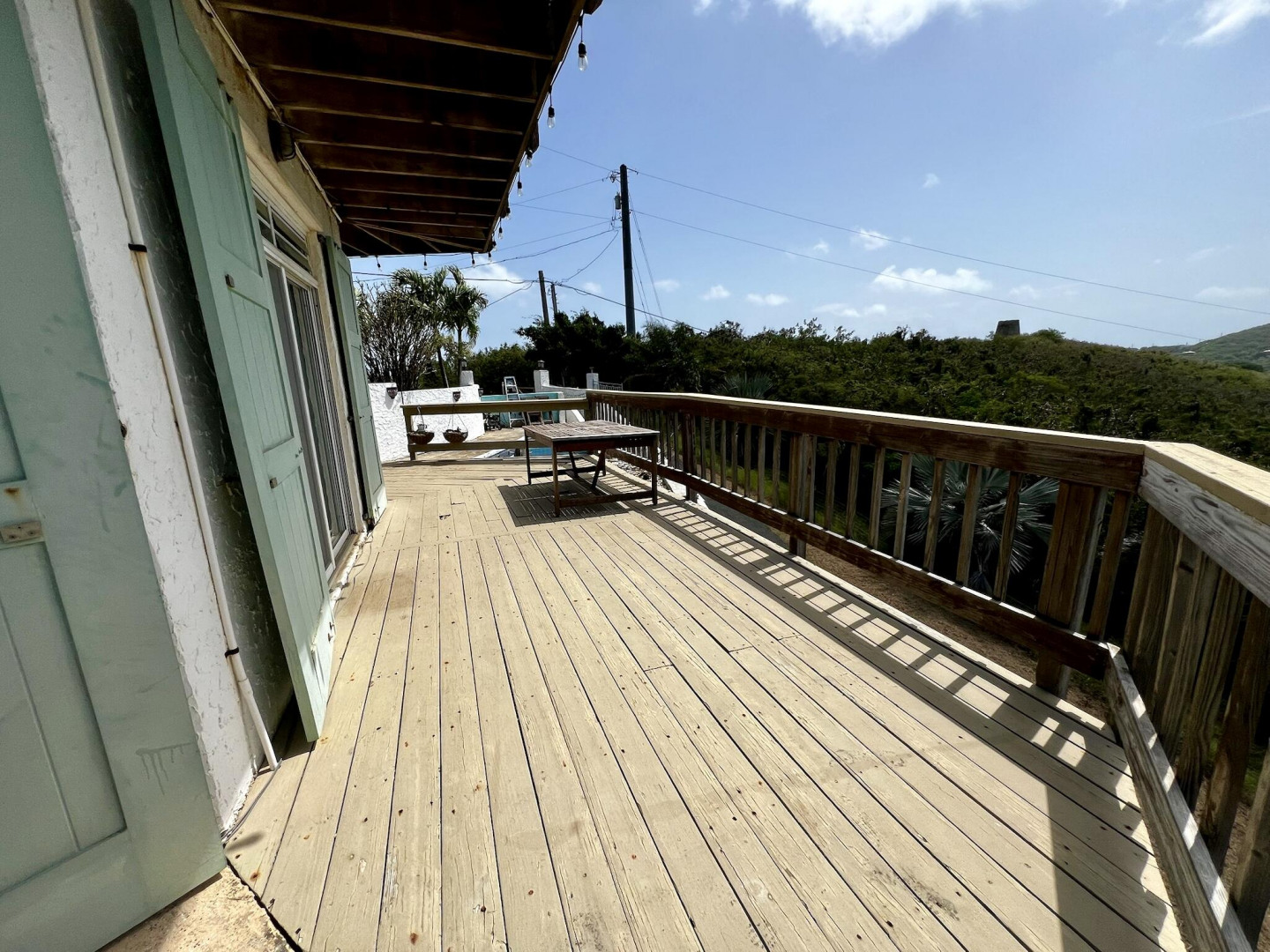 This spacious East End property located on half an acre is uniquely suited for anyone with a large family or seeking a vacation rental, corporate retreat, multi-family dwelling, separate space for rental income or plenty of room to stretch out and relax in paradise. The 2623 sq ft 3BR/3BA main house has views of Buck Island, the iconic Cotton Valley sugar mill and gorgeous green valley views. The main house with soaring cypress ceilings has a large living/dining/kitchen area that opens to the fun pool deck offering panoramic views including Buck Island. On this same level there are two bedrooms and two baths (one en suite with granite countertop and mahogany and the other has a unique open atrium) and each bedroom opens to the deck and views. The primary suite, on the upper level,complete with a full bath and walk-in closet, is accessed via spiral staircase and spans the top level of the main house. You'll feel like royalty taking in the sweeping sea and pastoral views from the private bedroom's wrap-around deck.