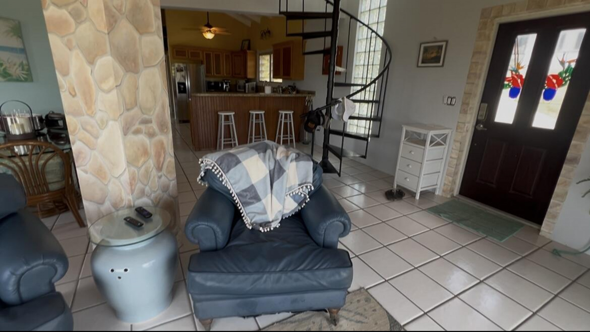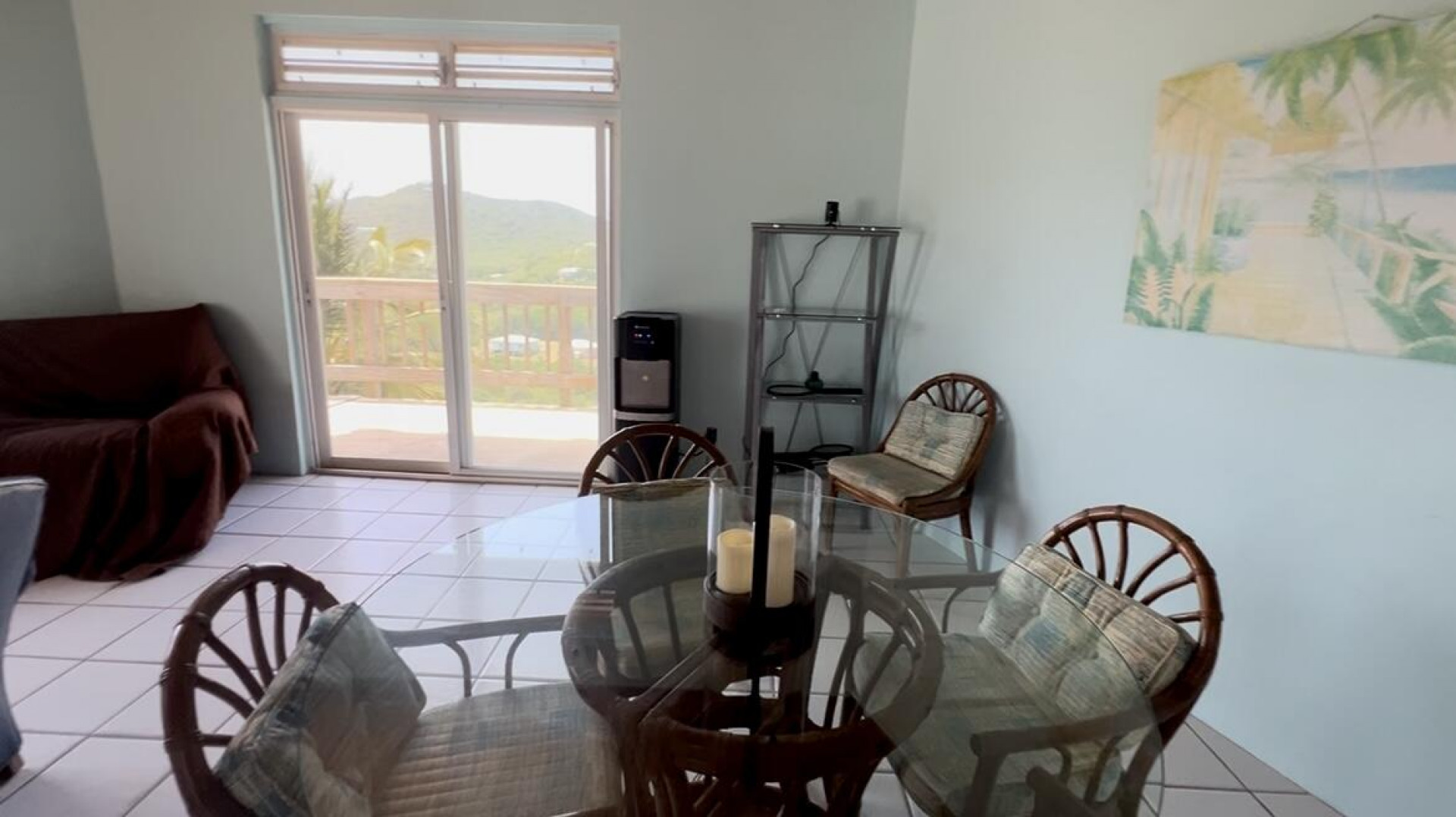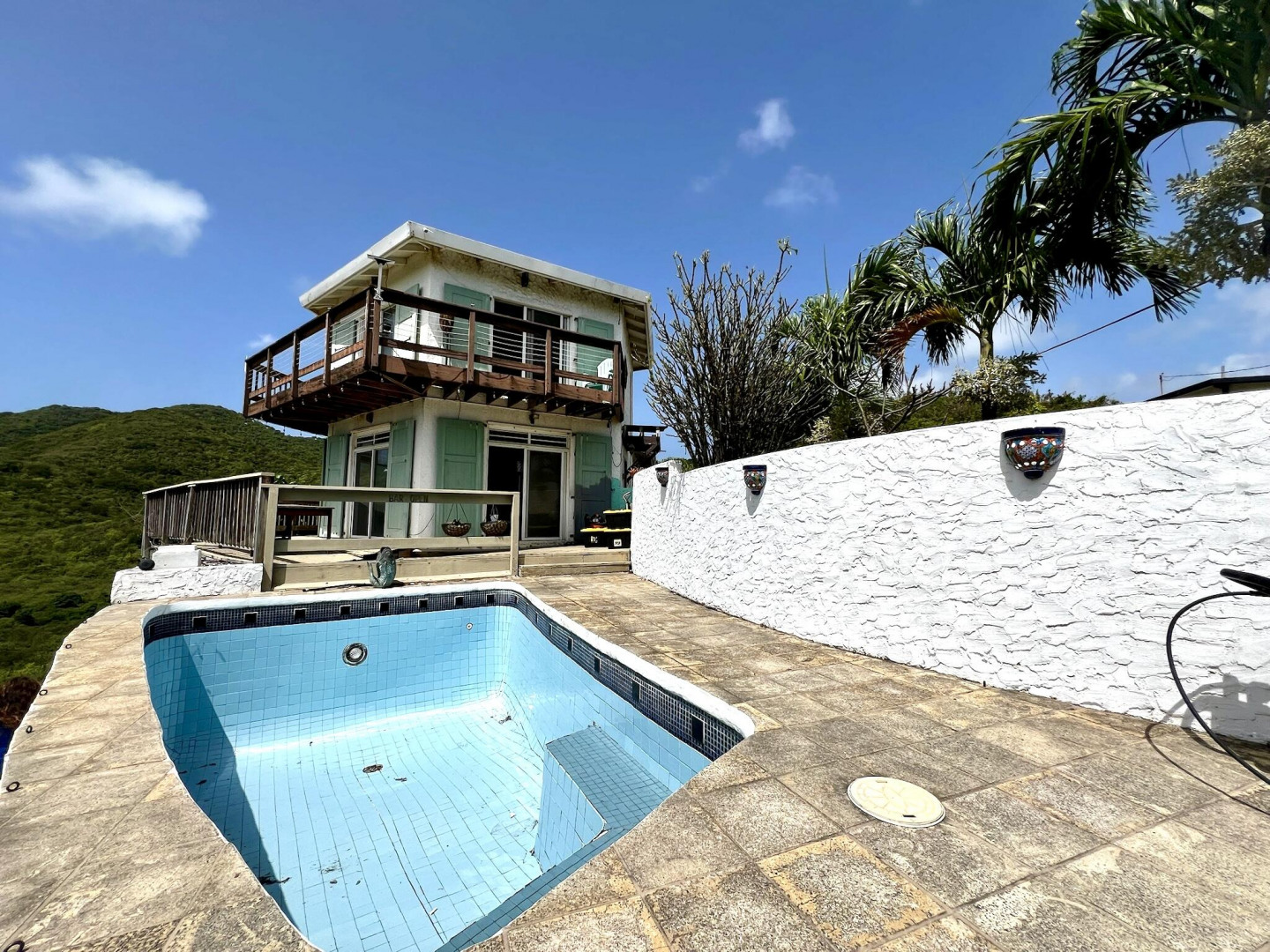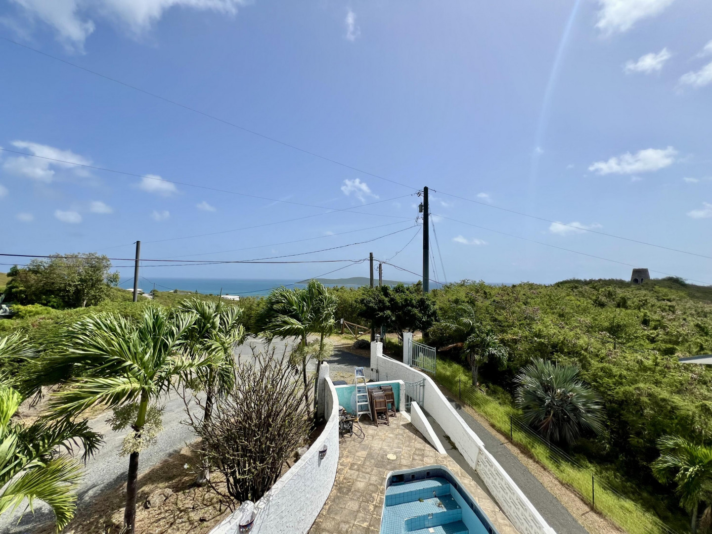 This spacious East End property located on half an acre is uniquely suited for anyone with a large family or seeking a vacation rental, corporate retreat, multi-family dwelling, separate space for rental income or plenty of room to stretch out and relax in paradise. The 2623 sq ft 3BR/3BA main house has views of Buck Island, the iconic Cotton Valley sugar mill and gorgeous green valley views. The main house with soaring cypress ceilings has a large living/dining/kitchen area that opens to the fun pool deck offering panoramic views including Buck Island. On this same level there are two bedrooms and two baths (one en suite with granite countertop and mahogany and the other has a unique open atrium) and each bedroom opens to the deck and views. The primary suite, on the upper level,complete with a full bath and walk-in closet, is accessed via spiral staircase and spans the top level of the main house. You'll feel like royalty taking in the sweeping sea and pastoral views from the private bedroom's wrap-around deck.