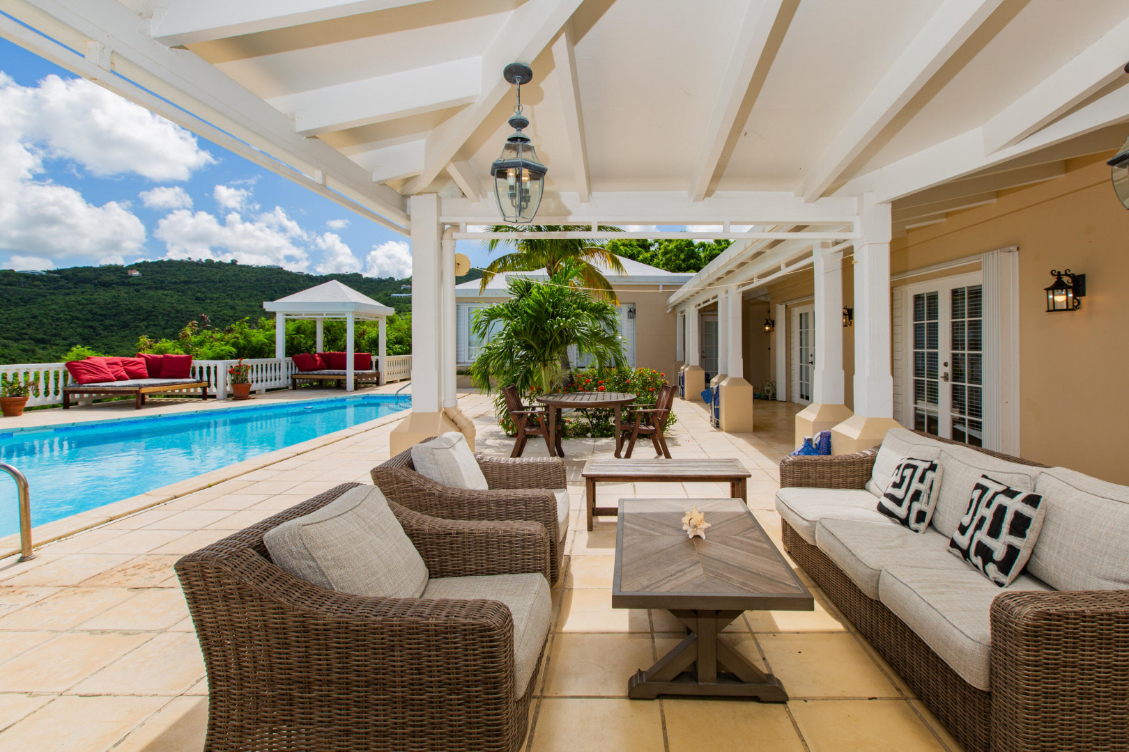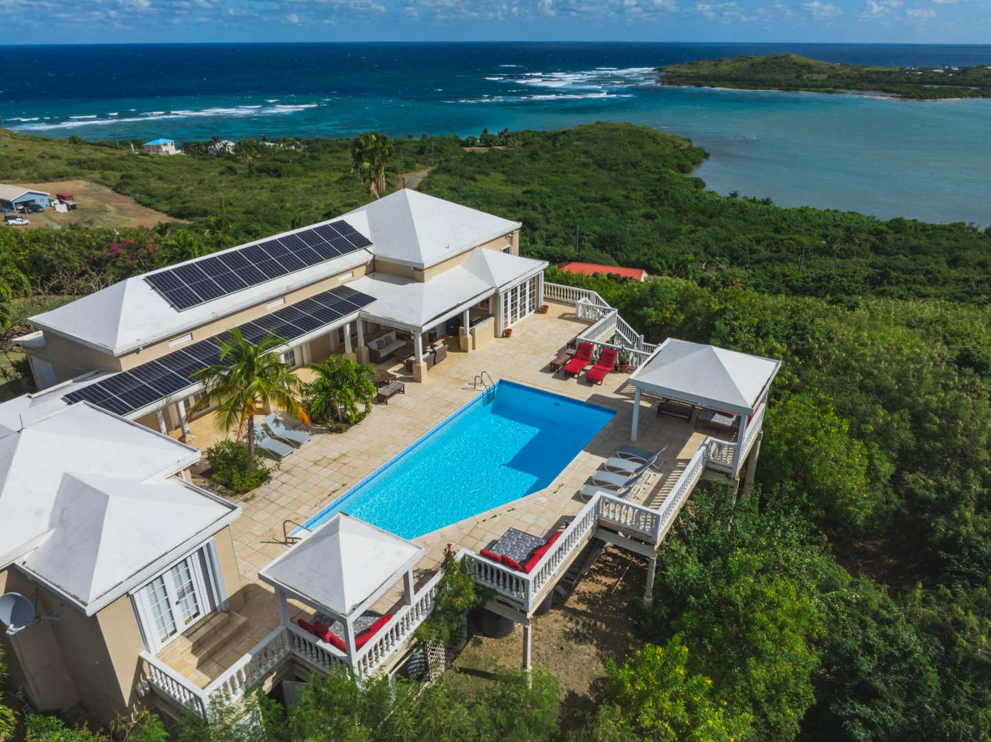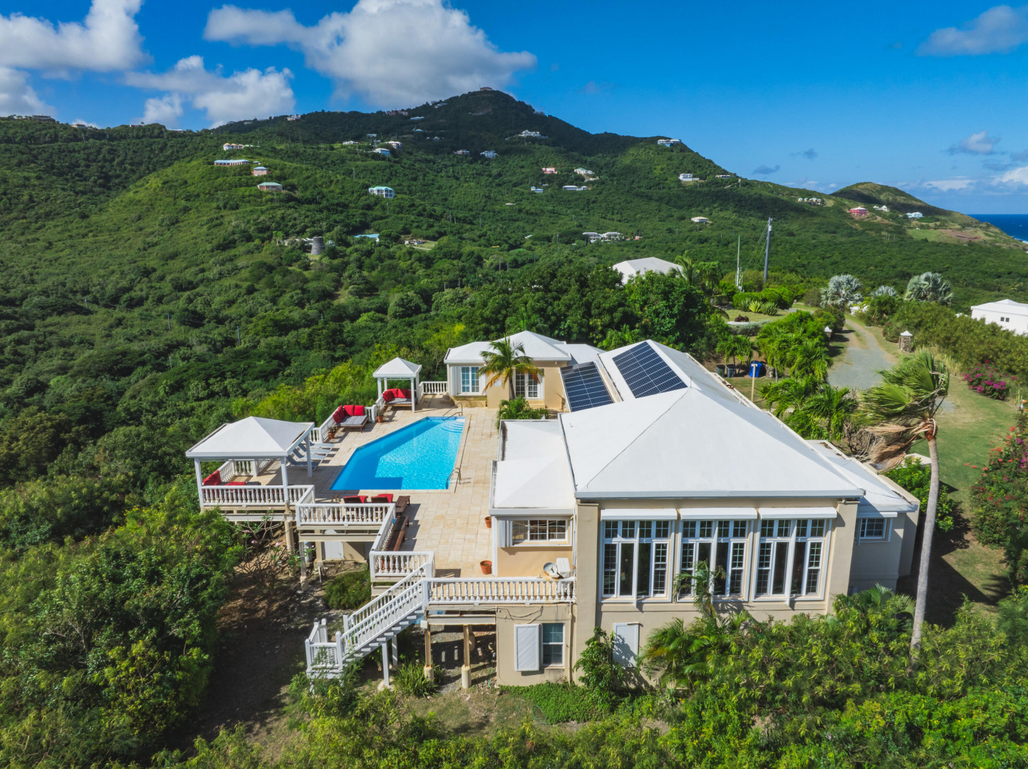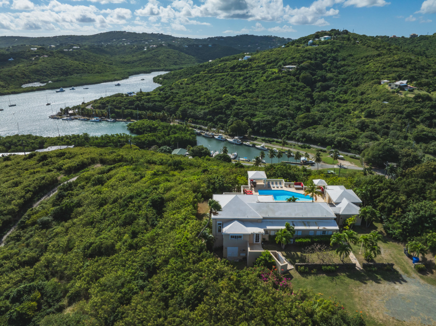 NEW 10KW SOLAR NET METERING SYSTEM INSTALLED! Details under Documents Tab! Caribbean Dream home! The ''Sugar Bay'' home sits on top of Salt River overlooking Columbus Cove Marina and the beautiful Salt River. Large outdoor living space which includes a pool, built-in BBQ, wet bar & covered dining, perfect for entertaining with amazing 280 degree views & breezes. The West Indian style home includes 4 bedrooms with 4.5 bathrooms, great room & 2 BR/1 BA apartment below.