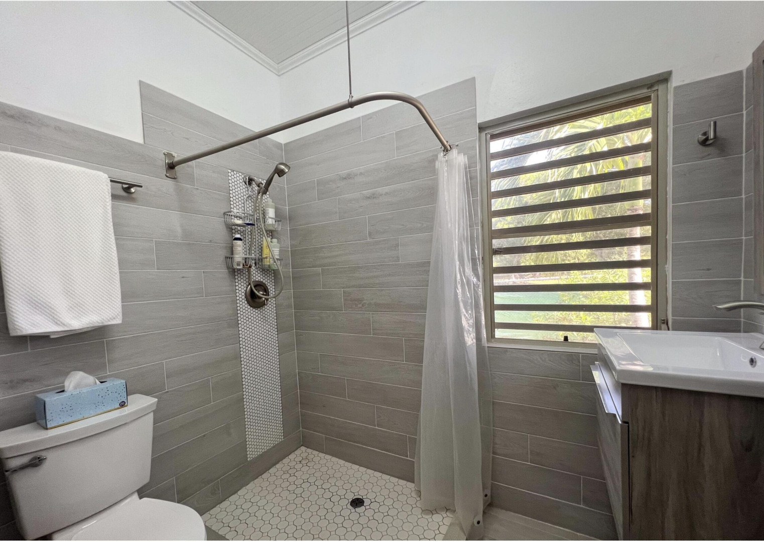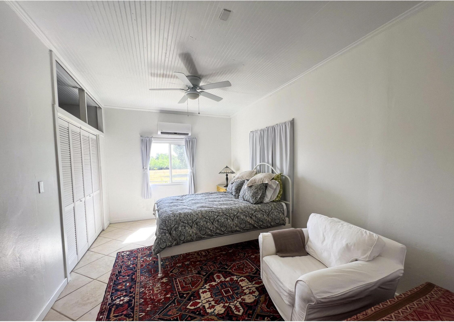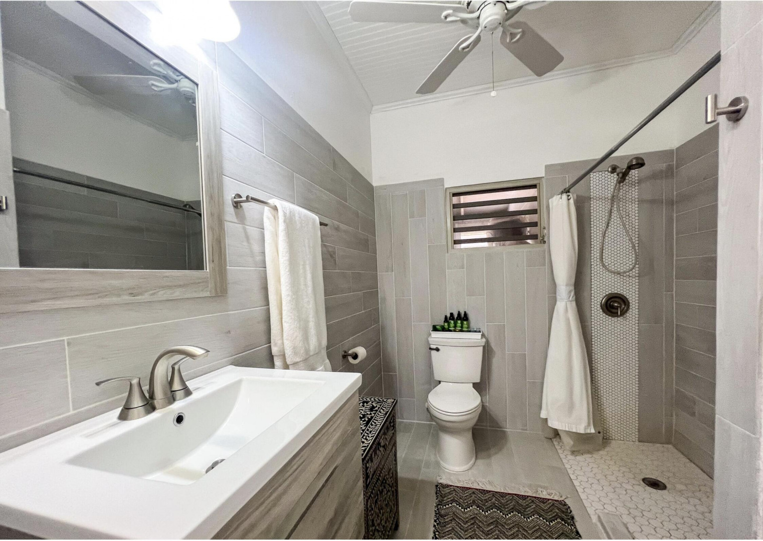Nestled just outside Frederiksted town, this stunning 3-bedroom, 2-bathroom home offers a serene lifestyle on a private, fully fenced acre. It features extensive updates, including brand-new electrical wiring, a cutting-edge Enphase solar system with battery backup for off grid sustainable living, and modern appliances. The fully air-conditioned interior is complemented by new fans, light fixtures, and many windows that bring natural light into the home.Ideal for those with a green thumb, the property is outfitted with two compost beds, three raised garden beds, and two 600-gallon water buffalos. The 20x9 two-chambered cistern provides ample water storage, supplemented by an old cistern reserved for gardening. Flowering and fruiting plants add to the lush, tropical setting.Pet lovers will appreciate the double fencing that ensures a safe space for furry friends.