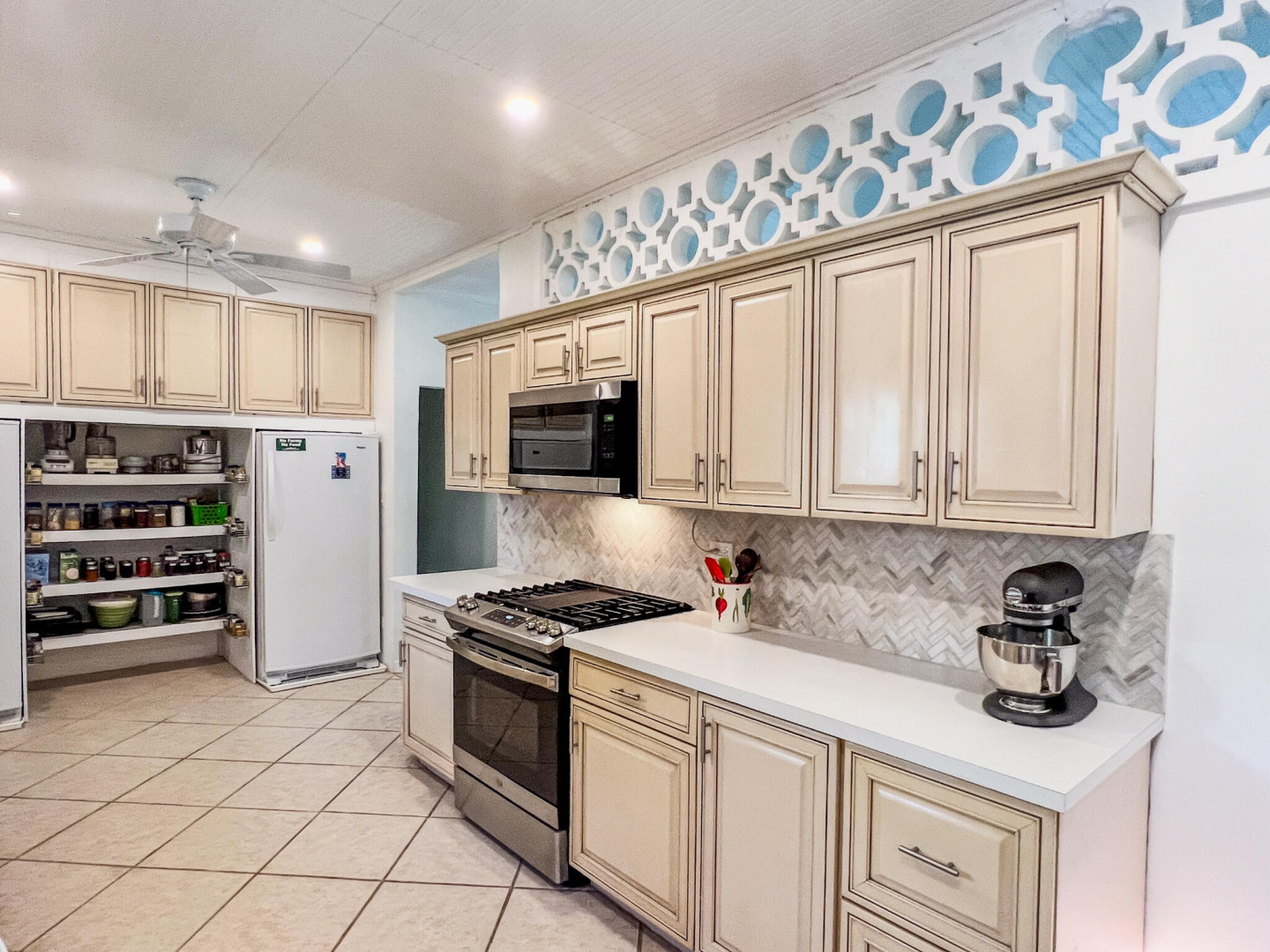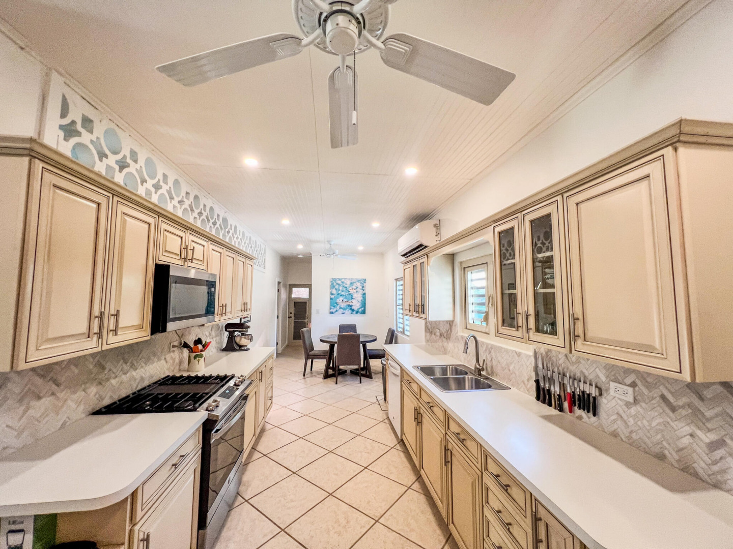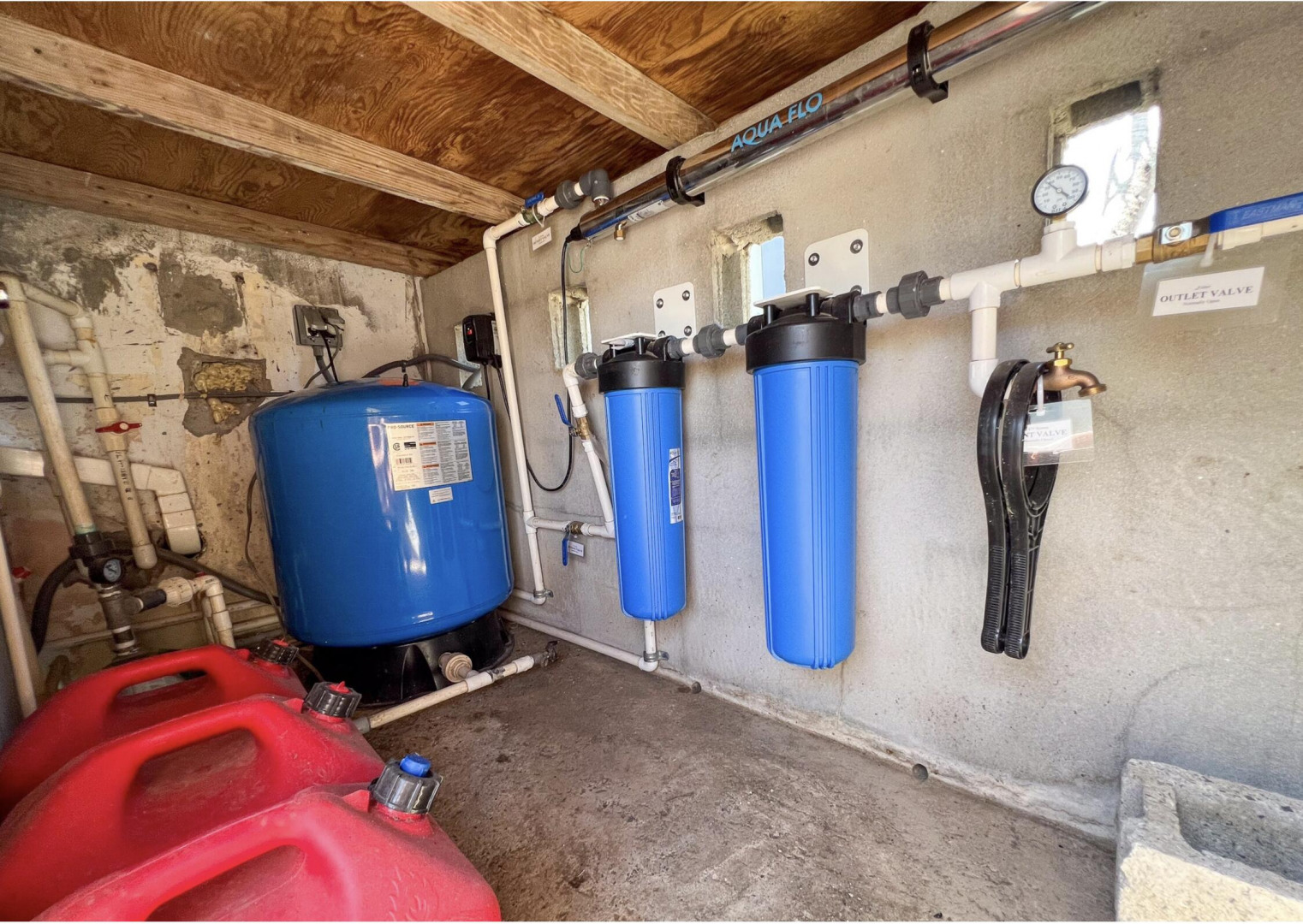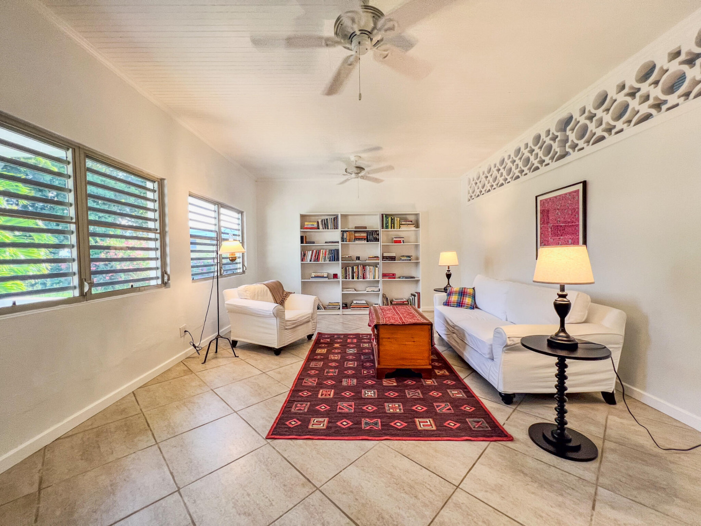 Nestled just outside Frederiksted town, this stunning 3-bedroom, 2-bathroom home offers a serene lifestyle on a private, fully fenced acre. It features extensive updates, including brand-new electrical wiring, a cutting-edge Enphase solar system with battery backup for off grid sustainable living, and modern appliances. The fully air-conditioned interior is complemented by new fans, light fixtures, and many windows that bring natural light into the home.Ideal for those with a green thumb, the property is outfitted with two compost beds, three raised garden beds, and two 600-gallon water buffalos. The 20x9 two-chambered cistern provides ample water storage, supplemented by an old cistern reserved for gardening. Flowering and fruiting plants add to the lush, tropical setting.Pet lovers will appreciate the double fencing that ensures a safe space for furry friends.