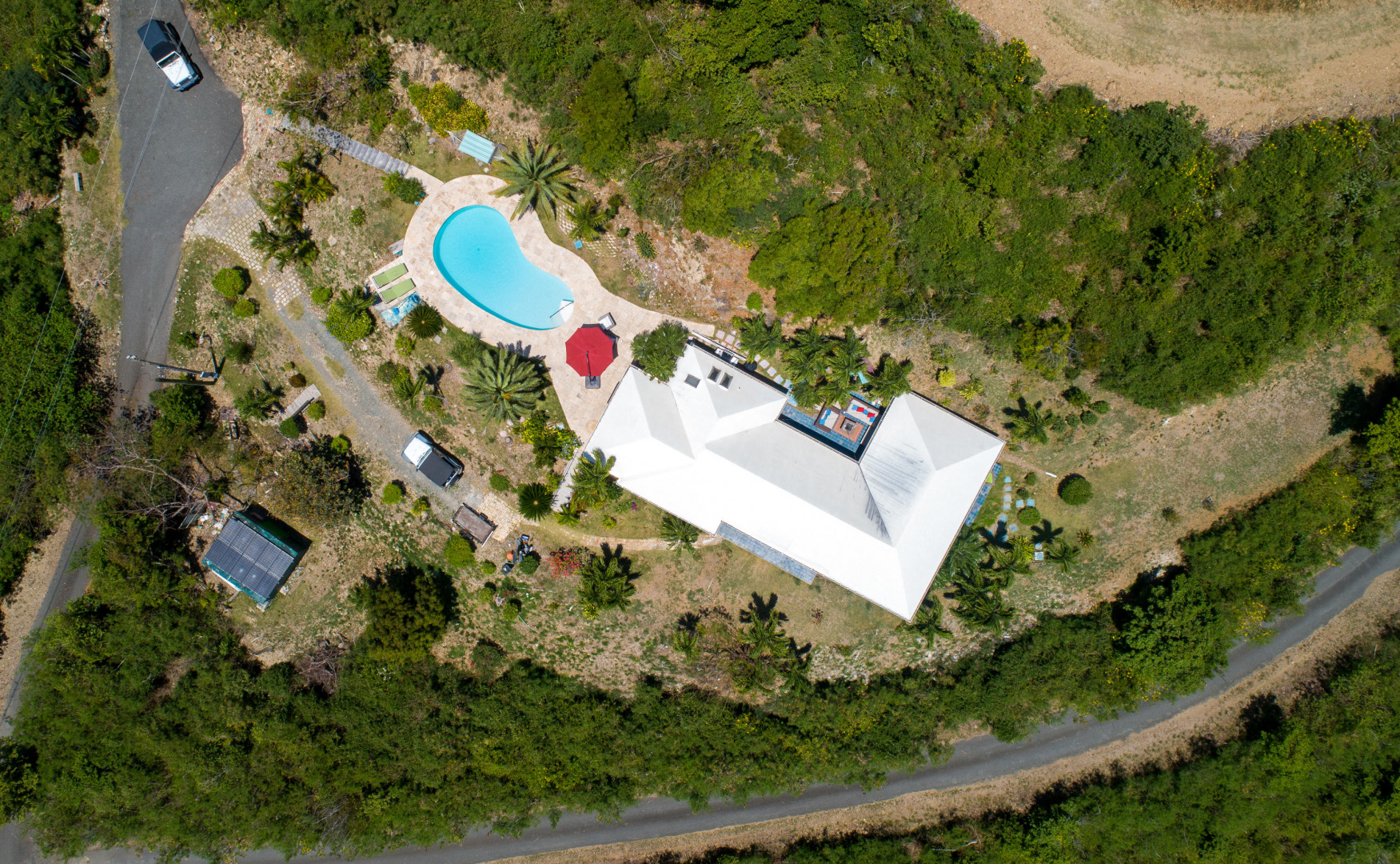 Stunning views from this house high upon the hill. The views are from Christiansted to Buck Island to South Shore. By day you will enjoy a different view of the Caribbean iSea from every room and by night you will think you can touch the stars. 2 bedroom and 2.5 bath home with custom kitchen and bonus media room. Also has a screened in porch over looking the pool with a swinging bed for naps.Newly installed SOLAR with 2 TESLA back up batteries. Installed 2019 by ProSolar.The location of this sweet house is ideal being right outside of Christiansted, but on the hill provides lots of privacy. Easy drive to Christiansted for dining, shopping and nightlife! Everything is within reach.