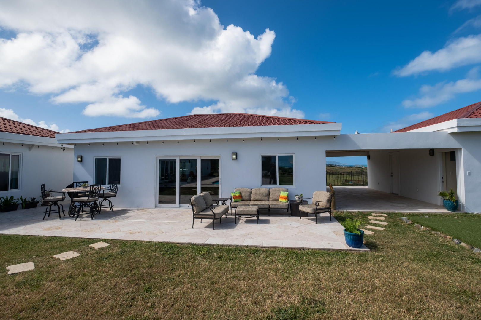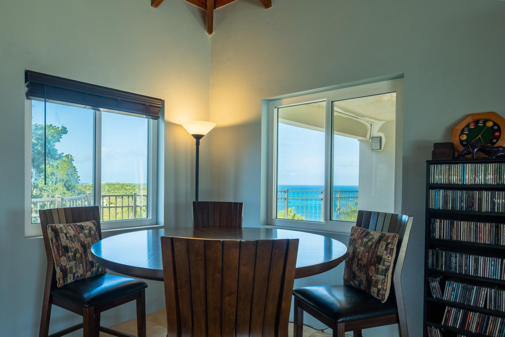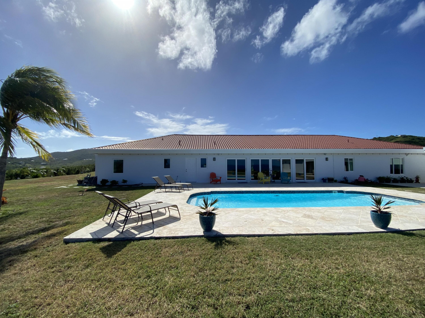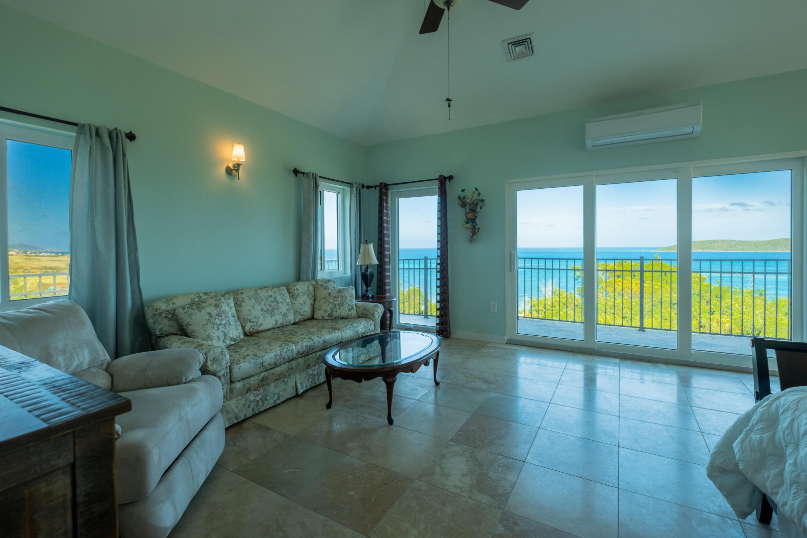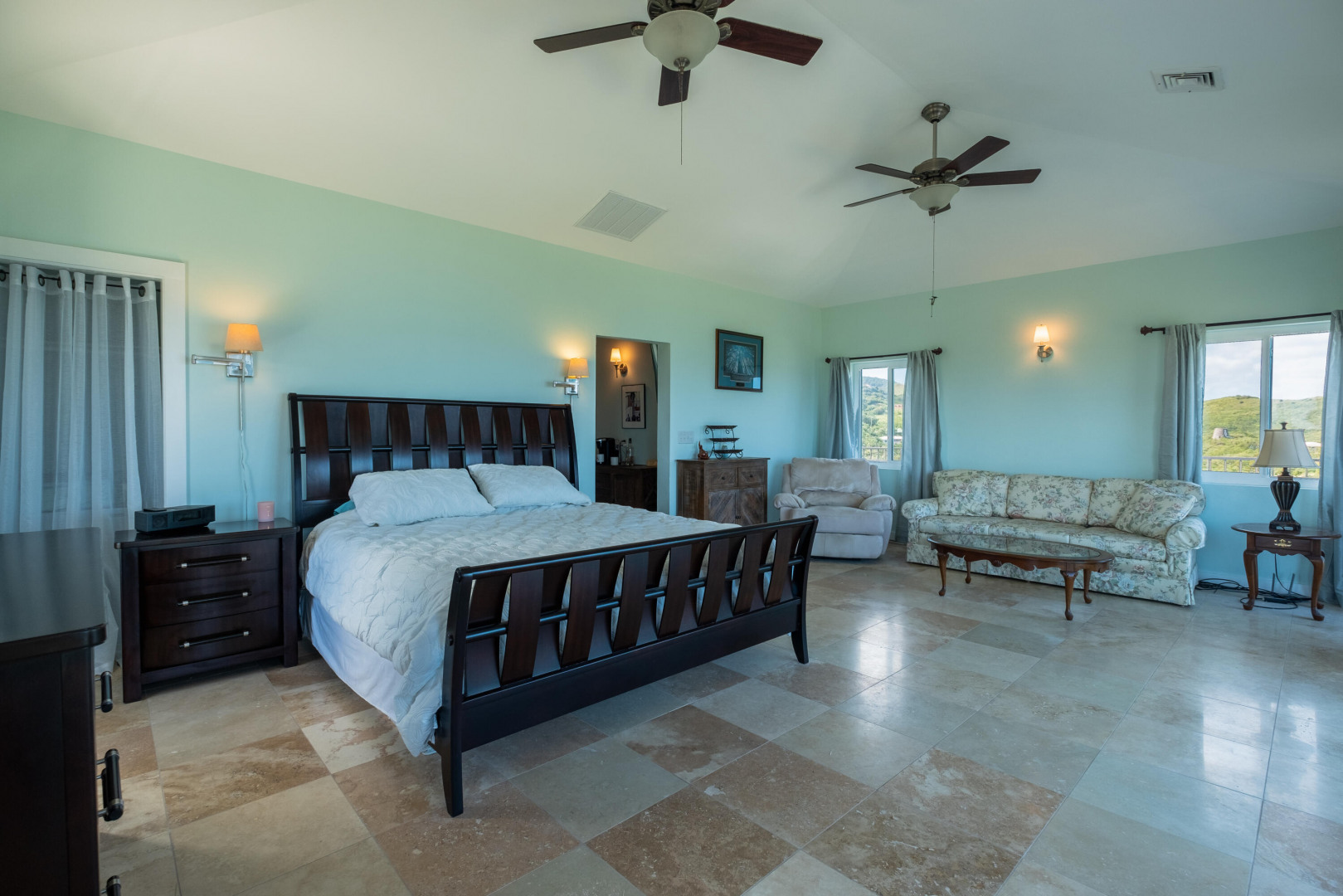 Spectacular East End home on a coveted 1.45 ac. flat knoll top with 180-degree views of the blue Caribbean Sea and splendid Buck Island. This 4 oversized bedroom villa embraces the relaxed, island lifestyle with beautiful views, a spacious high ceiling great room, open granite kitchen & separate wet bar. Step outside to the outdoor open & covered sitting areas surrounding the 32ft pool. Wow! Perfect for entertaining is the big game room with pool, ping pong, TV, and game table. This well-maintained home's fourth bedroom is a separate guest suite with additional sleeping. Another bonus is the private 800 sq. ft efficiency apartment. Some of the notable features of this upgraded, well maintained home: 10KW Solar system, all new high impact doors & windows, 45KW diesel generator, 45K cistern.
