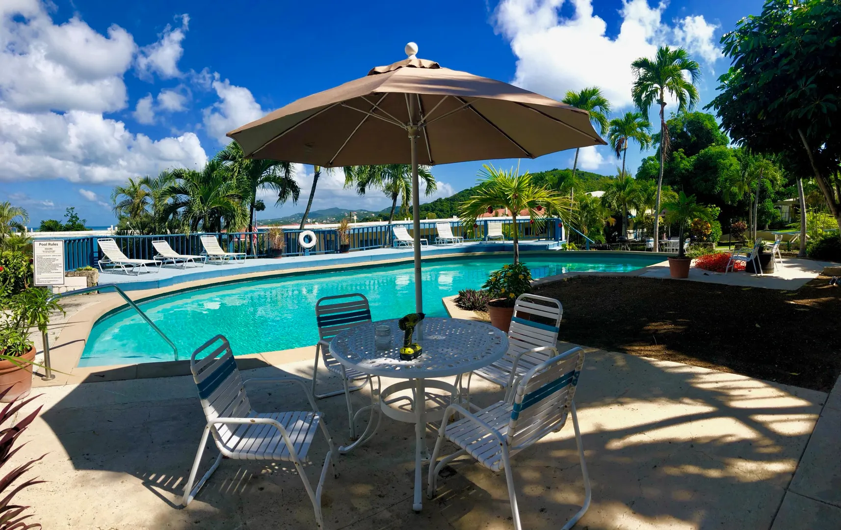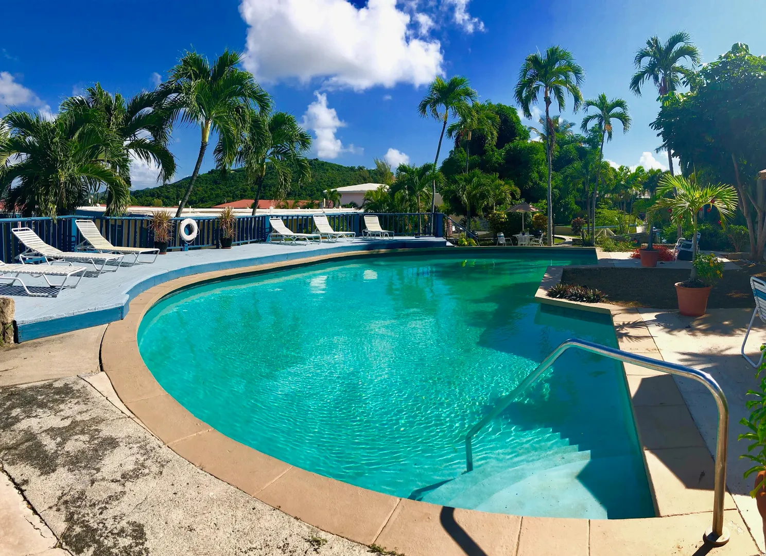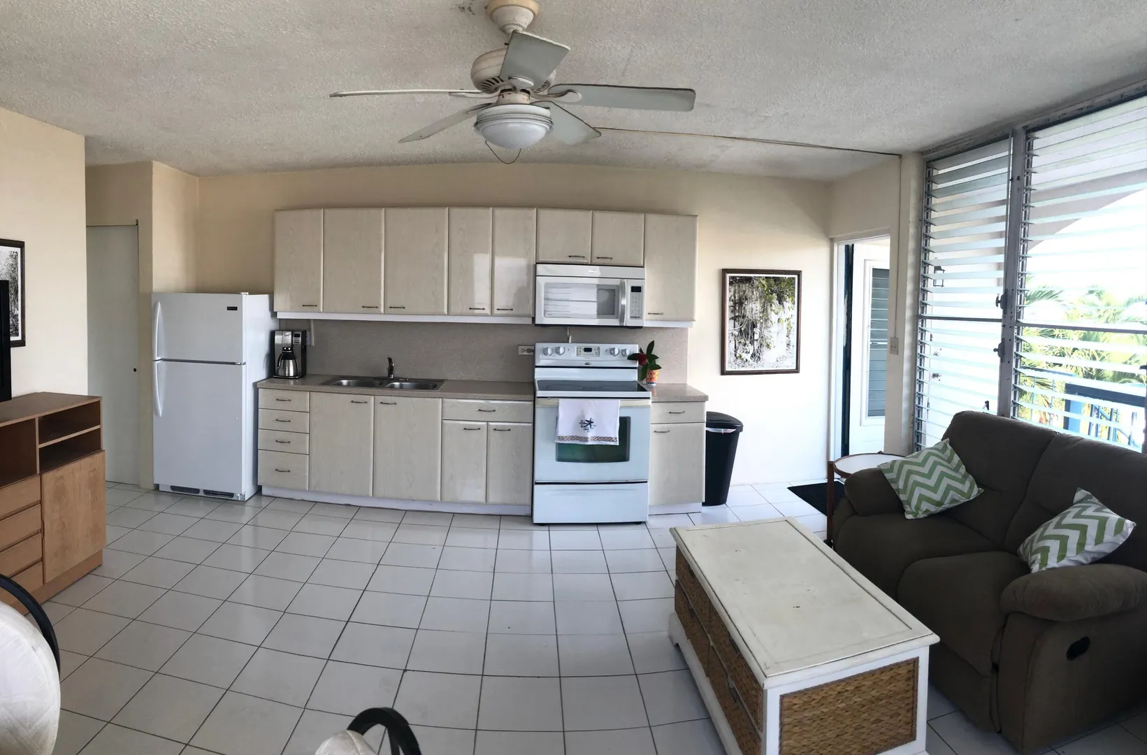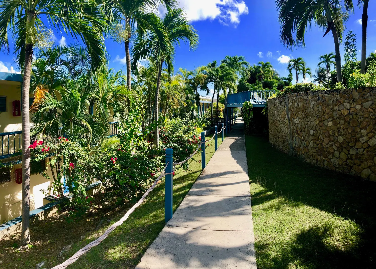One bedroom condo with beautiful views of Christiansted and the blue Caribbean Sea.3rd floor end unit with great breezes. The common areas are in good shape, nicely landscaped and low fees!Walk to shopping, beaches, restaurants and transportation. Parking lot is fenced.Some tile in the bedroom needs to be replaced. Wasn't put in right and some have come off.