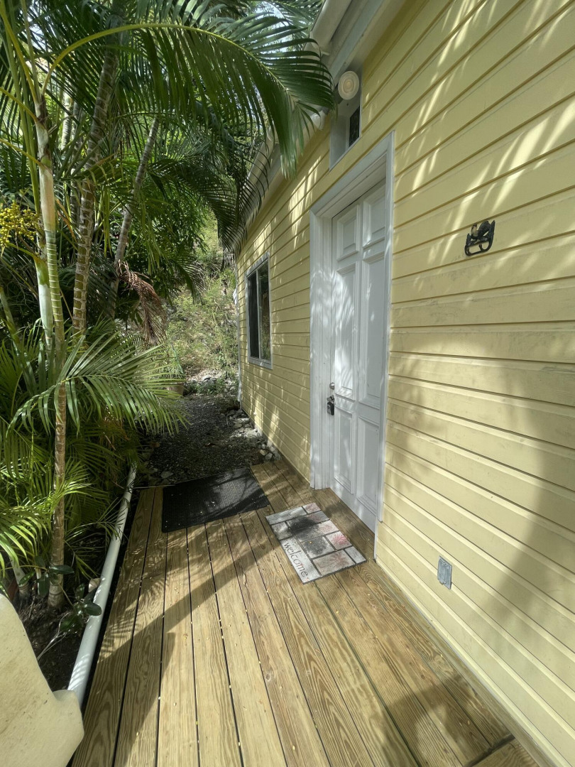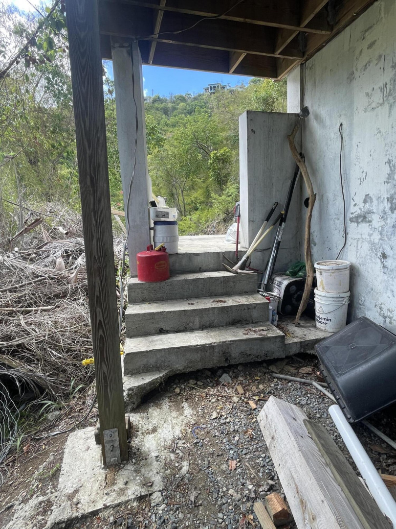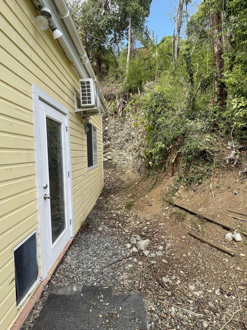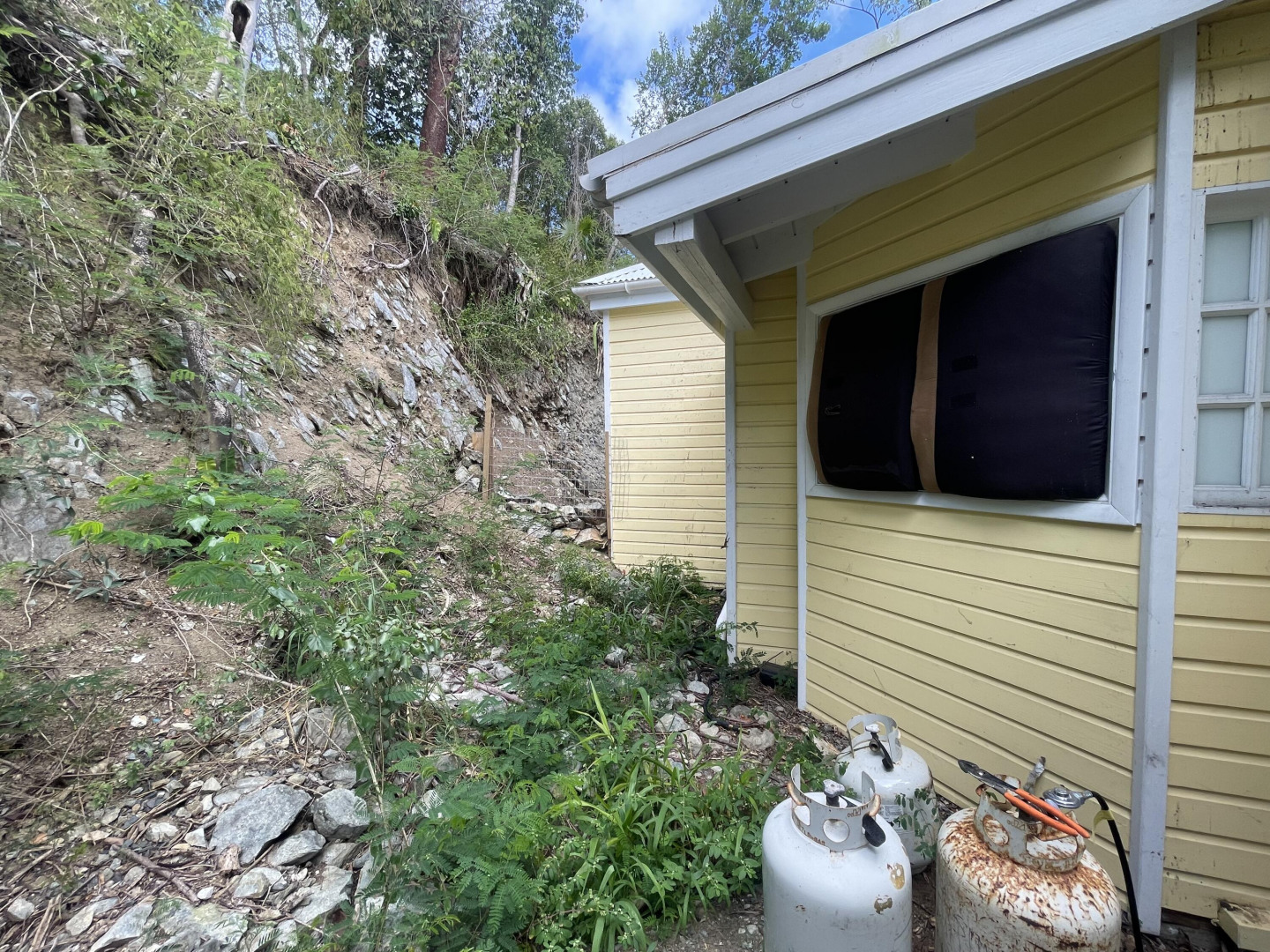 Back on the market with some updates. Landscaping, pressure washing, interior painting, plumbing, and electrical is just some of the work that has been started. Handyman needed to bring this home to its full potential. Creatively built with 14-foot ceilings, 8-foot entry, and french doors make this cozy home feel grand. Beautiful mountain views of Bordeaux Mountain offers a unique perspective of St John's lush hillsides. Rich in wildlife, sounds of birds, and goats as they pass by, local iguanas live in the mature tree off the deck. This is pure island living. Located on the bus route and walking distance to Coral Bay allows for easy access to local amenities and public transportation. Owner is motivated; all reasonable offers will be considered.