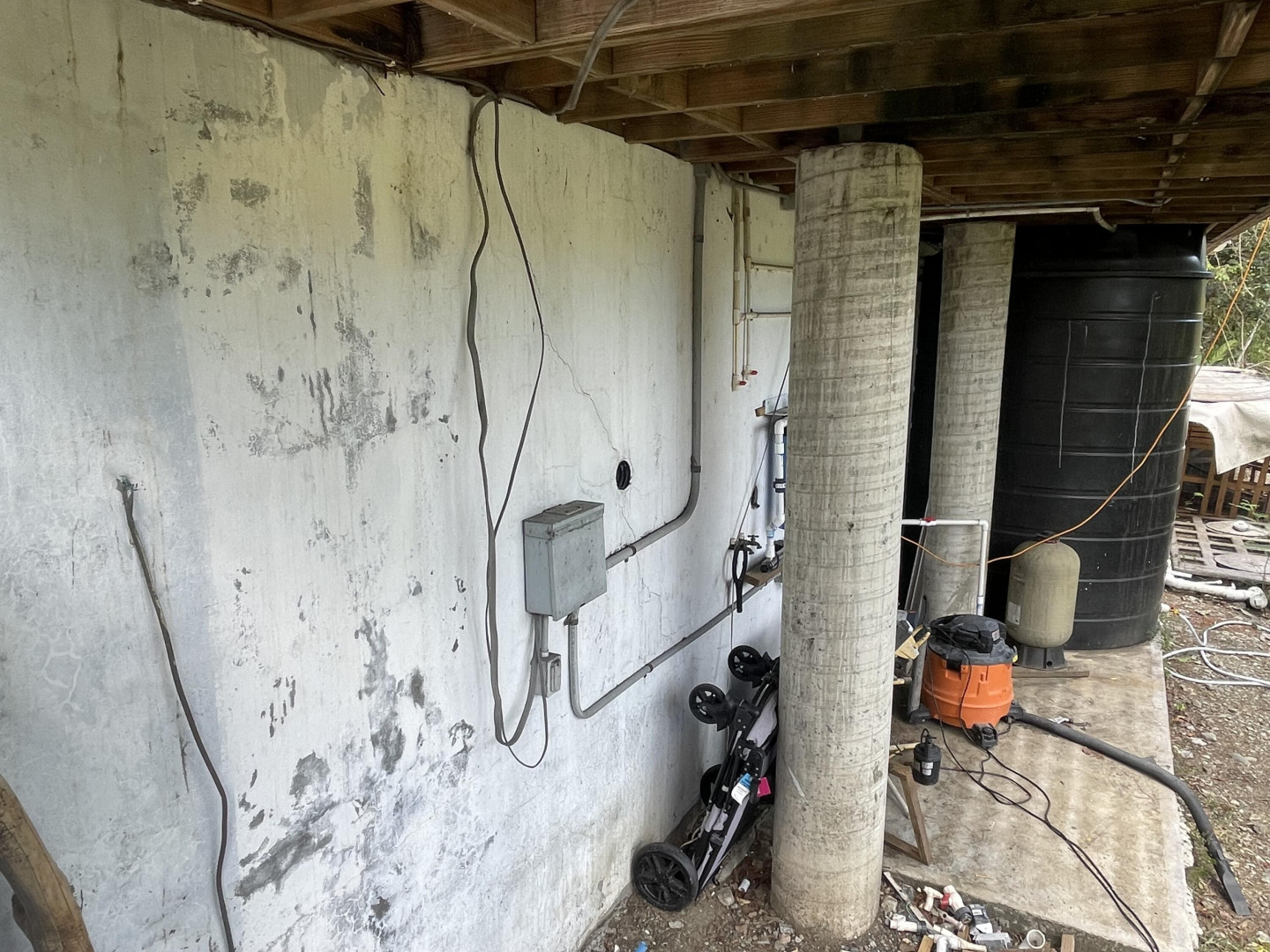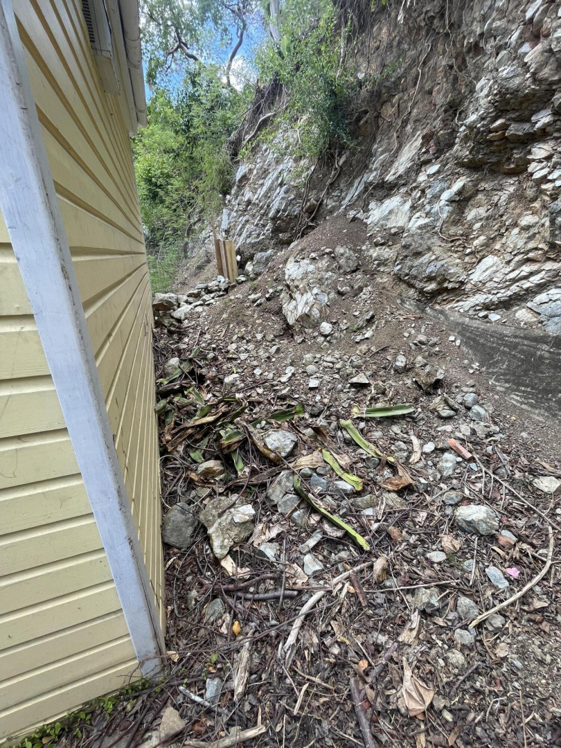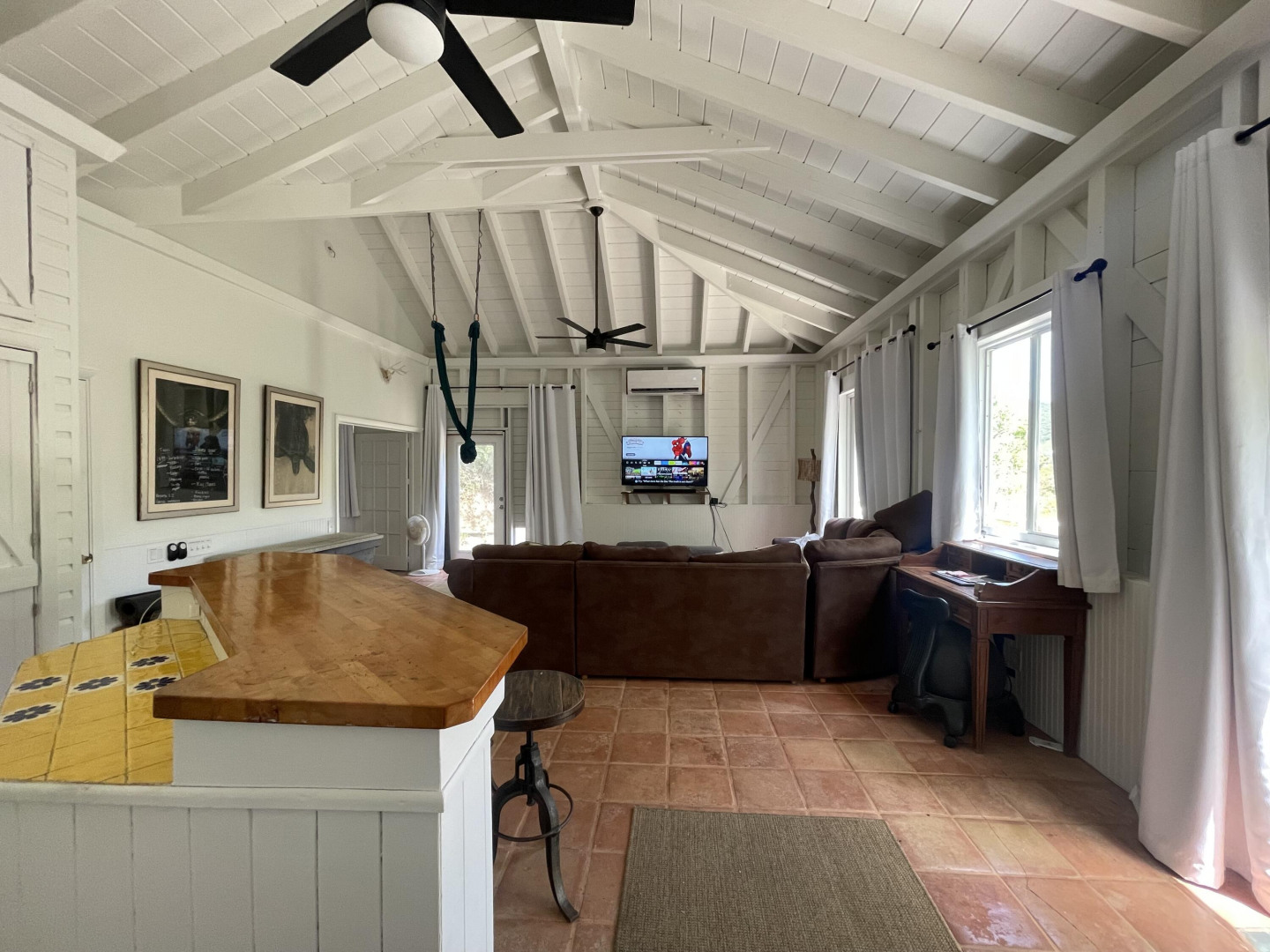 Back on the market with some updates. Landscaping, pressure washing, interior painting, plumbing, and electrical is just some of the work that has been started. Handyman needed to bring this home to its full potential. Creatively built with 14-foot ceilings, 8-foot entry, and french doors make this cozy home feel grand. Beautiful mountain views of Bordeaux Mountain offers a unique perspective of St John's lush hillsides. Rich in wildlife, sounds of birds, and goats as they pass by, local iguanas live in the mature tree off the deck. This is pure island living. Located on the bus route and walking distance to Coral Bay allows for easy access to local amenities and public transportation. Owner is motivated; all reasonable offers will be considered.