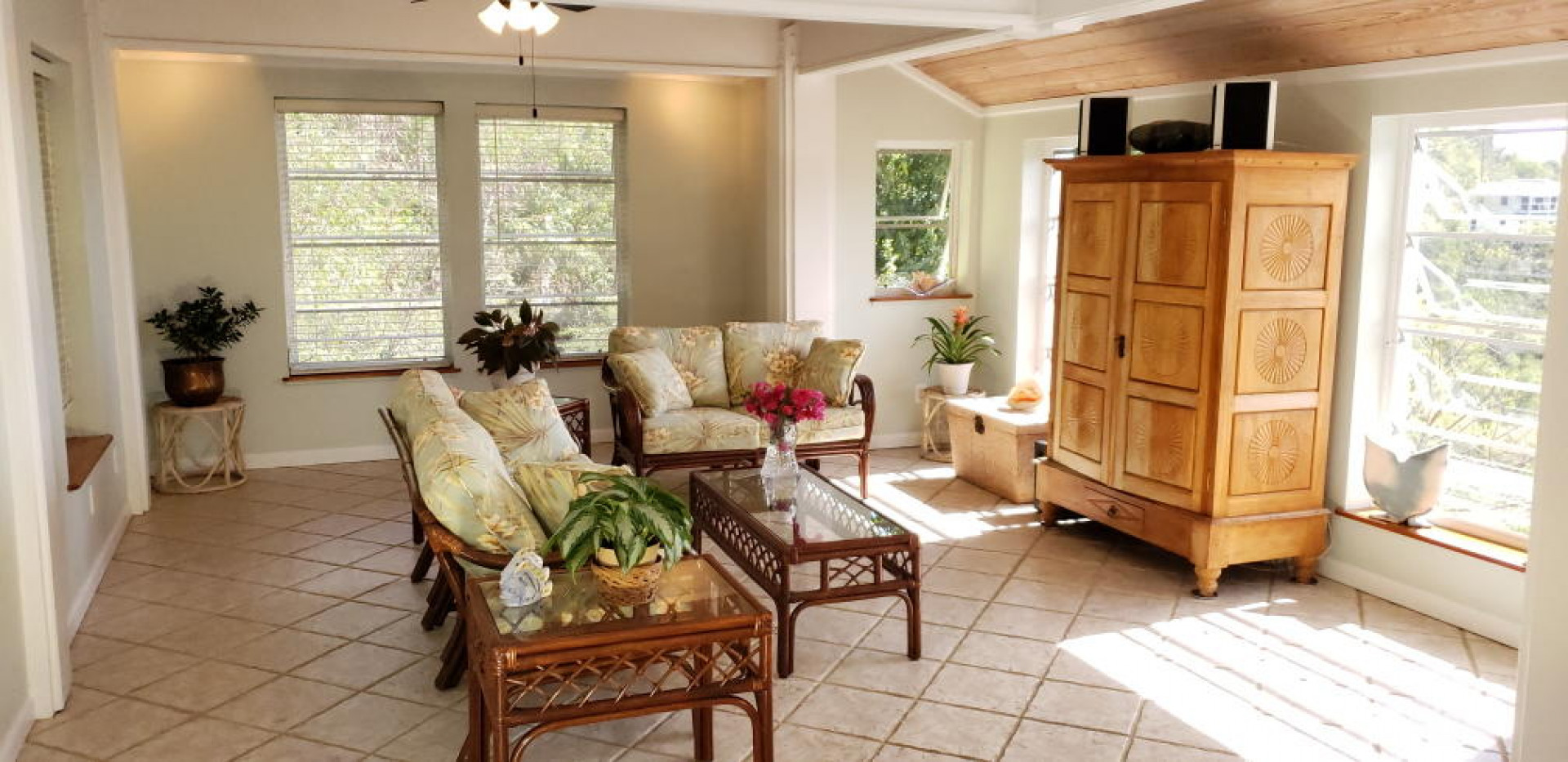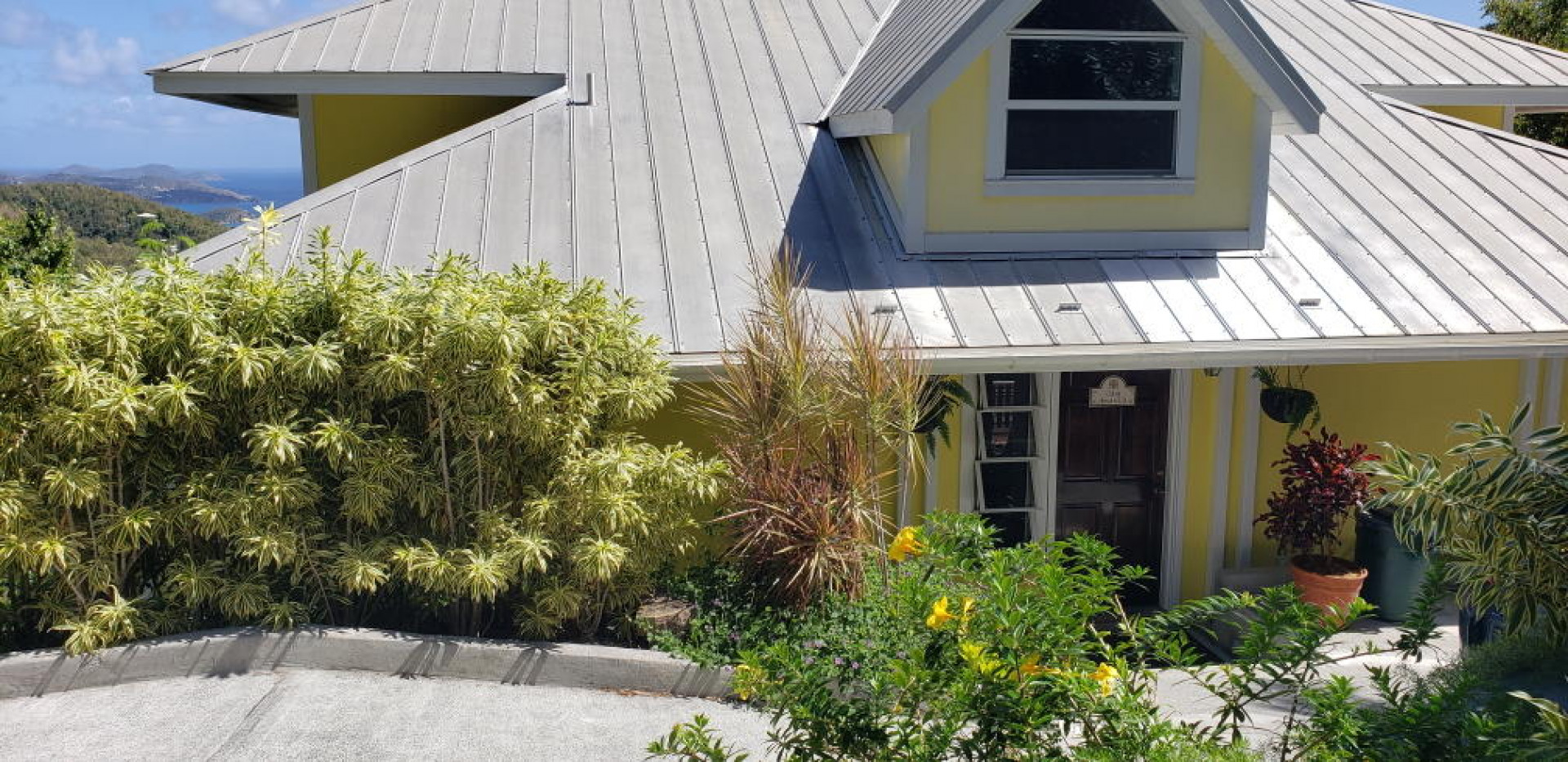 Casa Amarilla (Yellow House) is a 3-bedroom/3-bath split level home in Upper Carolina with water views of Coral Bay to Norman Island. The original owners are ready to downsize. The home features an air conditioned master suite which occupies the entire upper floor, with full bath, large closets, private deck and adjoining den/office. Mid-level bedrooms are air-conditioned and have their own full bath. In the great room on the main level you'll find spacious living and dining areas and a bright airy kitchen with an island and a water view. The home is well maintained, freshly painted inside and out. Plenty of deck on three levels. The side deck was designed to support a large spa. Or it would be a perfect place to add a pool. Seller is a licensed Realtor in the USVI.