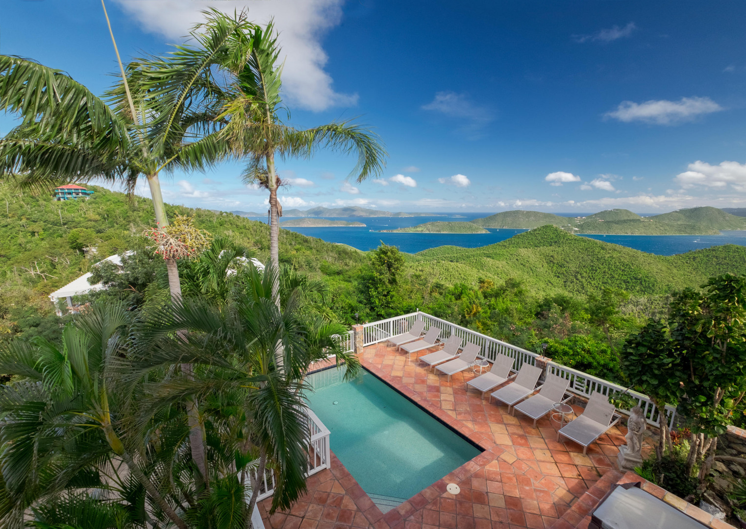 Casa Luna is perched on a spectacular ridgetop lot providing 360 degree views of the BVI, Coral Harbor and the mountains of Bordeaux, Mamey and Ajax Peak. Recently refurbished and furnished, this property is perfect as a spacious private residence or vacation rental villa. Gated entry with pool, hot tub, carport and 30KW backup generator and fully shuttered. Some artwork and potted plants are property of caretaker and do not convey; inventory to be provided.