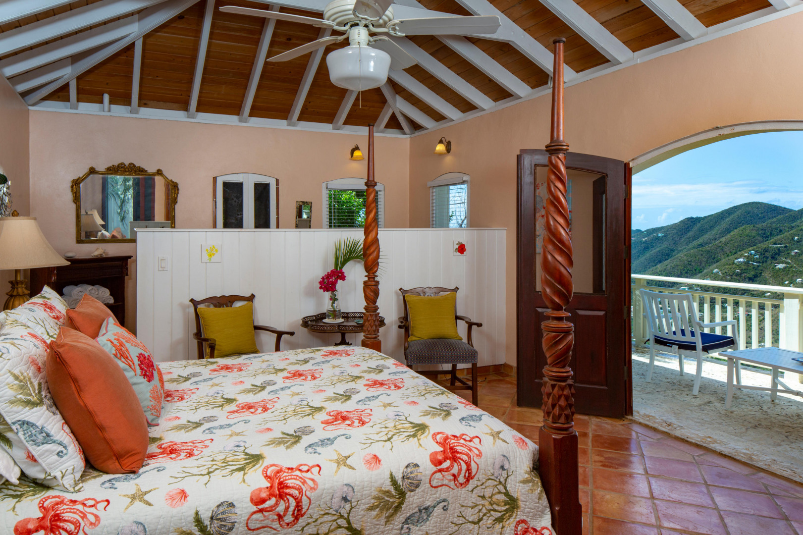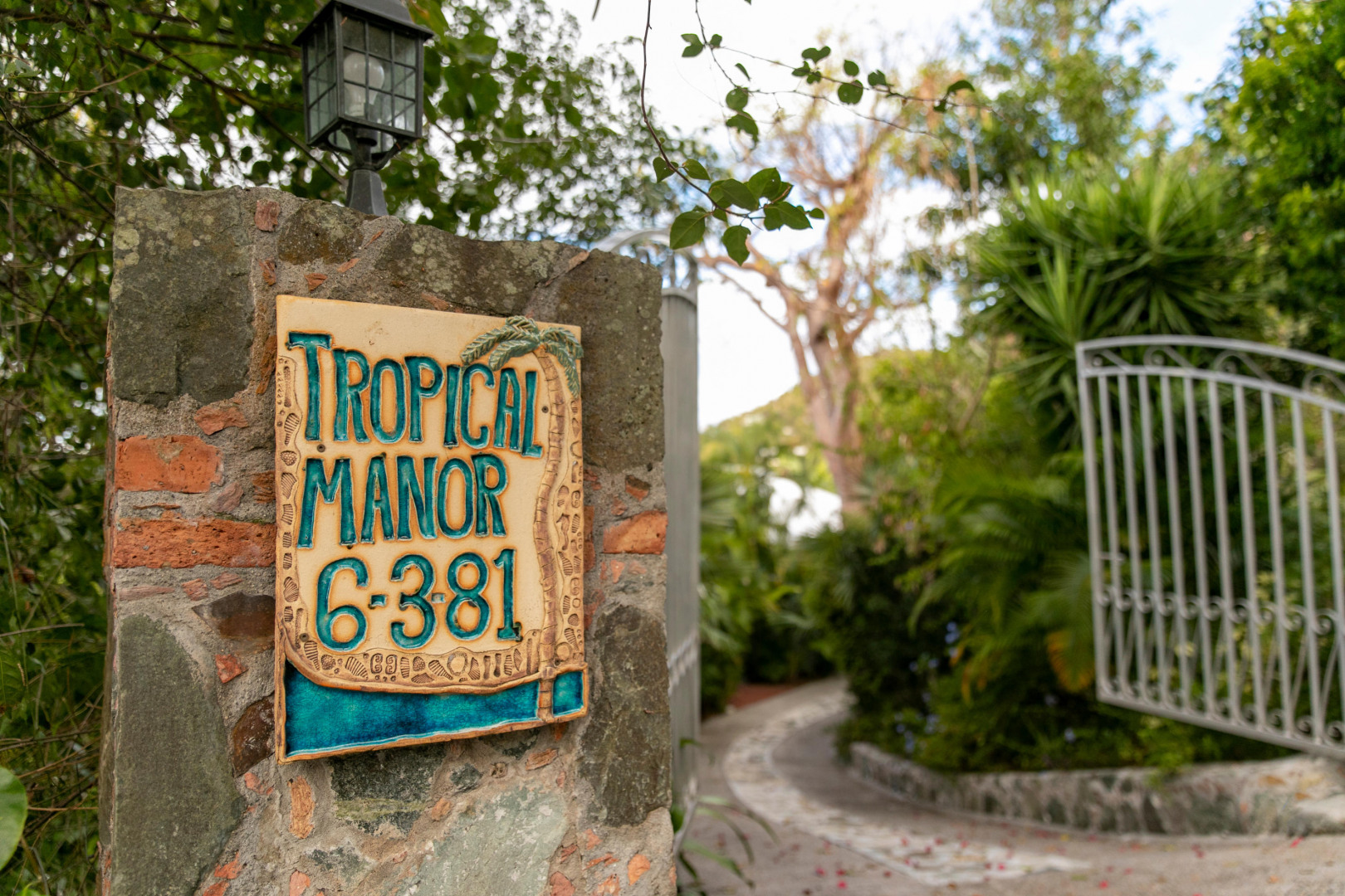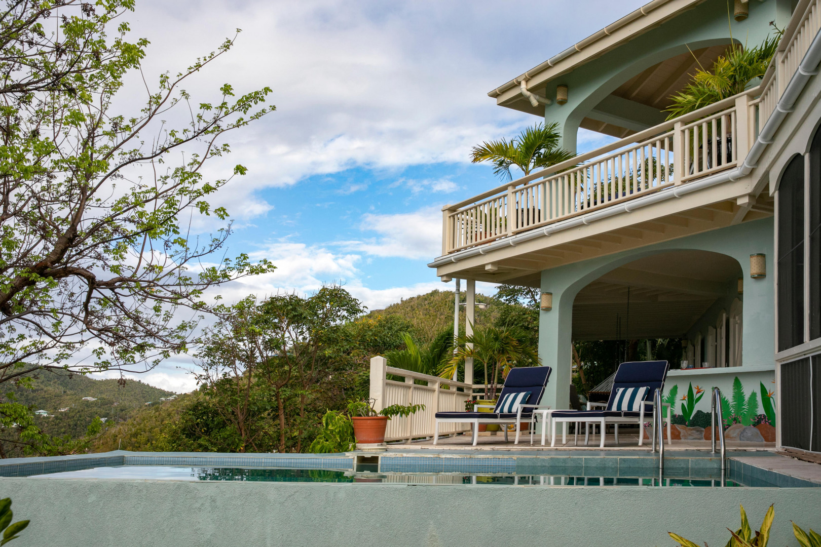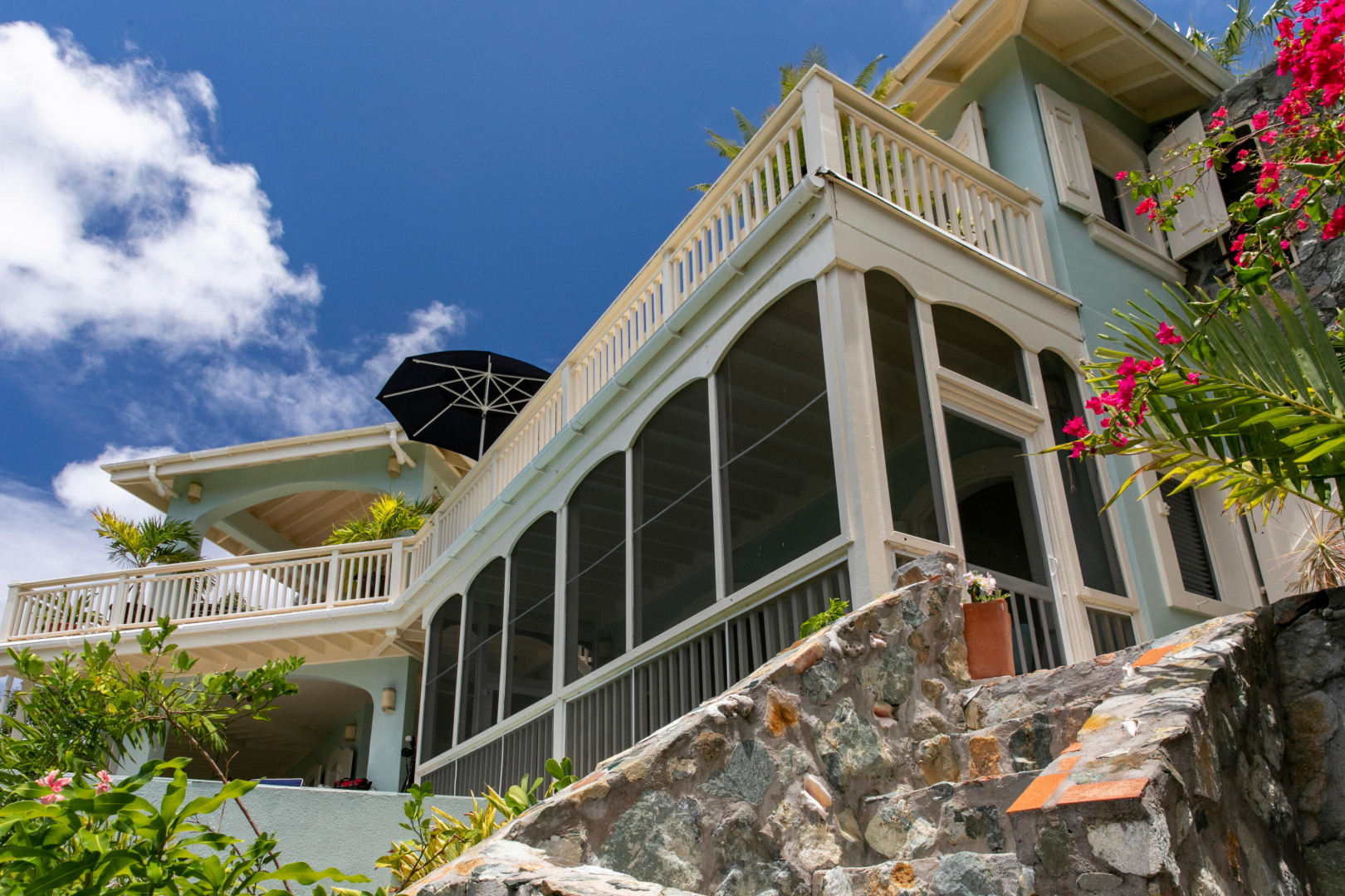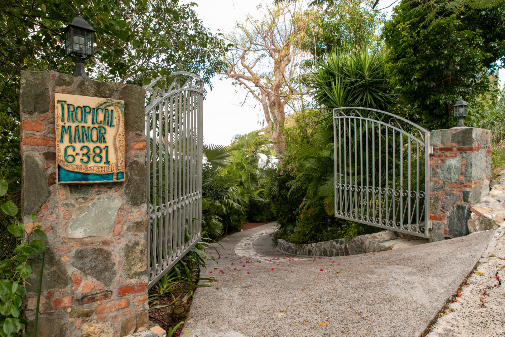 Just Reduced! Escape to Tropical Manor-Enjoy the sea, the sky, the gardens,the stunning views & the tranquillity. Newly decorated Tropical Manor exudes quintessential Caribbean/Danish architecture. This custom built 4 bedroom masonry pool villa w/arched openings, island stone & mahogany doors is sited on Majestic Mile overlooking Coral Bay. The private gated entrance features stone & brick modeled after the local Annaberg ruins. The yard offers walking paths & terraced stone walls leading to lush garden sitting areas. Open floor plan w/vaulted ceilings, a mahogany dining bar & custom kitchen w/SS appliances leads to expansive decks throughout. The pool area offers a large deck, hand painted pool bar & lounging hammocks ideal for entertaining. Meticulously maintained & strong rental history