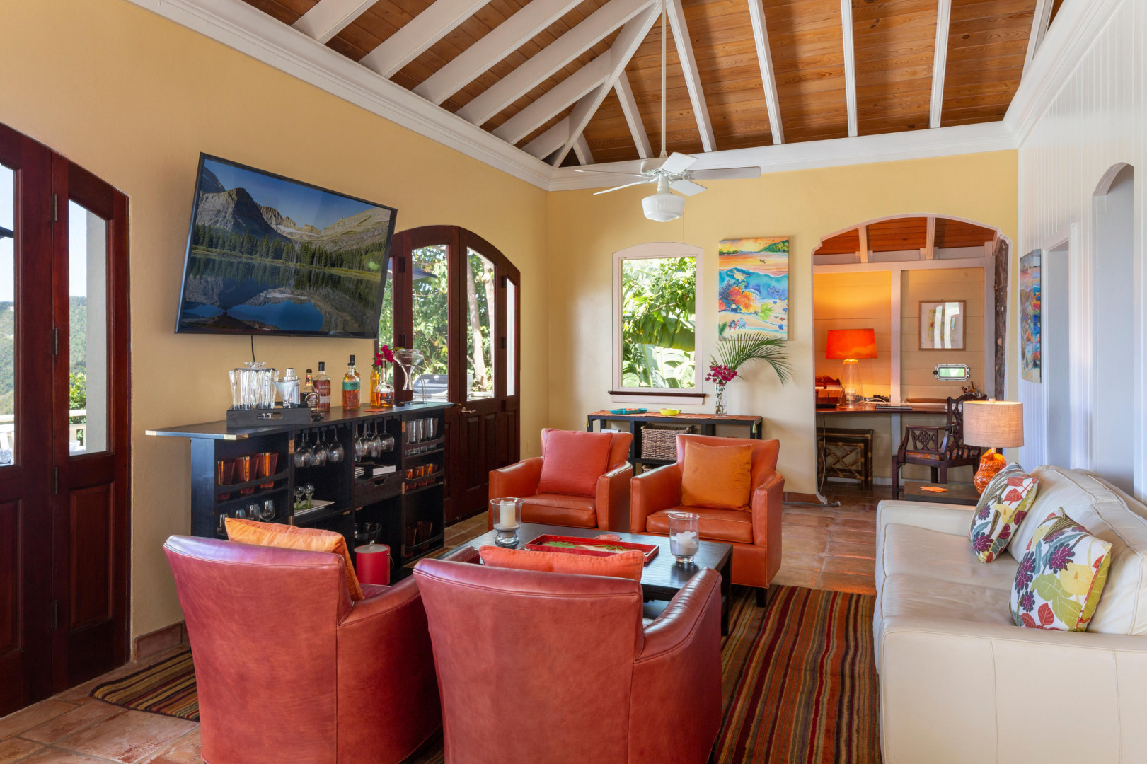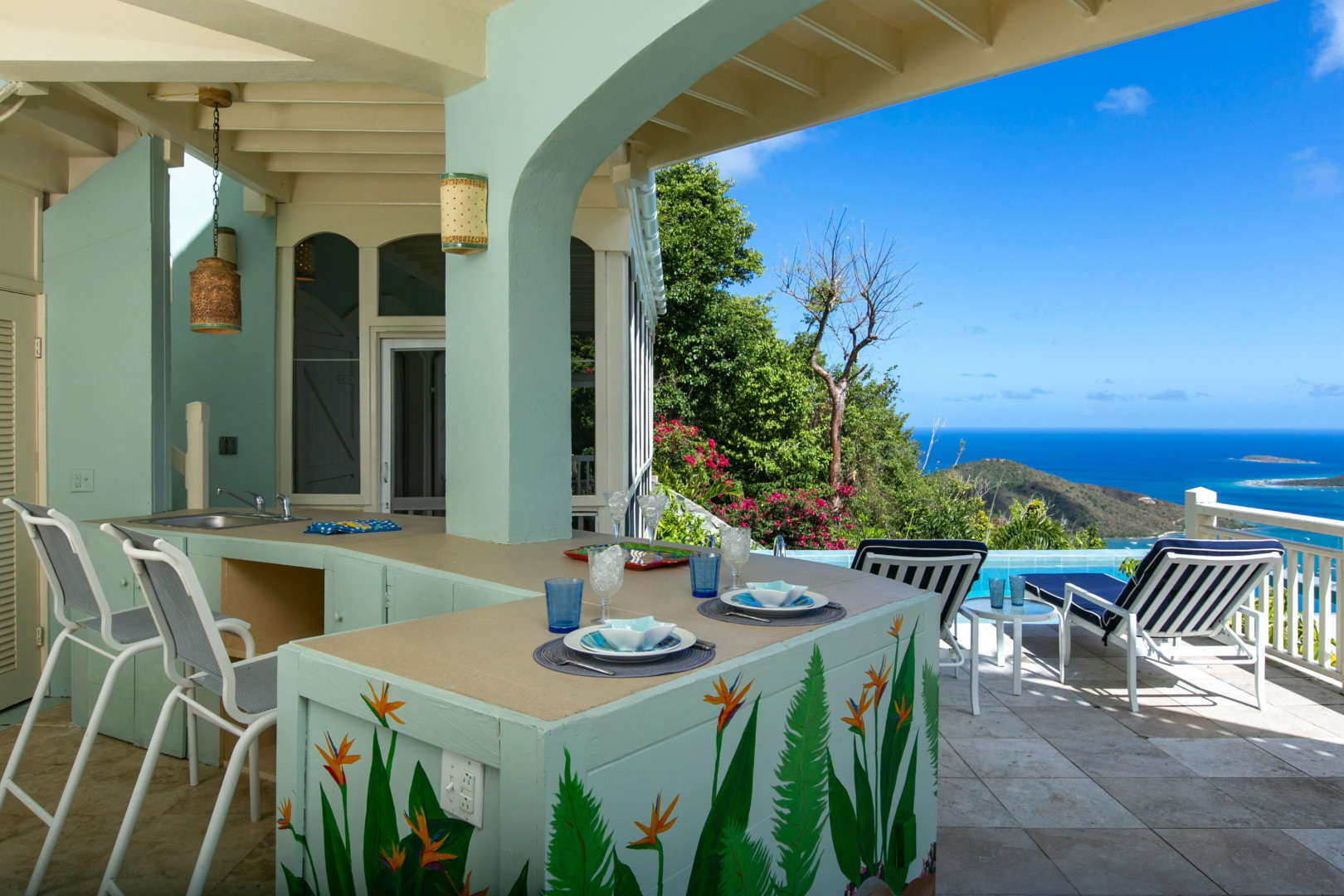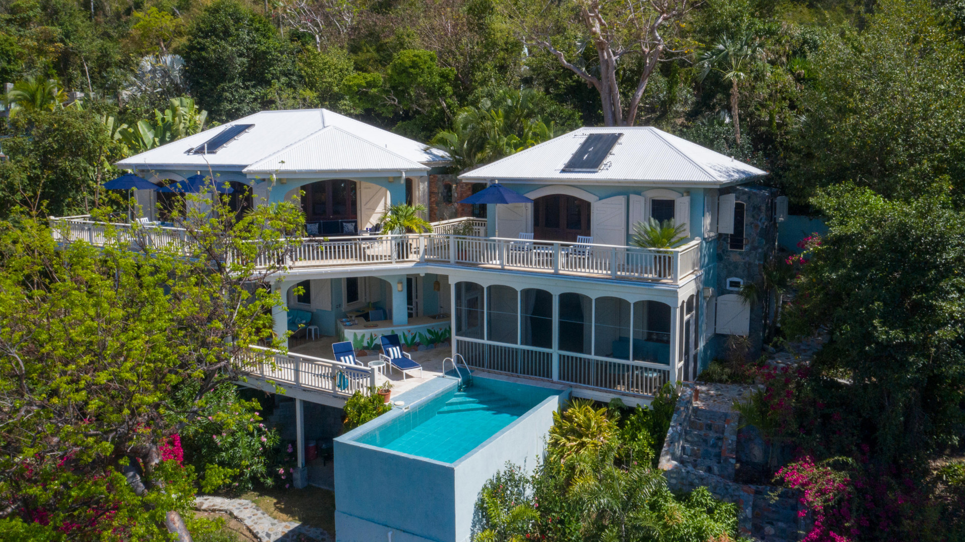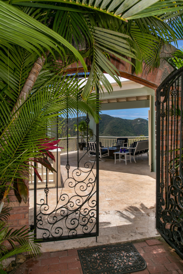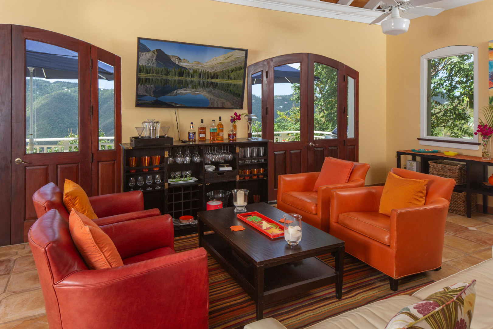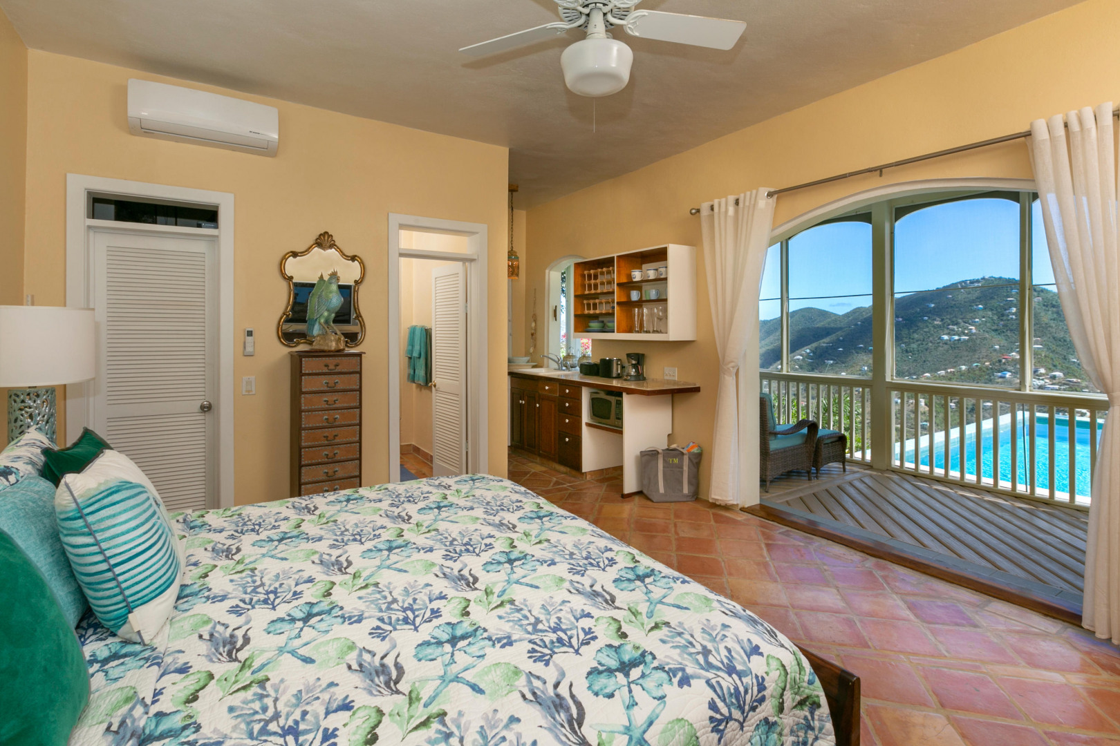 Just Reduced! Escape to Tropical Manor-Enjoy the sea, the sky, the gardens,the stunning views & the tranquillity. Newly decorated Tropical Manor exudes quintessential Caribbean/Danish architecture. This custom built 4 bedroom masonry pool villa w/arched openings, island stone & mahogany doors is sited on Majestic Mile overlooking Coral Bay. The private gated entrance features stone & brick modeled after the local Annaberg ruins. The yard offers walking paths & terraced stone walls leading to lush garden sitting areas. Open floor plan w/vaulted ceilings, a mahogany dining bar & custom kitchen w/SS appliances leads to expansive decks throughout. The pool area offers a large deck, hand painted pool bar & lounging hammocks ideal for entertaining. Meticulously maintained & strong rental history
