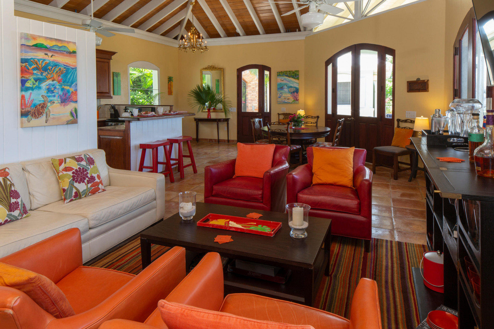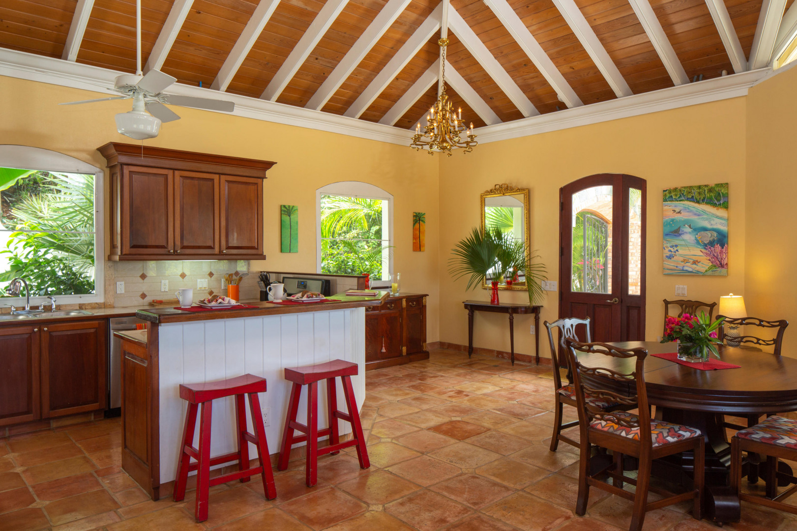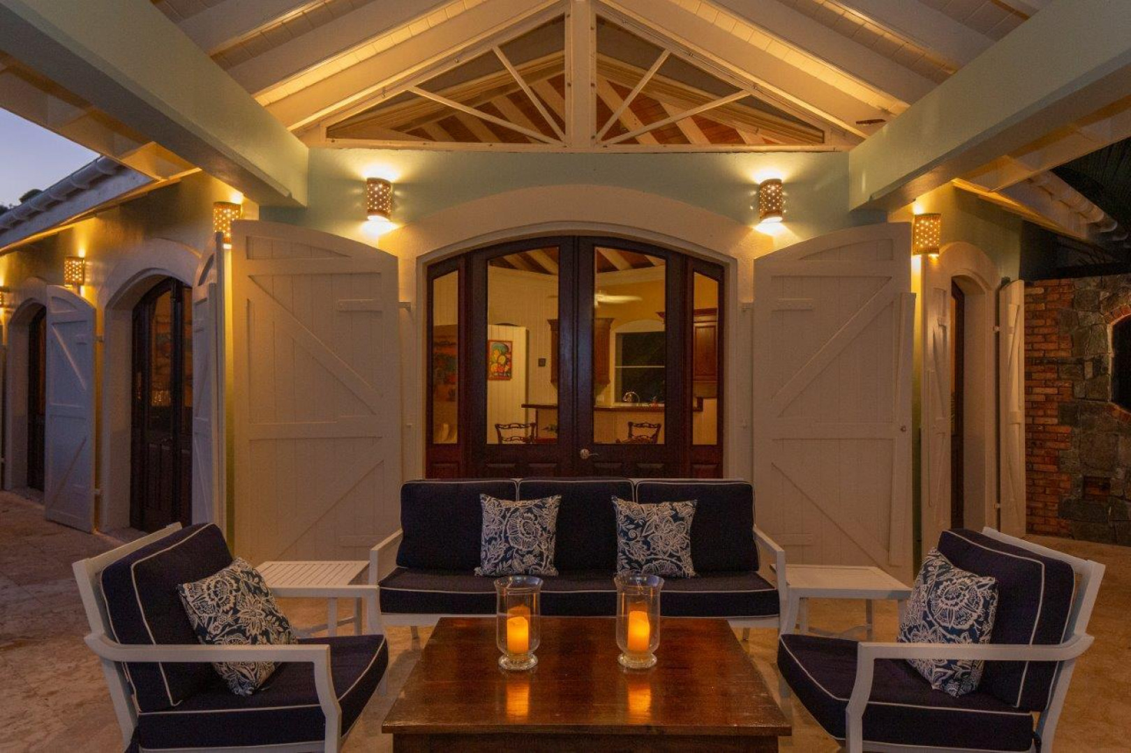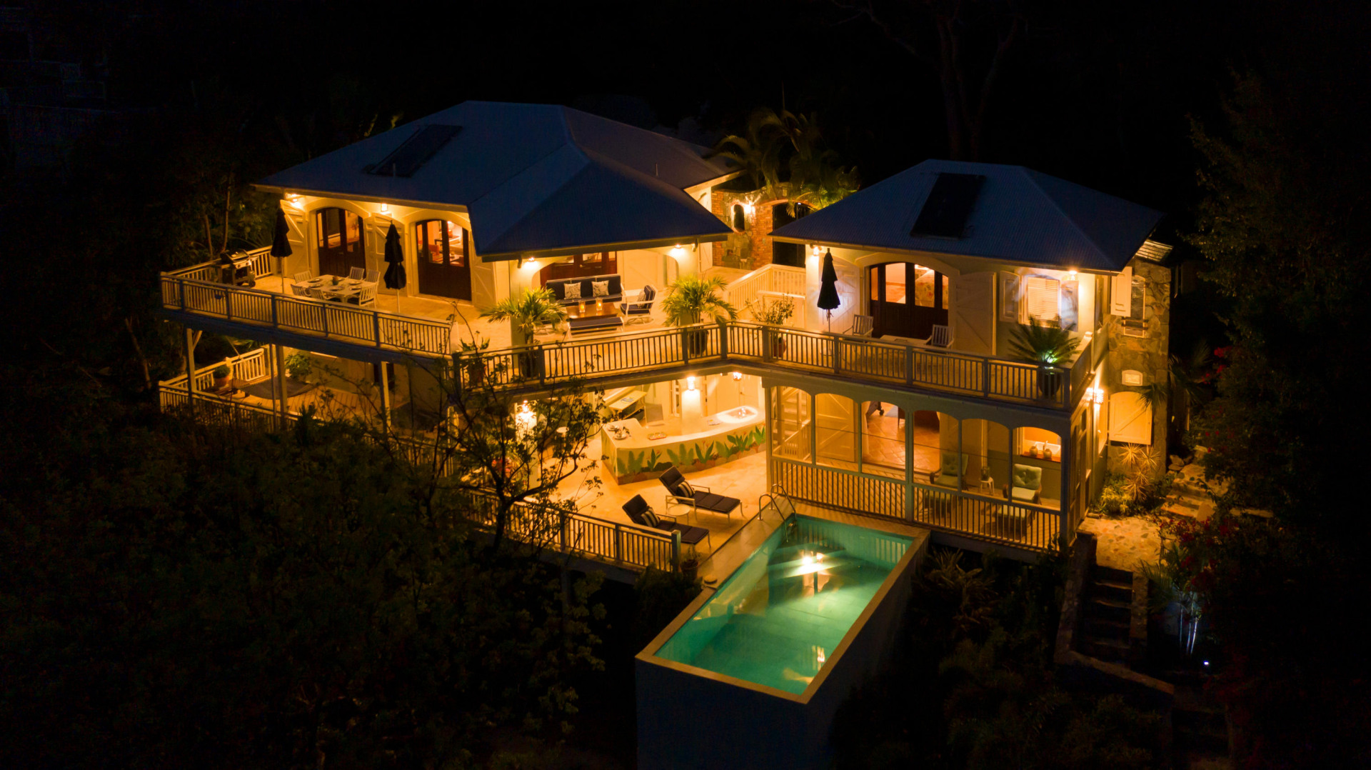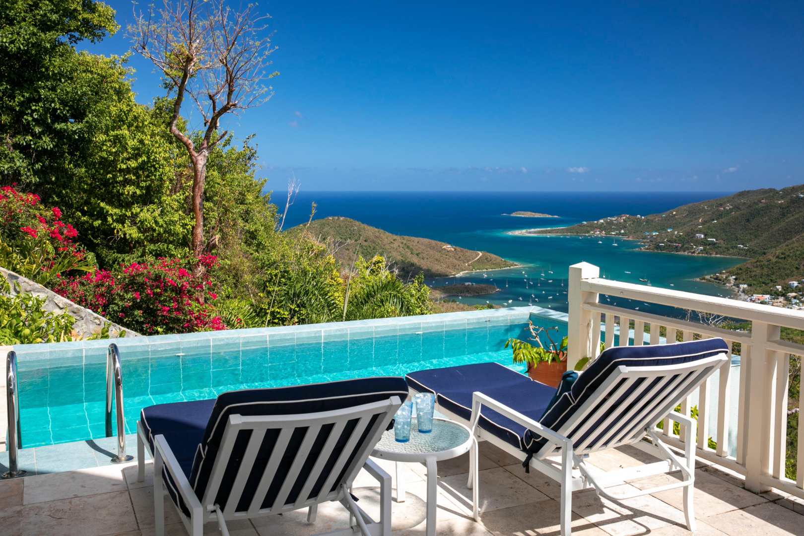 Just Reduced! Escape to Tropical Manor-Enjoy the sea, the sky, the gardens,the stunning views & the tranquillity. Newly decorated Tropical Manor exudes quintessential Caribbean/Danish architecture. This custom built 4 bedroom masonry pool villa w/arched openings, island stone & mahogany doors is sited on Majestic Mile overlooking Coral Bay. The private gated entrance features stone & brick modeled after the local Annaberg ruins. The yard offers walking paths & terraced stone walls leading to lush garden sitting areas. Open floor plan w/vaulted ceilings, a mahogany dining bar & custom kitchen w/SS appliances leads to expansive decks throughout. The pool area offers a large deck, hand painted pool bar & lounging hammocks ideal for entertaining. Meticulously maintained & strong rental history