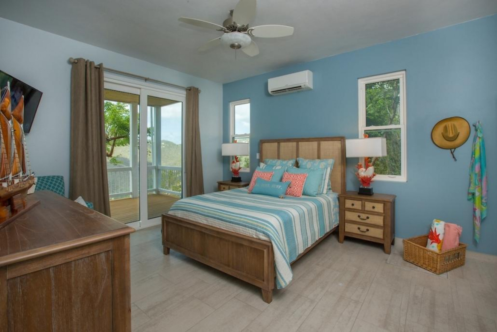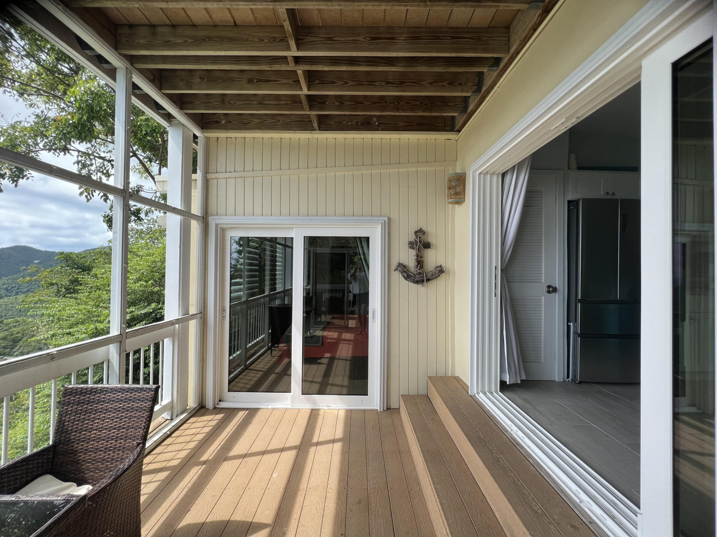 Allow your dreams to become reality at VILLA MORENA, located in the well-established neighborhood of Upper Carolina, only moments from St John's National Park, featuring our famous white sand North Shore beaches. Nestled high in the hilltops, this comfortable villa offers cool breezes & expansive views of Coral Harbor, with the added lush Bordeaux Mountain vistas. This 2 unit masonry home can be rented as either a two or four bedroom - with the opportunity to live in one unit & rent the other! On over a half acre of land, a pool terrace could be easily added. This modern home offers a brand new main kitchen, an interior staircase perfect for families, maintenance-free Trex decking, a UV water filtration system, & all furnishings are included. Only 5 star reviews on rental websites.