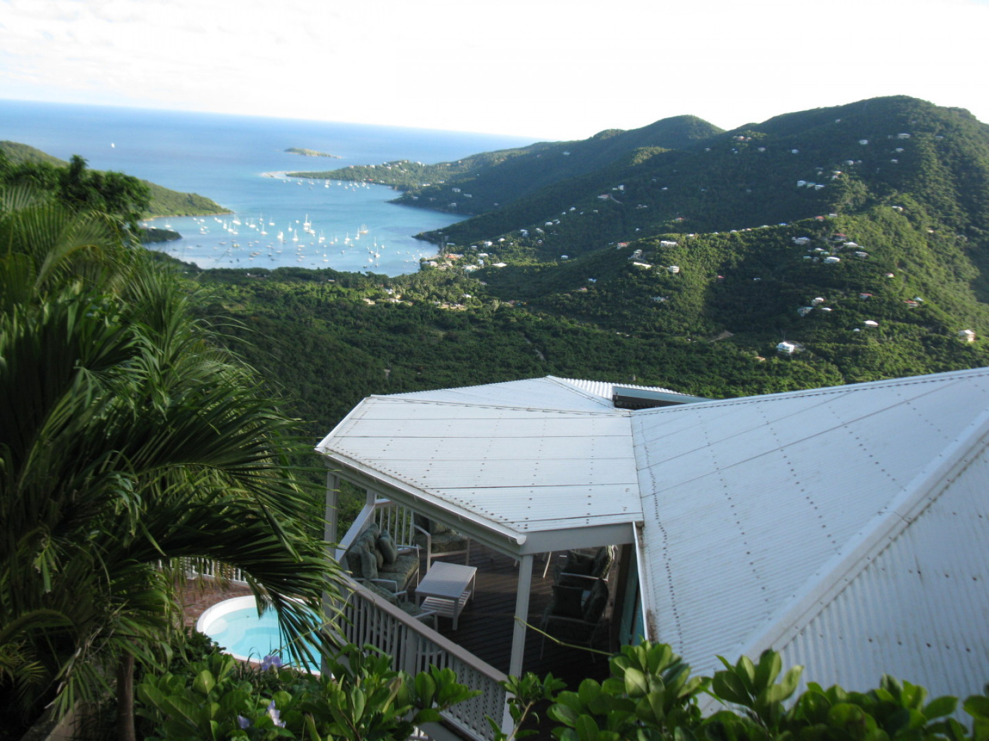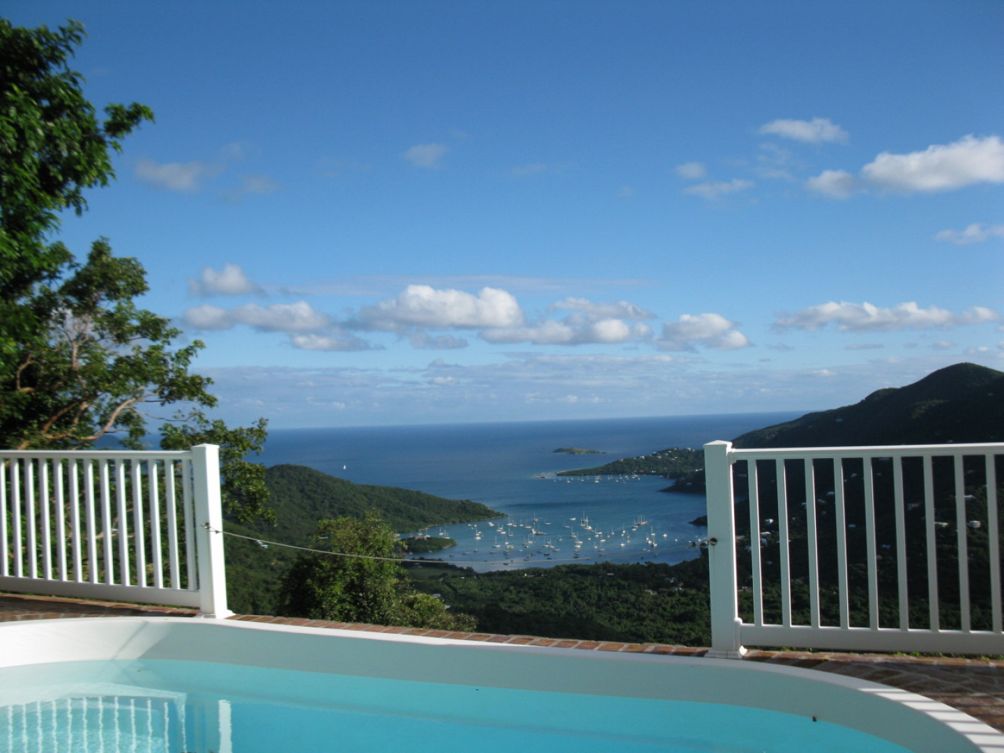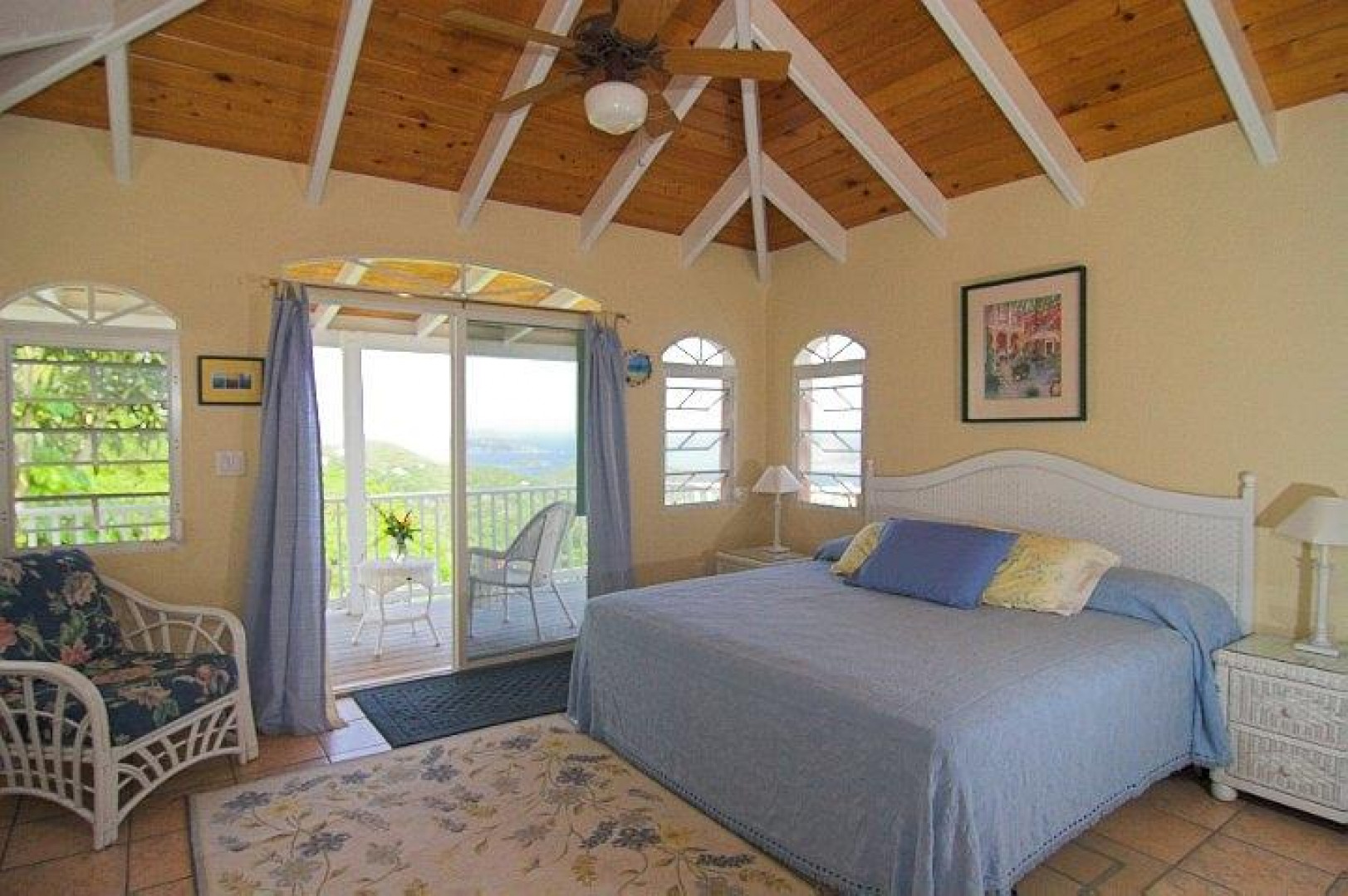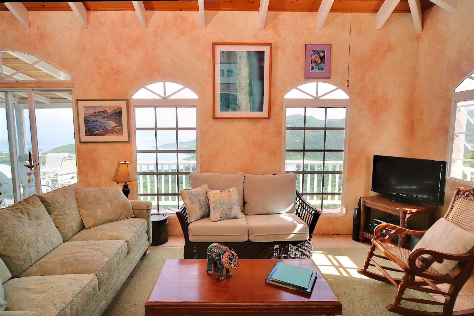 "A Day Dream" Villa offers a fabulous wide view of Coral Bay, the BVI's, Bordeaux Mt. & out to sea. This beautiful 3 bedroom - 3.5 bath masonry home located on Majestic Mile in tranquil Upper Carolina, is multi-level which provides privacy to each bedroom & bath suite. Small modest cottage (non-conforming) offers additional space for rental income or caretaker. Picture-perfect views from the infinity-edge pool & hot tub; the covered & open decks spaces & from virtually every room in the house make this a must-see property. Features include: landscaped grounds w/ stone walls, brick walkways, solar hot water heater, full hurricane shutter system, & Spanish cedar custom cabinets & generator. Deeded access to common beach parcel in Johnson Bay. Buyers to honor rental bookings.