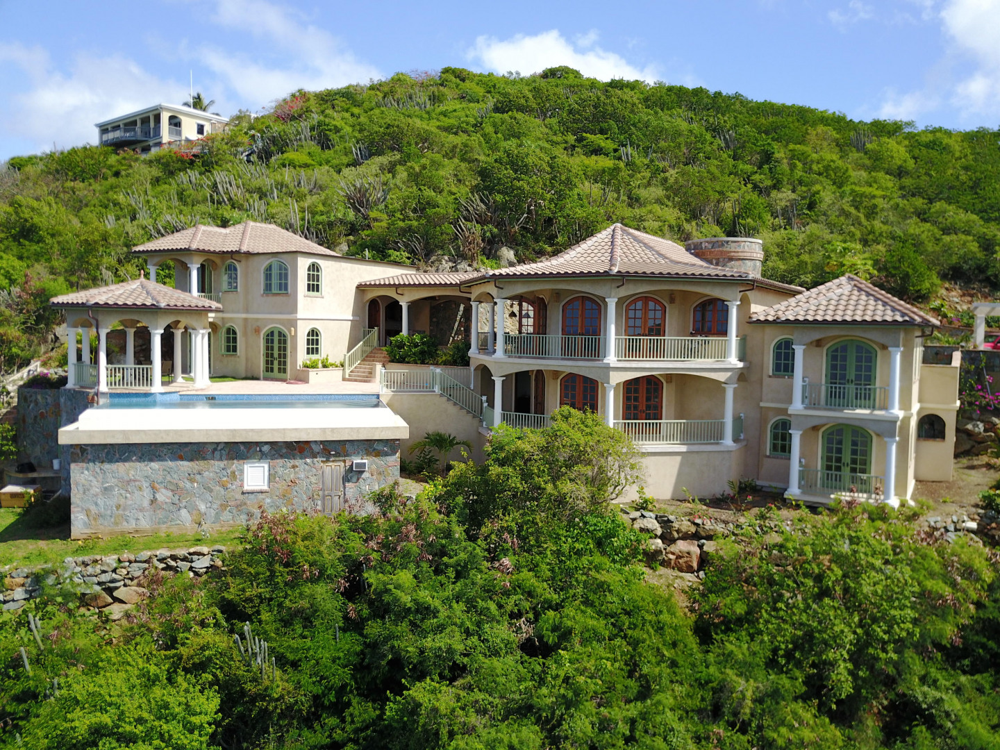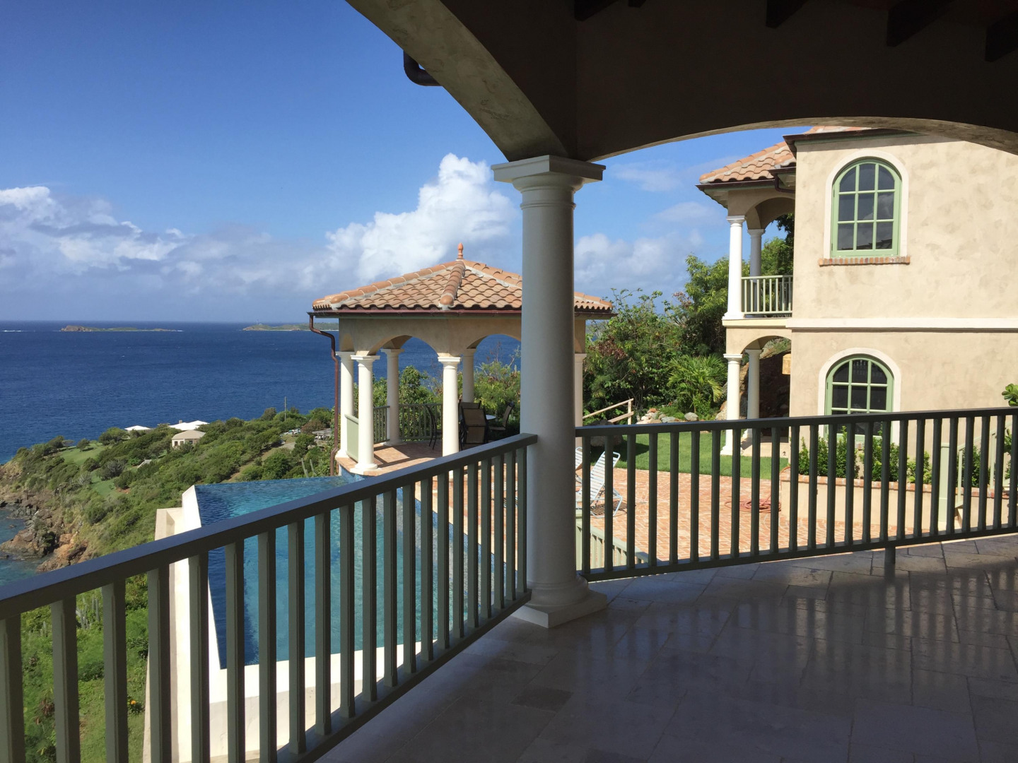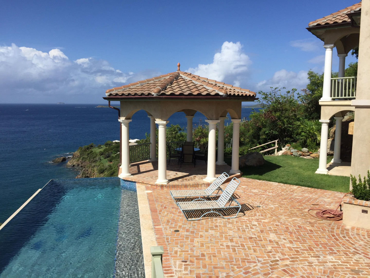 La Palais is a luxurious villa overlooking Great Cruz Bay and the south shore. Facing the prevailing easterly breezes & enjoying sun and moon rises. The property features four equal bedroom suites w/ balconies & en-suite baths, a large media room, 2 powder rooms, pool, terrace, gazebo, veranda w/ wet bar, waterfall, & BBQ area. Comfortable drive and parking for 4 vehicles w/ trellis designed for solar panels. Beautiful stone walls throughout & ''sugar mill'' entry along with many unique details and professional landscaping. This stunning new villa is located in a small, quiet neighborhood, w/ paved roads and underground utilities, and just minutes away from the hustle and bustle Cruz Bay. Every attention to detail has been made in the building design and use of natural materials. MUST SEE!Seller is moving forward with the final punch list on completing La Palais. The granite counter tops will be ordered and installed along with the furnishings being purchased and other finishes completed. This beautiful villa did not sustain any damage from the September hurricanes.