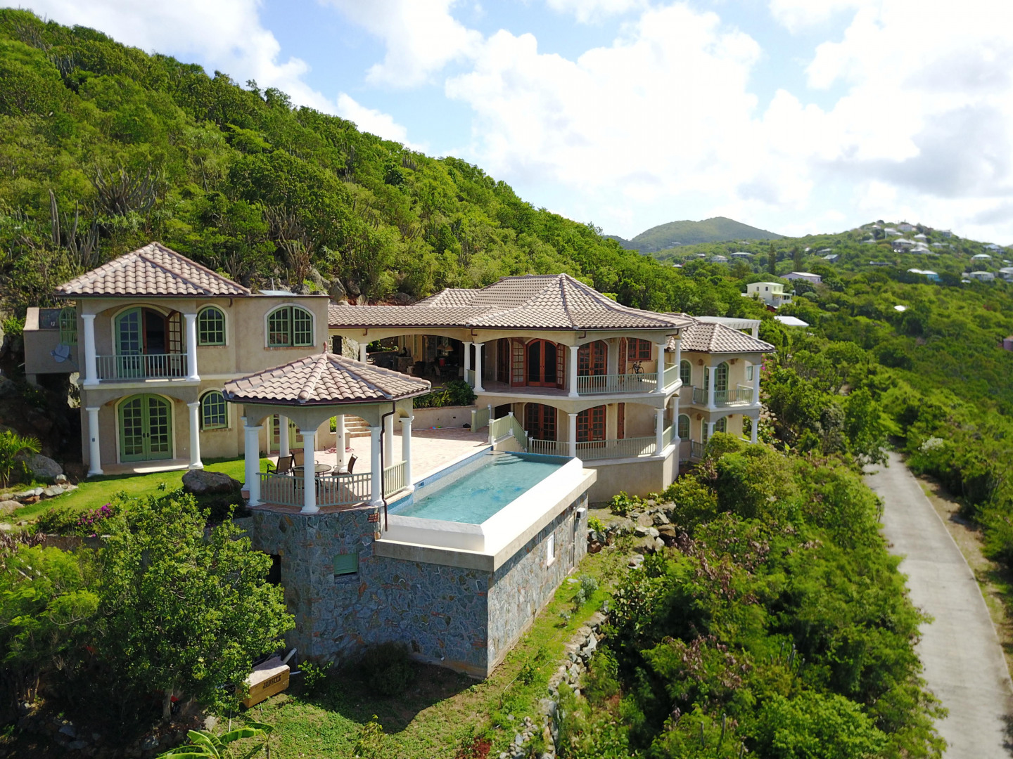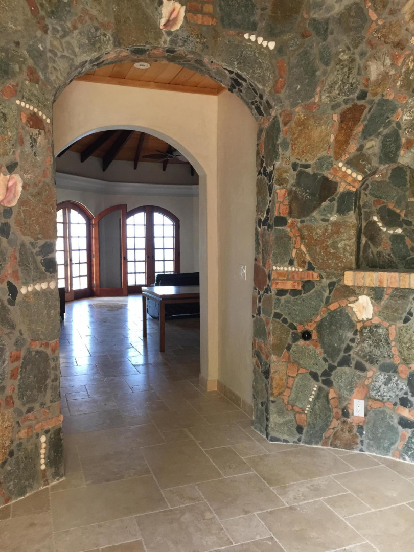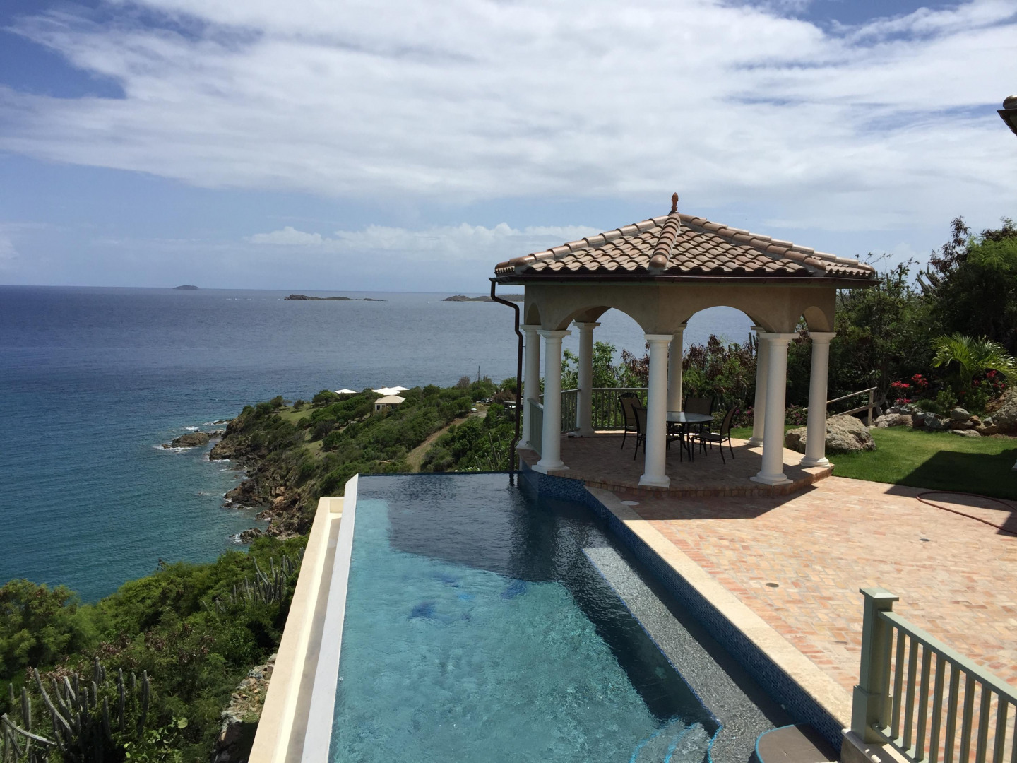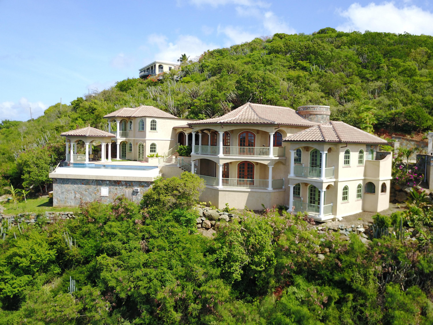 La Palais is a luxurious villa overlooking Great Cruz Bay and the south shore. Facing the prevailing easterly breezes & enjoying sun and moon rises. The property features four equal bedroom suites w/ balconies & en-suite baths, a large media room, 2 powder rooms, pool, terrace, gazebo, veranda w/ wet bar, waterfall, & BBQ area. Comfortable drive and parking for 4 vehicles w/ trellis designed for solar panels. Beautiful stone walls throughout & ''sugar mill'' entry along with many unique details and professional landscaping. This stunning new villa is located in a small, quiet neighborhood, w/ paved roads and underground utilities, and just minutes away from the hustle and bustle Cruz Bay. Every attention to detail has been made in the building design and use of natural materials. MUST SEE!Seller is moving forward with the final punch list on completing La Palais. The granite counter tops will be ordered and installed along with the furnishings being purchased and other finishes completed. This beautiful villa did not sustain any damage from the September hurricanes.