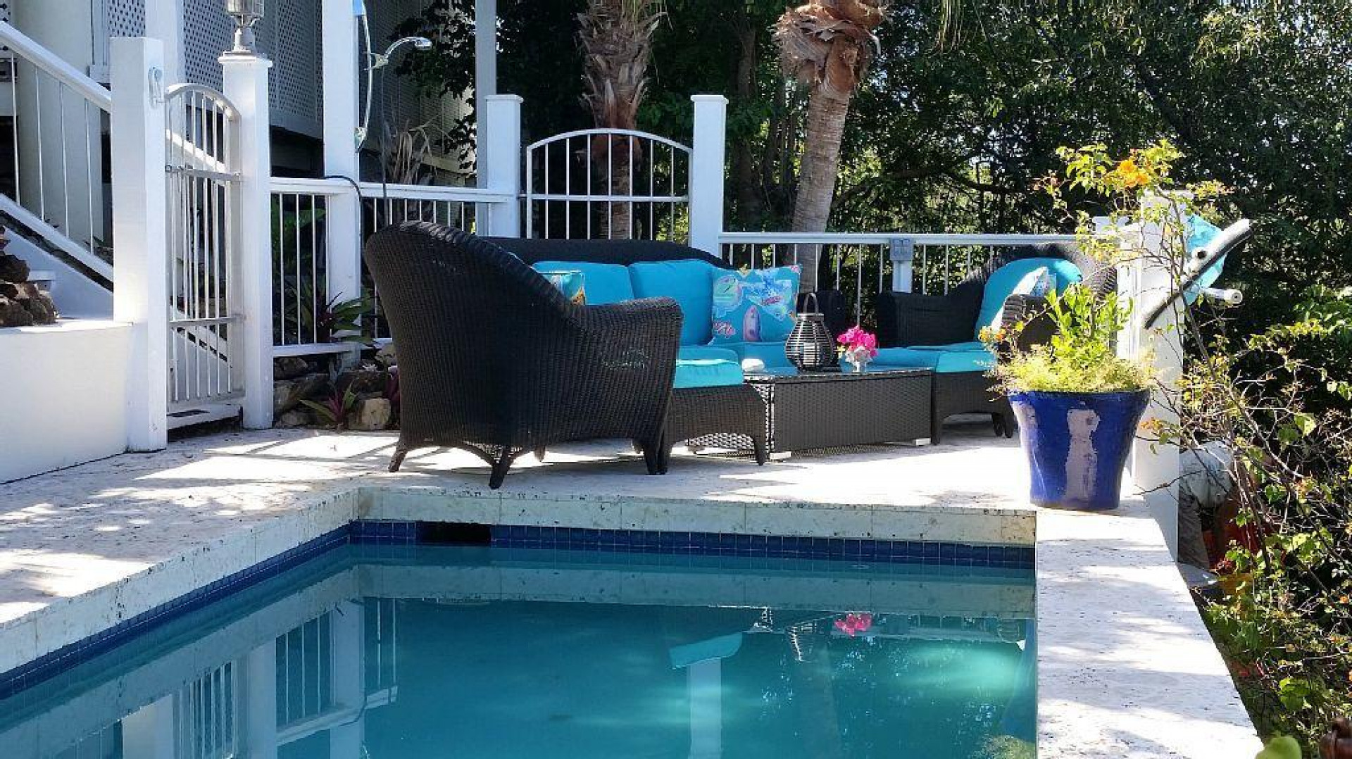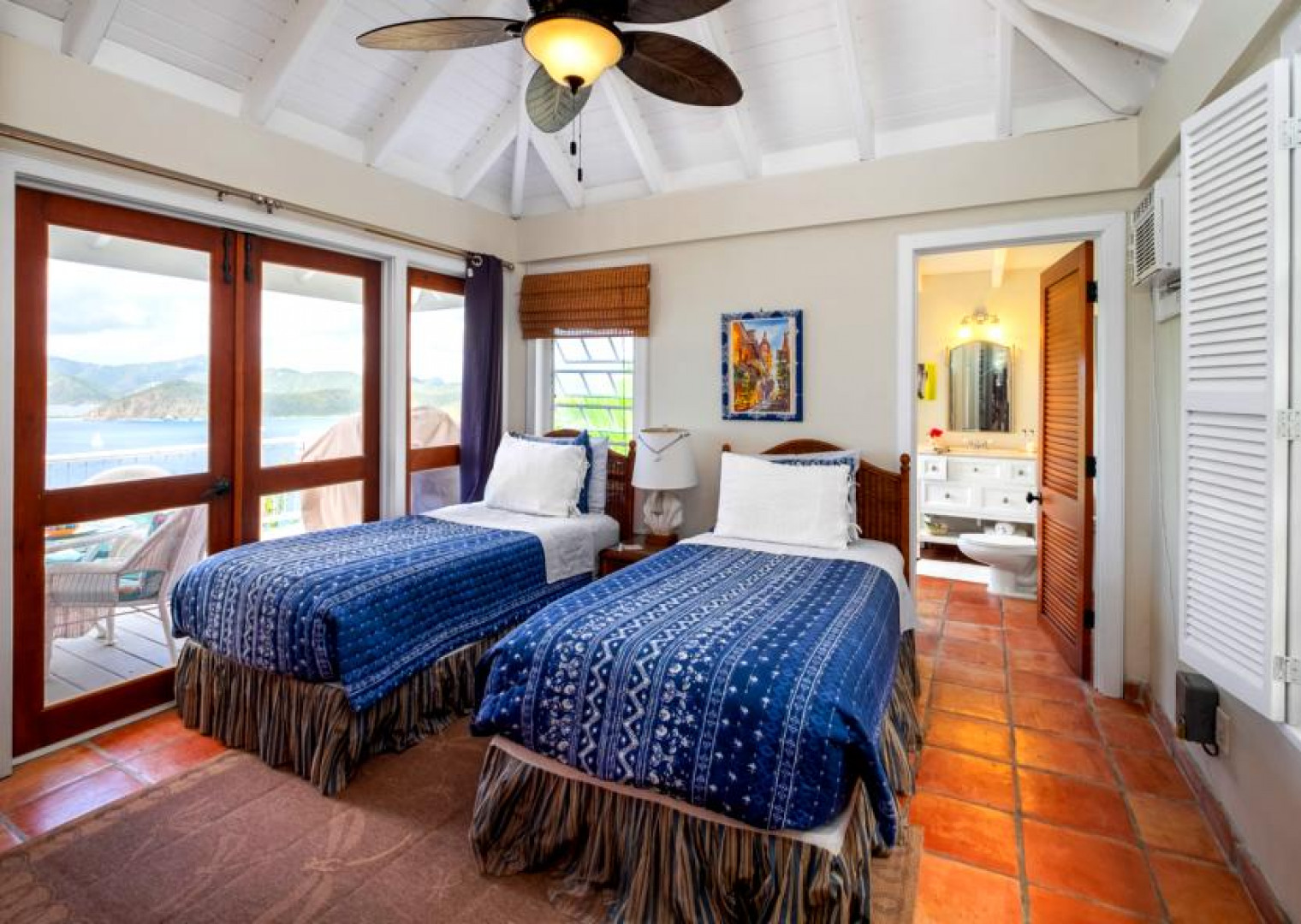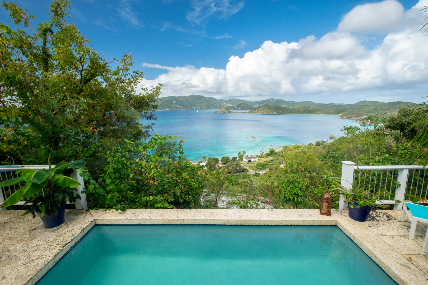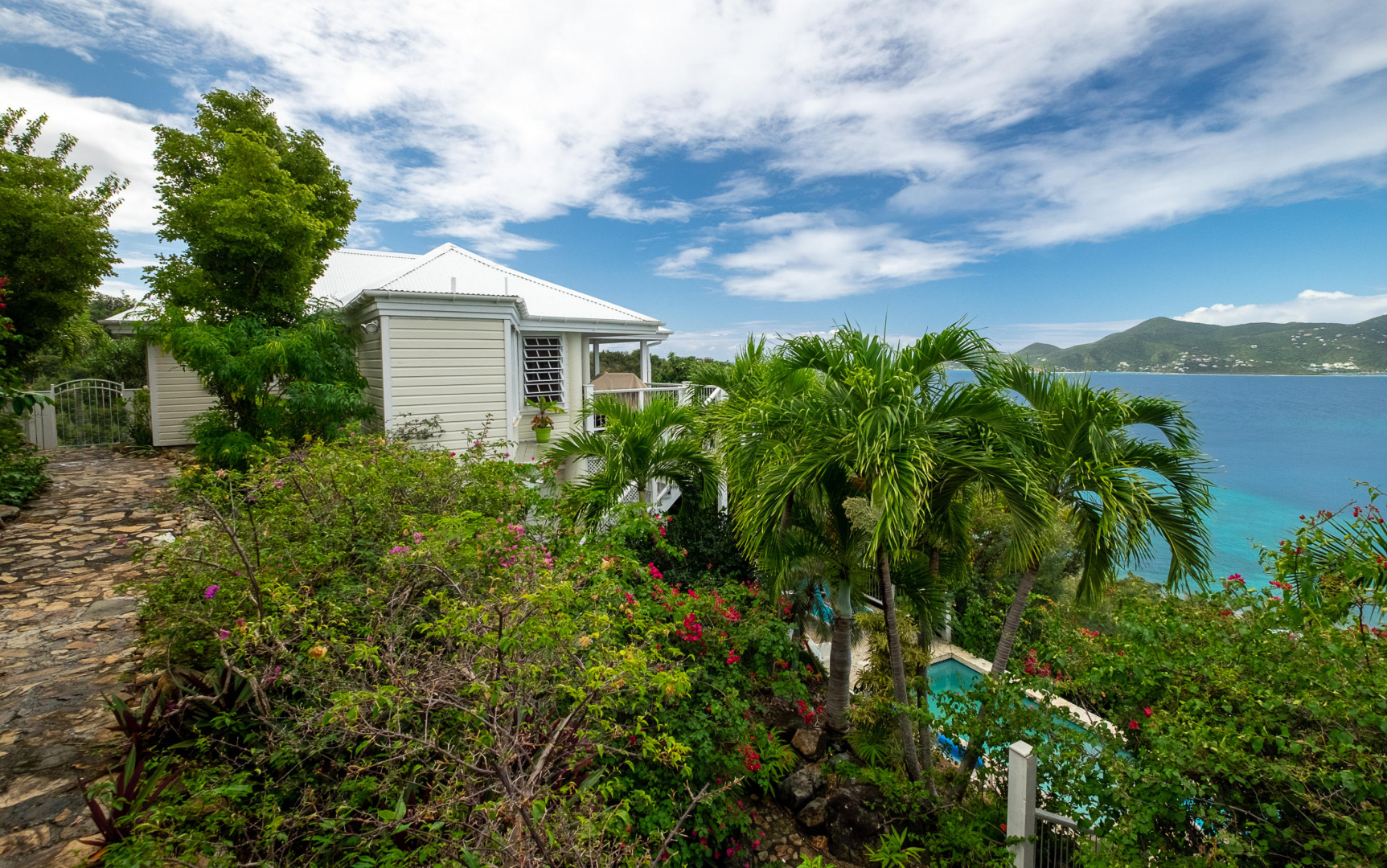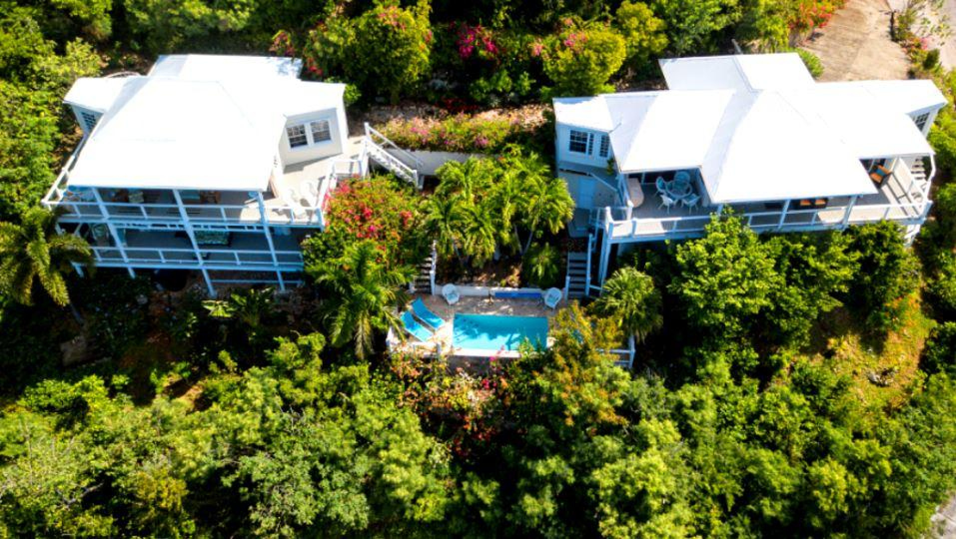 Perched on a hill in a mesmerizing setting, Wild Jasmine is comprised of 2 private villas, separated by lush landscaping and swimming pool. Every room has panoramic views of the ocean, mountains and sunsets, which many say are the most amazing they have ever seen. Both villas are well maintained, freshly painted inside and out. Both roofs are new. Appliances are stainless steel and newer. Located in upscale & secluded Privateer Estates, you will have deeded access to 2 of the most picturesque beaches on St. John. Both are within easy walking distance and are semi-private. Often you will be the only ones on the beach. A large family can occupy both homes; 1 home could be rented very profitably with the owners occupying the other; or both homes can be rented, doubling the income