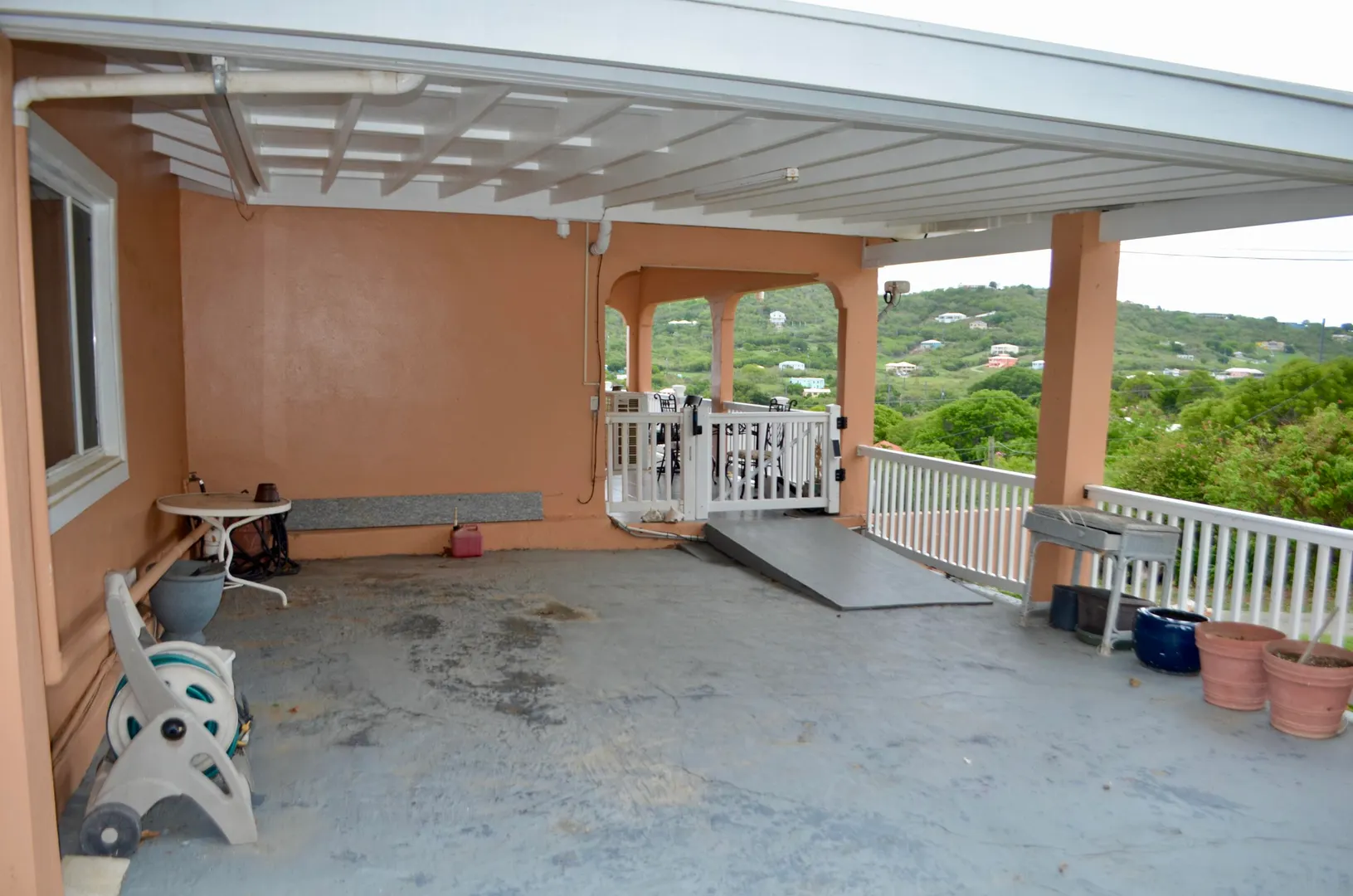 This 3 bedroom/2 bath spacious home has it all! A large kitchen with direct access to a carport features granite countertops, stainless steel appliances and an island for preparing feasts and socializing in the heart of the home. Passthrough with bar seating separates the kitchen from the super-sized living room that leads out to a wraparound porch with views of Buck Island and the Caribbean sea. Large primary ensuite with AC, double closets, shower & soaker tub is enviable. Two additional, nicely-sized bedrooms, both with split AC units, share a guest bathroom. Perched on a hill in Cotton Valley, home has backup propane generator w/ auto transfer, 2 carports, a nicely manicured lawn and lots of outdoor entertaining space. Note this is a multi-unit property with 2 tenants on lower level.