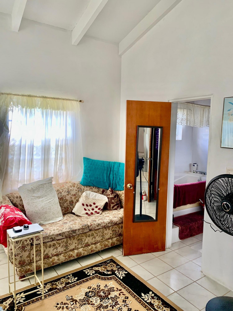 **Great Home and/or Investment Property!** R-3 zoned, quiet neighborhood with well-kept homes and recently paved streets.3 bed/2 bath upstairs with spacious rooms and high ceilings throughout. Ensuite master. Roomy, open kitchen and dining area. Laundry off of kitchen with washer/dryer. Breezy front porch entrance and sitting area. Unfinished downstairs offers many possibilities Electric and plumbing is in.Just needs fixtures and finishing touches. 2 bed/1 bath cottage in the backyard too! Nicely landscaped with mature fruit trees. Great mid-island location near shopping, schools,UVI, public transport, and farmers markets. Within minutes of beaches, diving, golfing, and much more! R-3 zoning allows multi-dwellings and some businesses. Sold As Is.