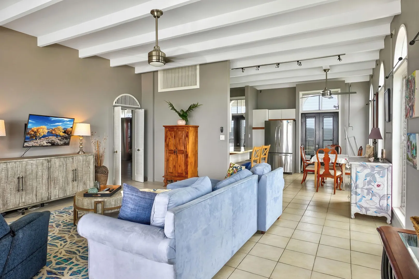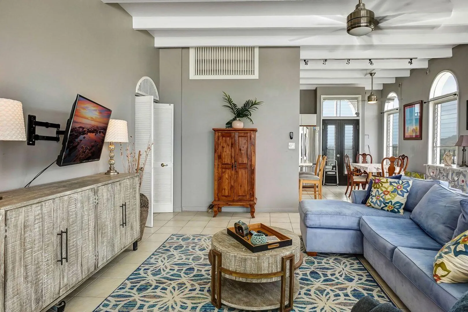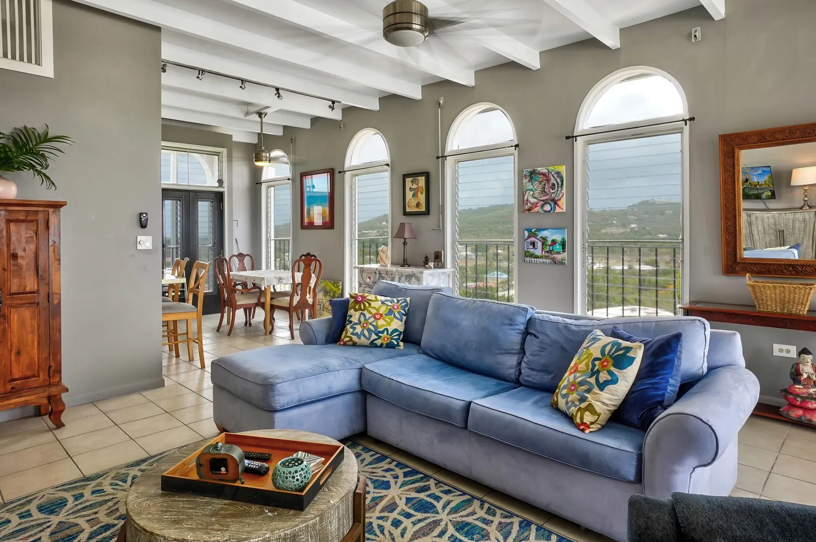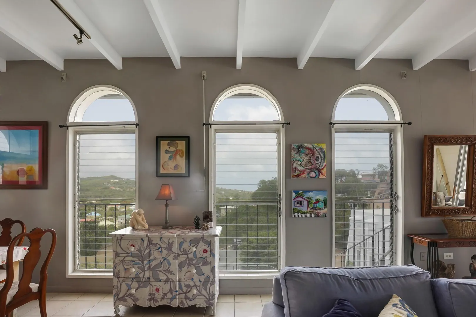This unique penthouse condo is just what you've been looking for. Located on the third floor, this spacious single level unit is accessed via a private gate and offers two bedrooms, two baths, and an open floor plan perfect for entertaining. The end location features plenty of windows that let the bright light and breezes fill every room, and you will be captivated by the amazing views of the Christiansted Harbor, Buck Island and the Caribbean Sea. The roomy gallery offers additional living space where you can relax and enjoy your morning coffee or an evening cocktail. The unit comes with a lower level 4x9 storage space, and the complex has an automatic generator so you never have to worry about power!