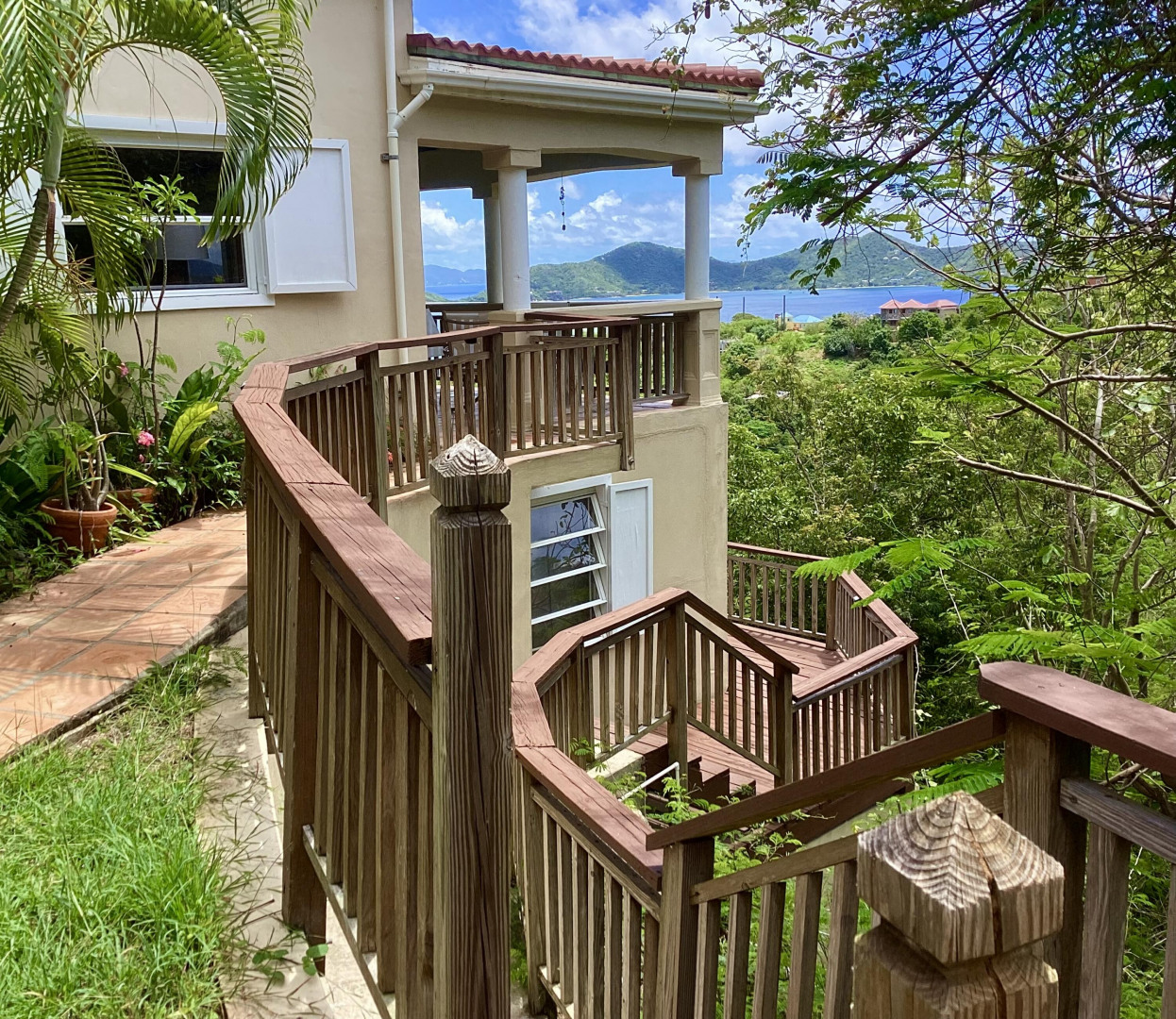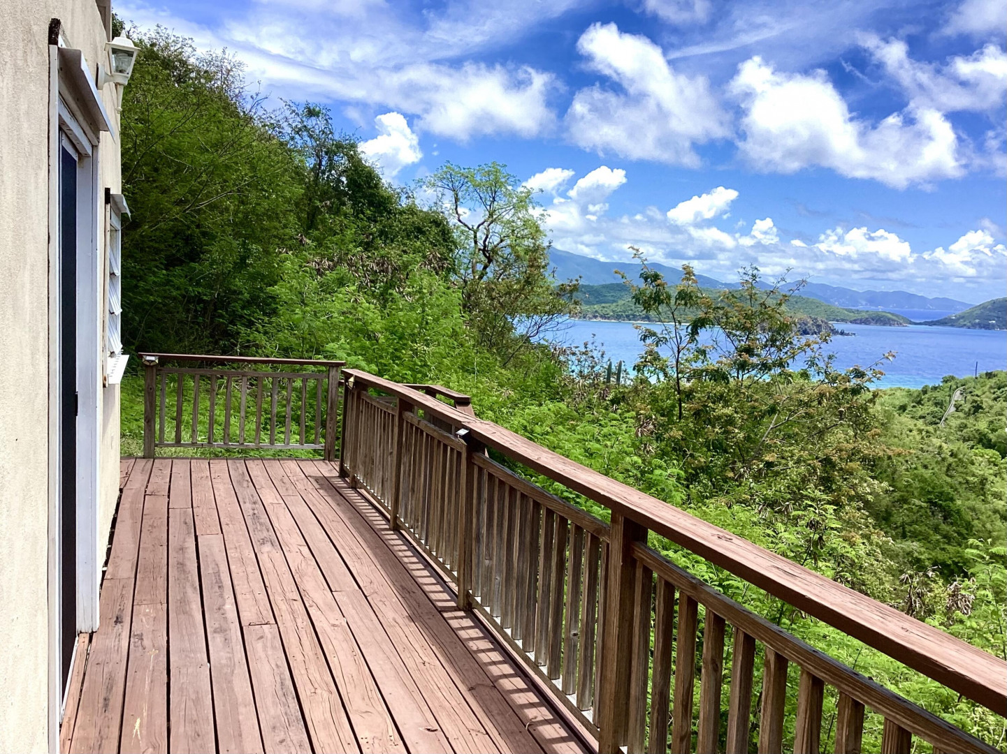 Well built home with stunning views spanning the East End, Johnson Bay and British Virgin Islands. Enjoy majestic sunrises and cooling tradewinds while sipping your morning coffee on the expansive porch. Tranquil, end-of-road location in the less developed section of popular St Quaco & Zimmerman. Morningstar villa has short-term income potential with separate entrances to the upper 1 bedroom and lower full studio apartments. A large concrete work/storage area with stairwell from the studio level. Includes every tool you'd ever need in 2 large locked boxes and adjacent shed. Enjoy watching the sailboats heading out to sea from Coral Bay.Cistern size to be determined by Buyer. New HOA has not established yearly dues. The $2000.00 road assessment is paid by Seller. *Downstairs apartment walls are pressure treated wood with stucco. Deeded access to Johnson Bay.