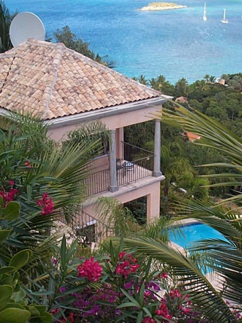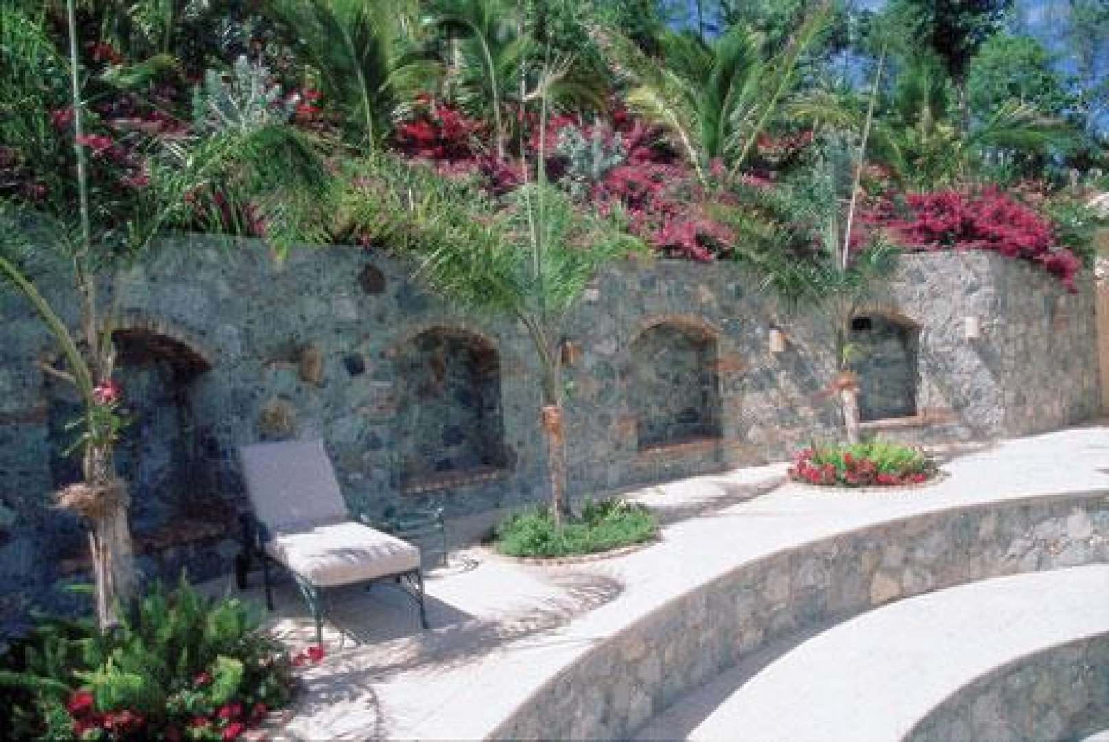 WALK TO WHITE SAND BEACH from 'CoCo de Mer', a completely private 'Botanical Garden' in the northshore gated community of Peter Bay on St. John! Stunning Glen Speer designed home offers maximum privacy, just a short walk from the beautiful white sand beach at Peter Bay, with superb snorkelling in protected National Park waters.This impeccably maintained luxurious vacation villa is lavishly furnished with custom mahogany pieces and specially designed fabrics; the handcrafted mahogany kitchen has state of the are stainless steel Viking appliances. Among the special features are a shaded outdoor exercise area with full bath, a large hot tub spa set amidst beautiful tropical gardens, a spectacular terraced 50 ft pool situated in a unique garden amphitheater, abundant island stonework, tiled roofs, unique tiled floors highlighted by central mosaic design, delightful fountains and 5 climate controlled bedrooms with private baths. It's perfect for families as well as guests! Enjoy breathtaking views of turquoise waters and sugar sand beaches through French doors and windows in all rooms and expansive galleries and verandas off central Great Room. Views encompass Peter Bay, Cinnamon Bay, Whistling Cay, Francis Bay, BVIs and beyond! Backup generator has soundproof housing. This nonsmoking villa is a coveted top end rental and all confirmed guest reservations shall be honored by Buyer.