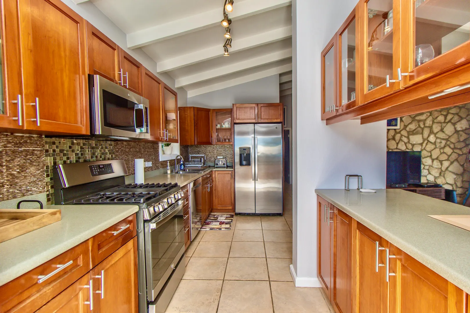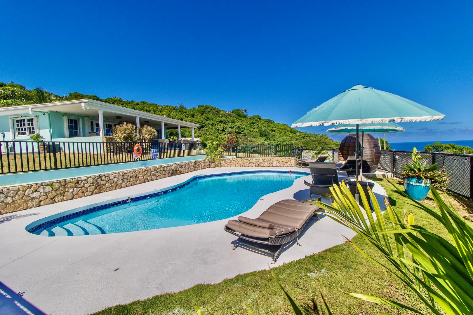 Luxury island lifestyle awaits...Luxurious, conveniently located 2 bedroom/2 bath free-standing villa comes w/ views of Christiansted Harbour, Buck Island, Hotel on the Cay, and, neighboring islands to the north. The classic free-form pool & large deck offers complete relaxation or exercise. You decide. A wonderful east-facing covered patio is perfect for dining or lounging. The lovely breezes & views calm the senses. Inside, the villa's modern interior is fully air-conditioned & furnished. The primary bedroom features an en suite bathroom. Other interior amenities include a dishwasher, washer/dryer, modern gas range, ring security option, and stainless appliances. Rent includes wifi, back-up auto transfer generator, pool & professional lawn care. 3/3 main also available 24-975.