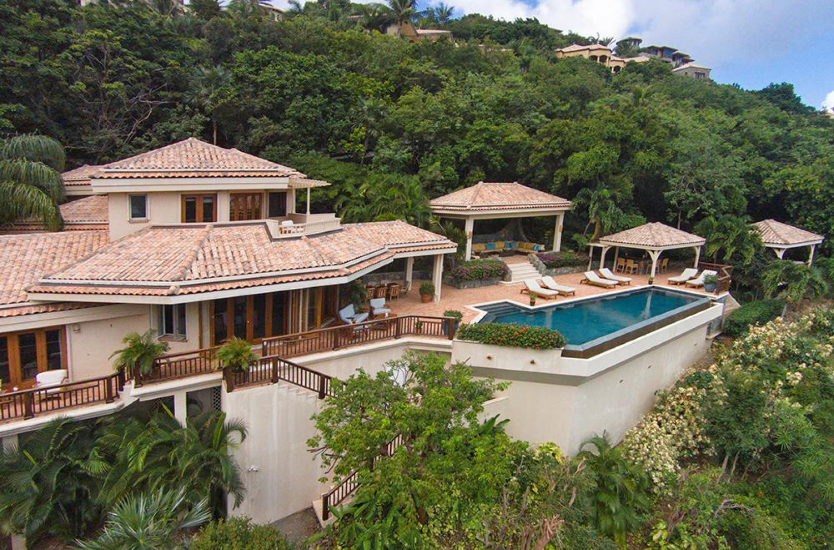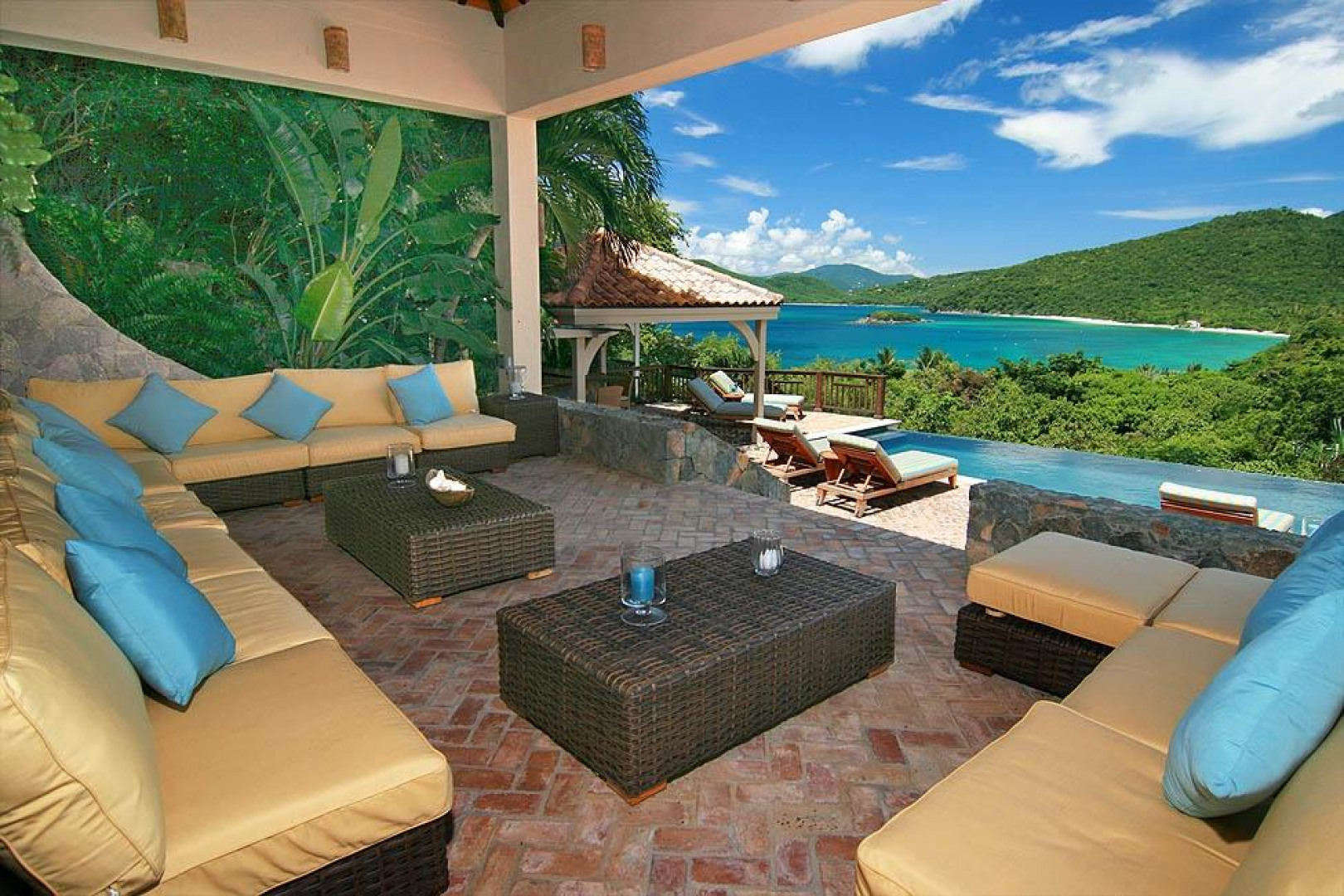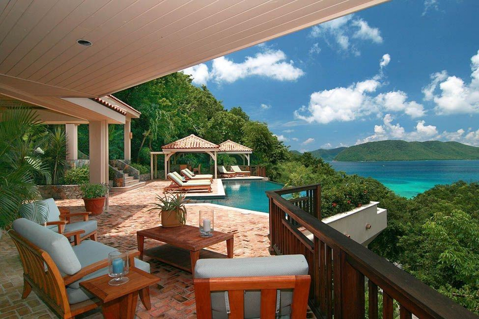 VILLA SUNSPOT is the ultimate in luxurious living in exclusive lower Peter Bay. Featuring stunning views from every room, this elegant 4 bedroom/4.5 bath home has a tastefully furnished living room/dining area and the sprawling outdoor living area provides an ideal setting for entertaining from the alfresco outdoor dining area to the inviting 50 ft. infinity pool to the deluxe pool cabana to the pool side wet bar to the charming gazebo. Surrounded by lush tropical gardens, it is steps away from a beautiful white sand beach. The expanded parking area accommodates at least 5 vehicles including 2 covered carport spaces. Expired Michael Oxman plans/permits are available for a separate private guest suite. The finest in island living and design.....