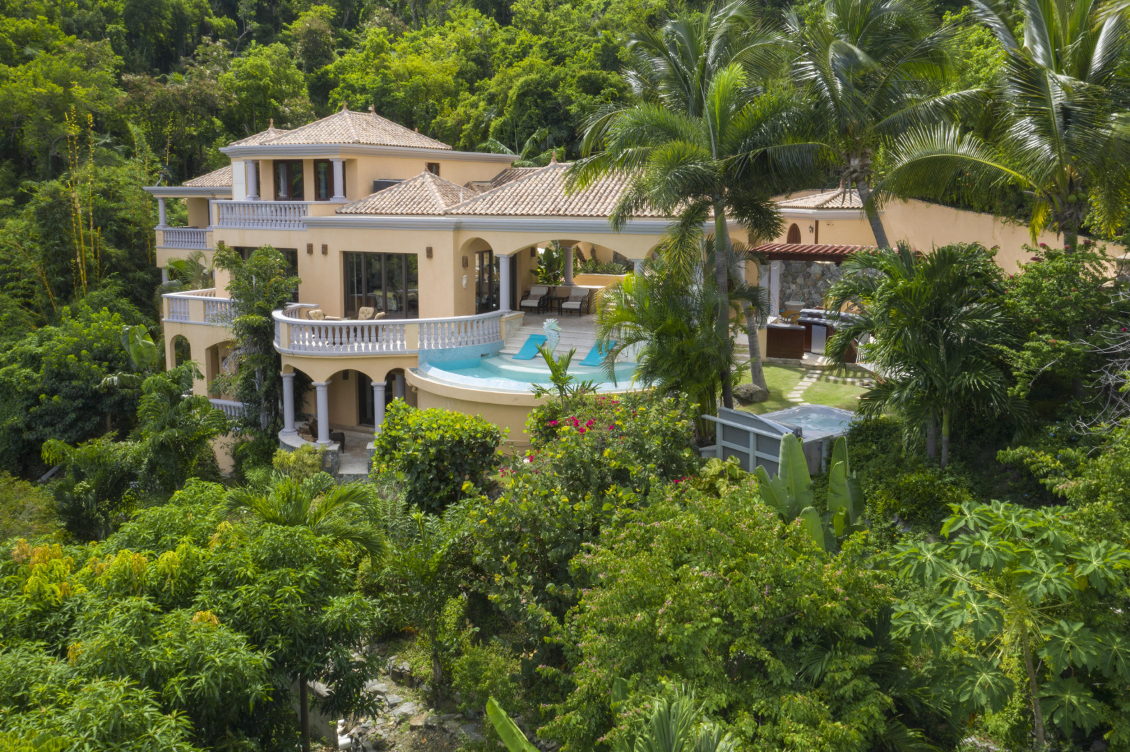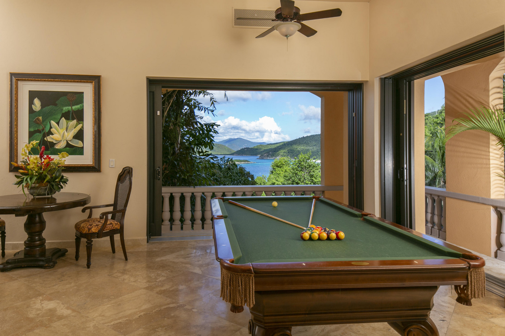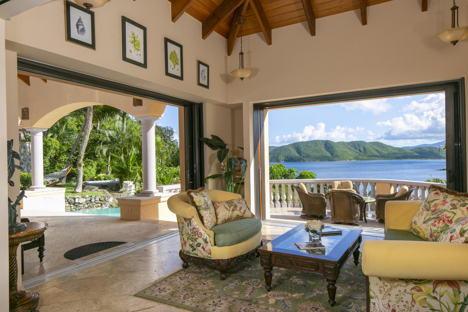 ''Delfina'' is an exceptional luxury villa located in the prestigious gated community of lower Peter bay, only a 5-minute stroll to the association's white sandy beach with exclusive deeded access nestled between Trunk and Cinnamon beaches on the famed north shore of St. John. ''Delfina'' is a popular rental villa with impressive rental income that offers over 11,000 square feet of interior space & furnished terraces with 5-bedroom suites, 6 full baths, 2 half baths, great room with formal dining, chef-equipped gourmet kitchen, game room and well-appointed patio space to enjoy the pool, hot tub or read a good book. Please see Supplement section for more information. *Buyer & Seller to equally split the costs of the transfer stamp tax.