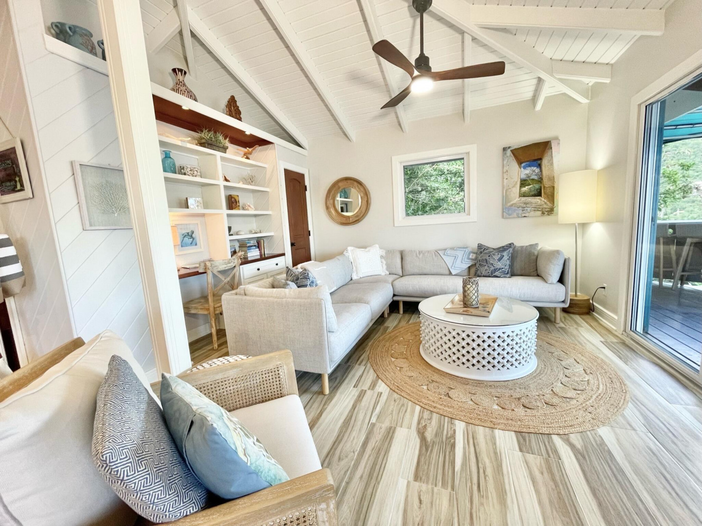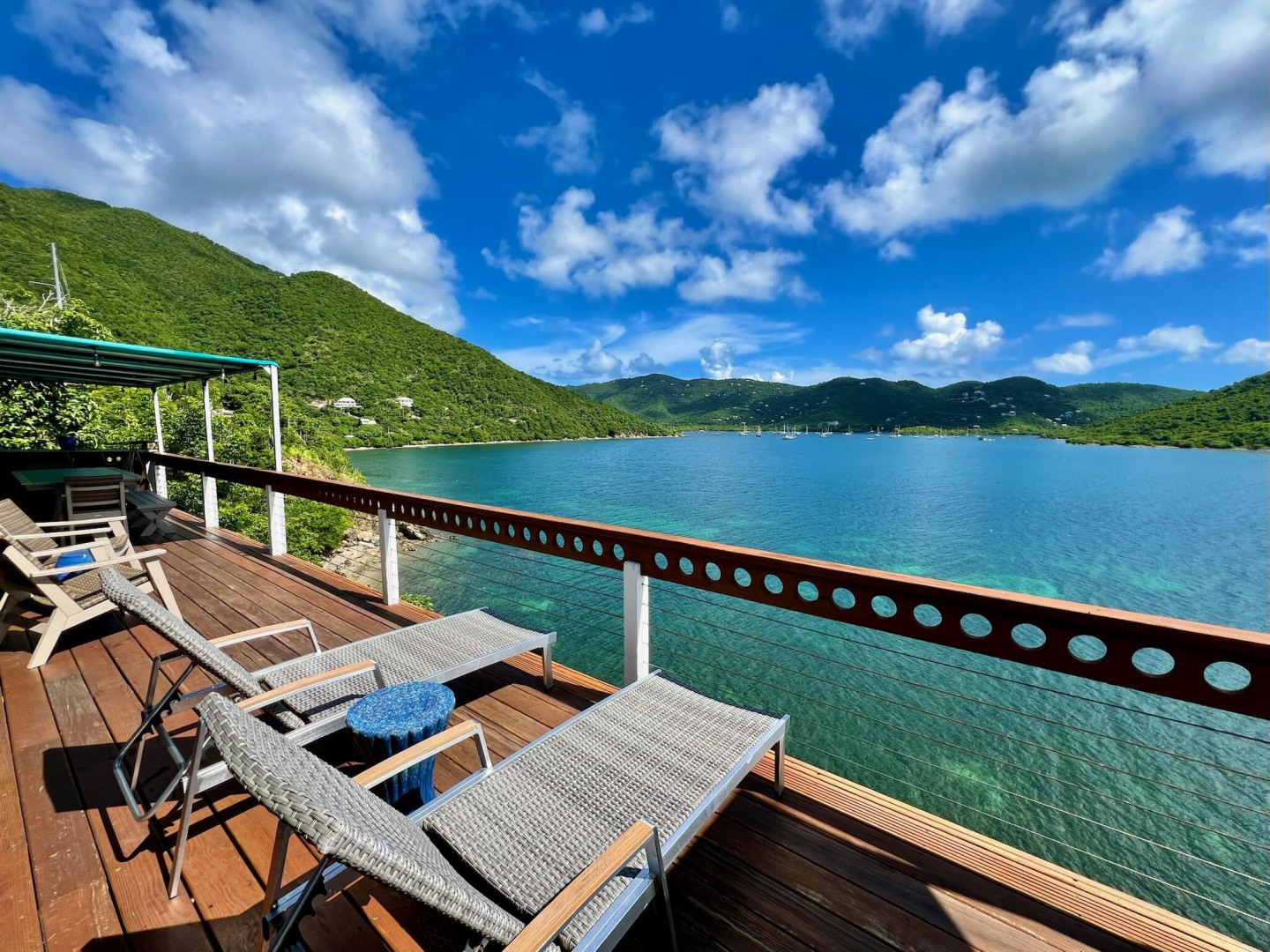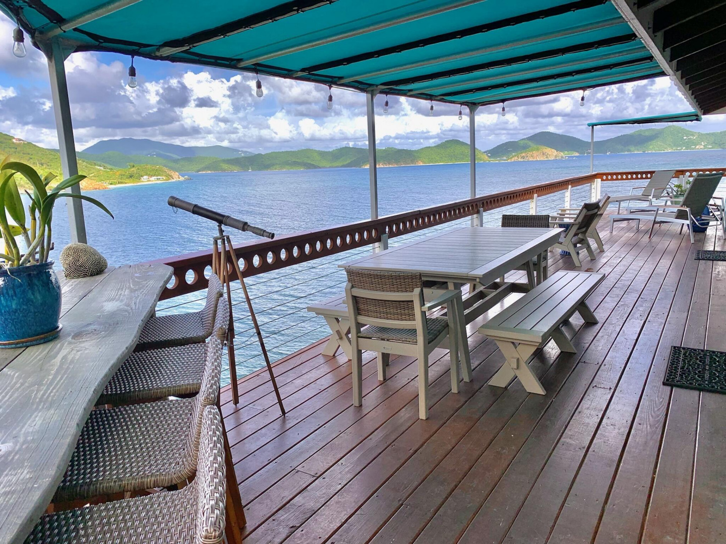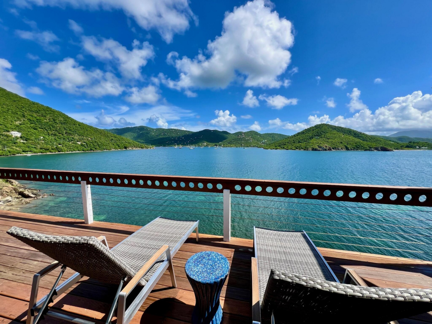 It's hard to put a value on being oceanfront to the clear Caribbean Sea and the enjoyment and peace of 225 degree unobstructed views. To sit above the ocean at Cliffhanger is something that simply has to be seen to be appreciated. Couple that with a stylish and modern designed fully turn-key beach house that is an extremely popular and successful rental and you can stop your search for your affordable dream house on St John. Newly added solar and Tesla battery system, coupled with all of the amenities, you can step in this villa which has been updated with new tile floors accented with driftwood and rattans, shades of blues and soft grays against the clean white quartz countertops. The bright new look and modern furnishings are all center stage for the big blue ocean backdrop.