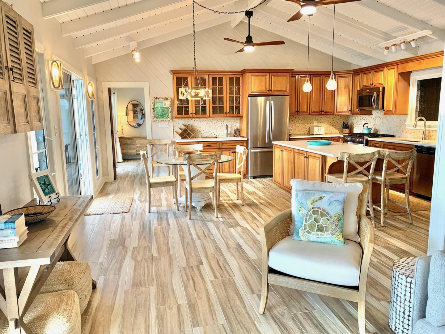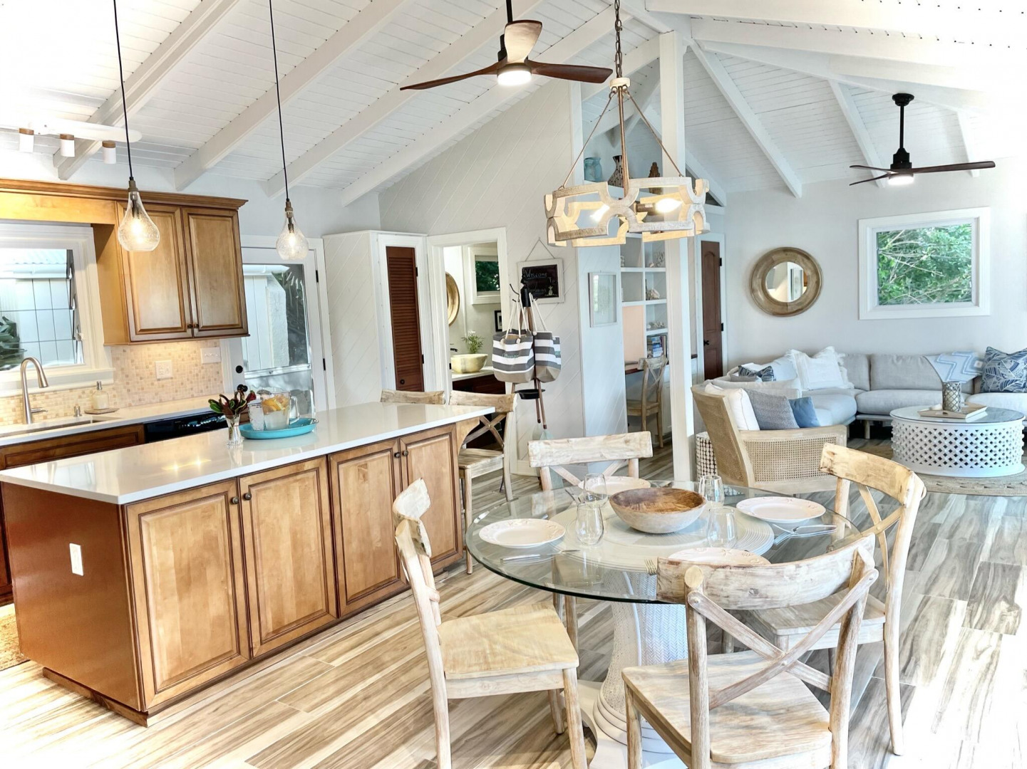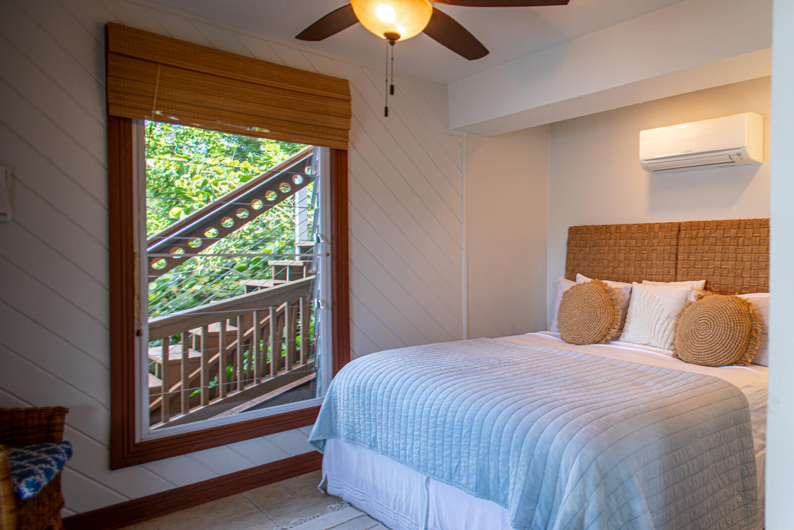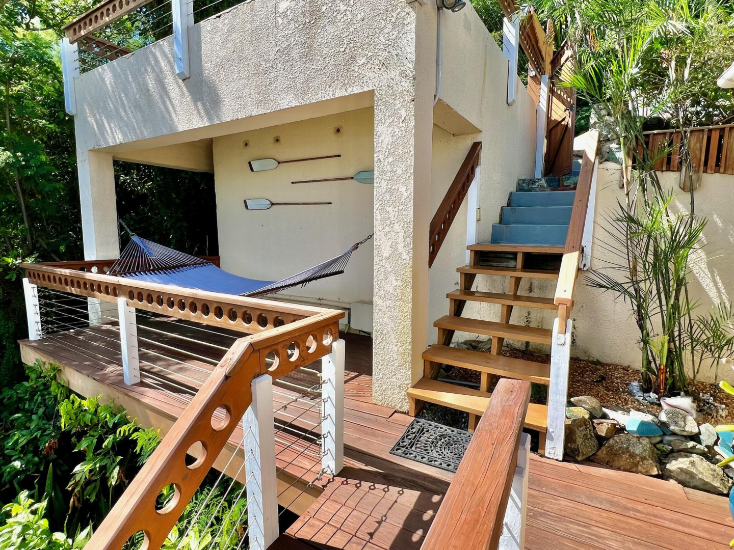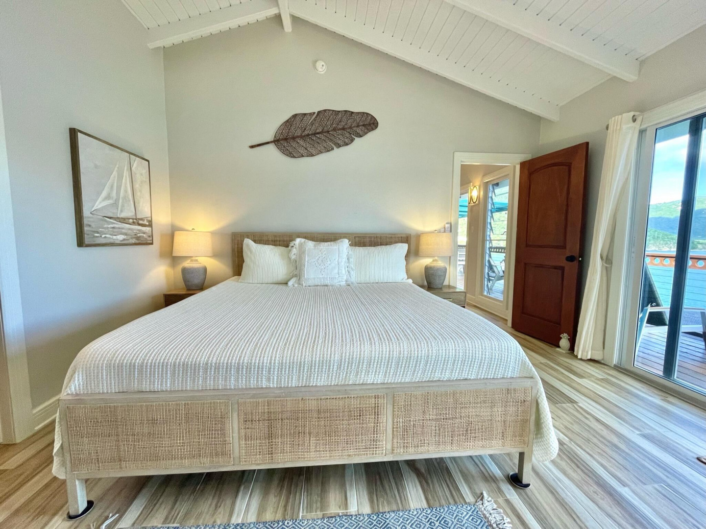 It's hard to put a value on being oceanfront to the clear Caribbean Sea and the enjoyment and peace of 225 degree unobstructed views. To sit above the ocean at Cliffhanger is something that simply has to be seen to be appreciated. Couple that with a stylish and modern designed fully turn-key beach house that is an extremely popular and successful rental and you can stop your search for your affordable dream house on St John. Newly added solar and Tesla battery system, coupled with all of the amenities, you can step in this villa which has been updated with new tile floors accented with driftwood and rattans, shades of blues and soft grays against the clean white quartz countertops. The bright new look and modern furnishings are all center stage for the big blue ocean backdrop.