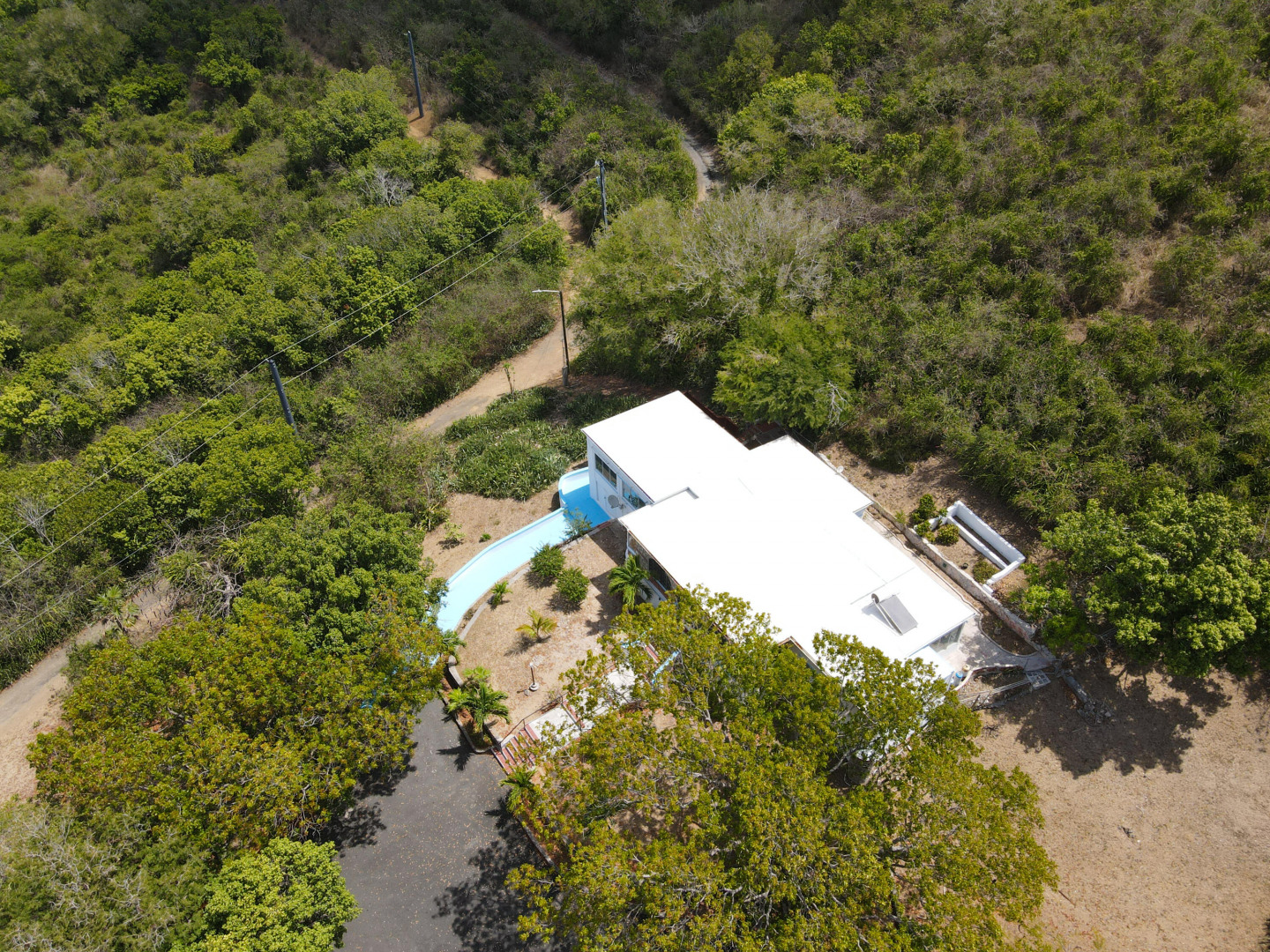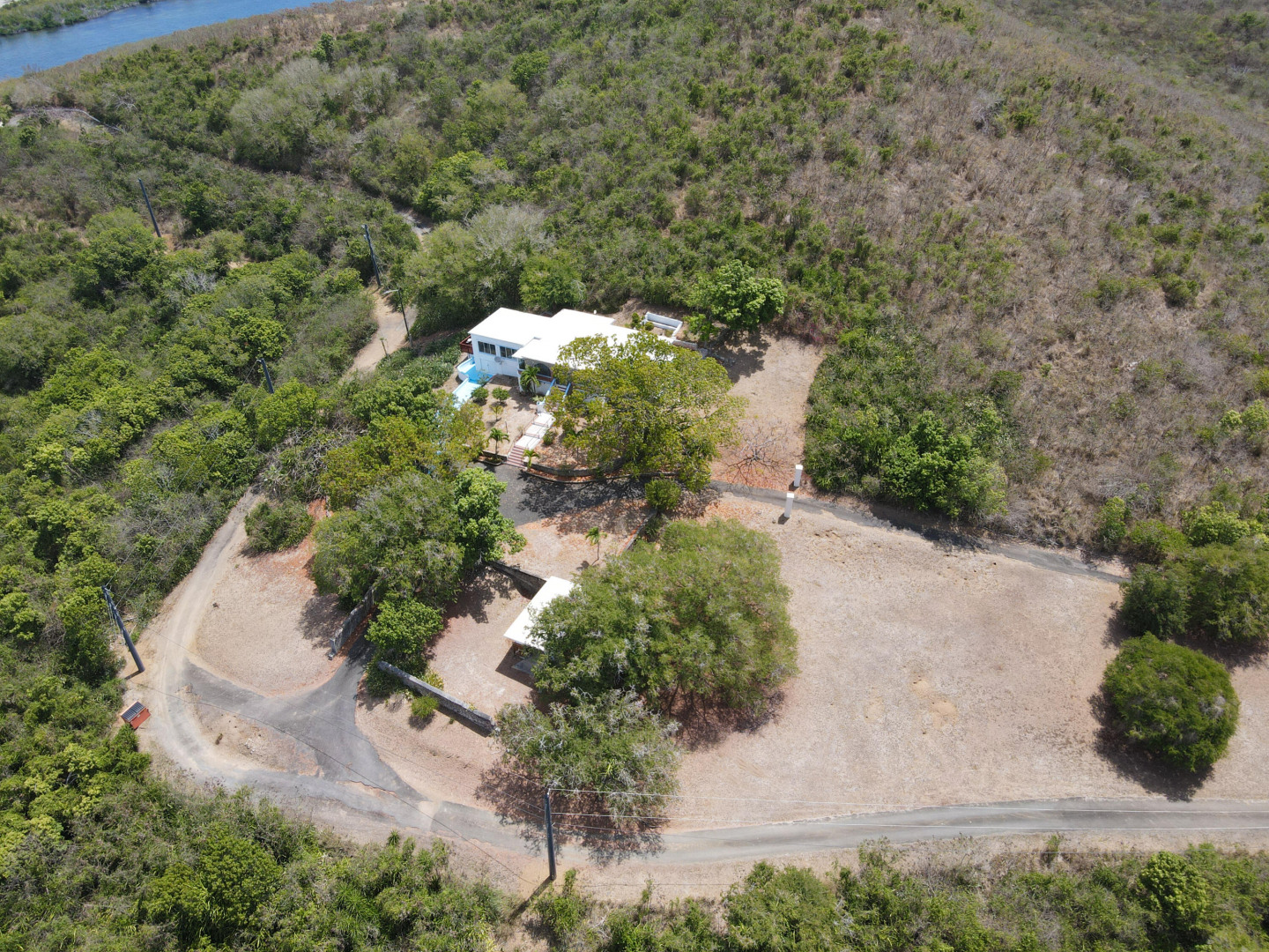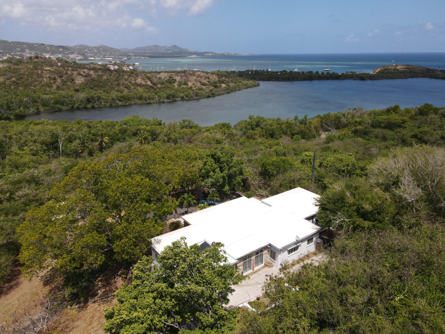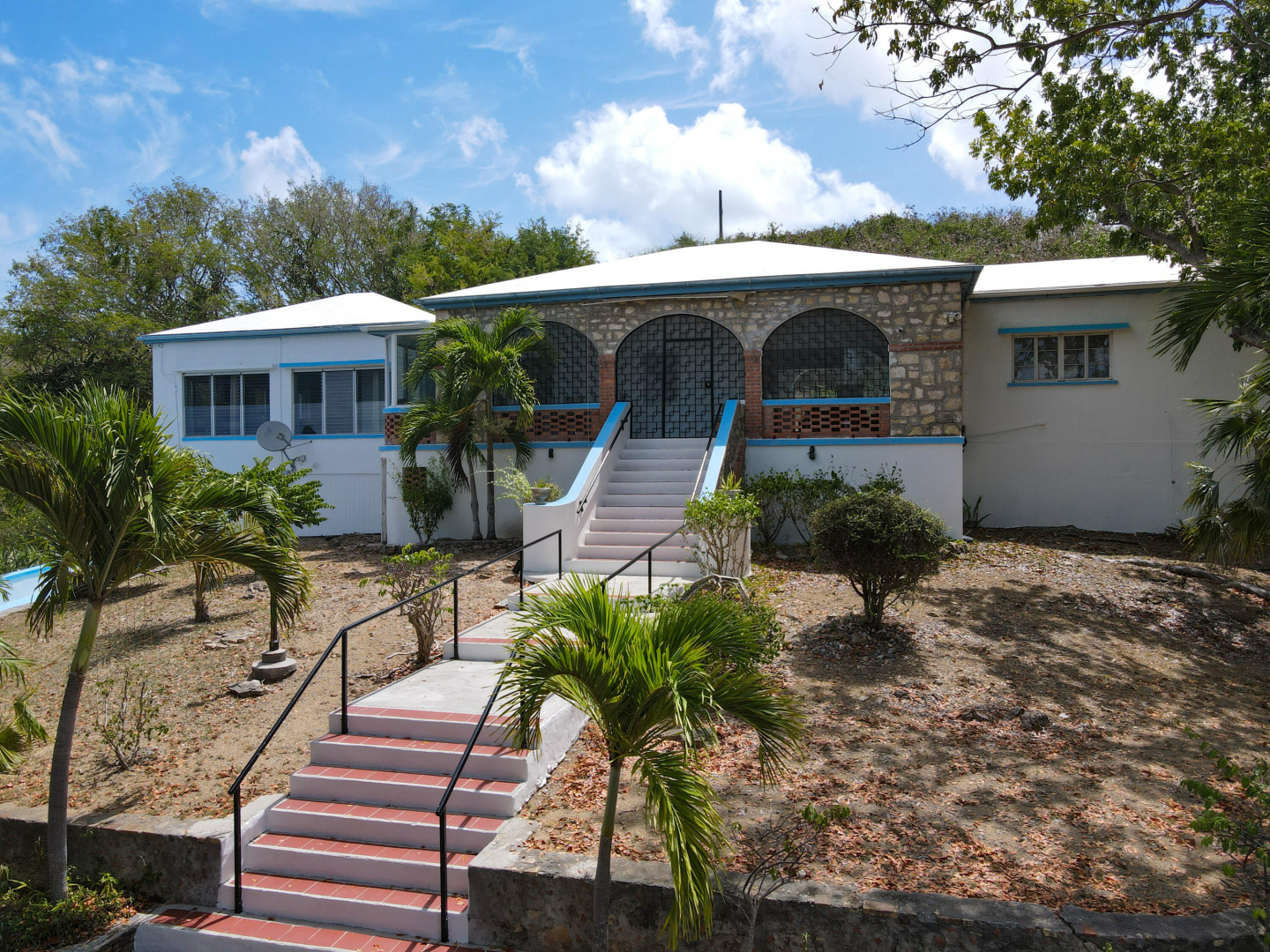 This is a very special property in a spectacular location a stone's throw from downtown Christiansted. This home and surrounding acreage feels like a completely private pastoral estate. Just under 3 acres of rolling land with gorgeous views of the north shore and Christiansted town. There are numerous tamarind and papaya trees on the property making this a tree and fruit lovers paradise. The home has three bedrooms and two baths, beautiful ruins and an accessory building ideal for a workshop or garage. Over 1,500 feet of outdoor space and a screened in patio that runs the entire front of the house. An amazing house for indoor outdoor living and entertaining. Circular driveway, loads of parking. Ramp from house to parking makes the home handicap accessible.