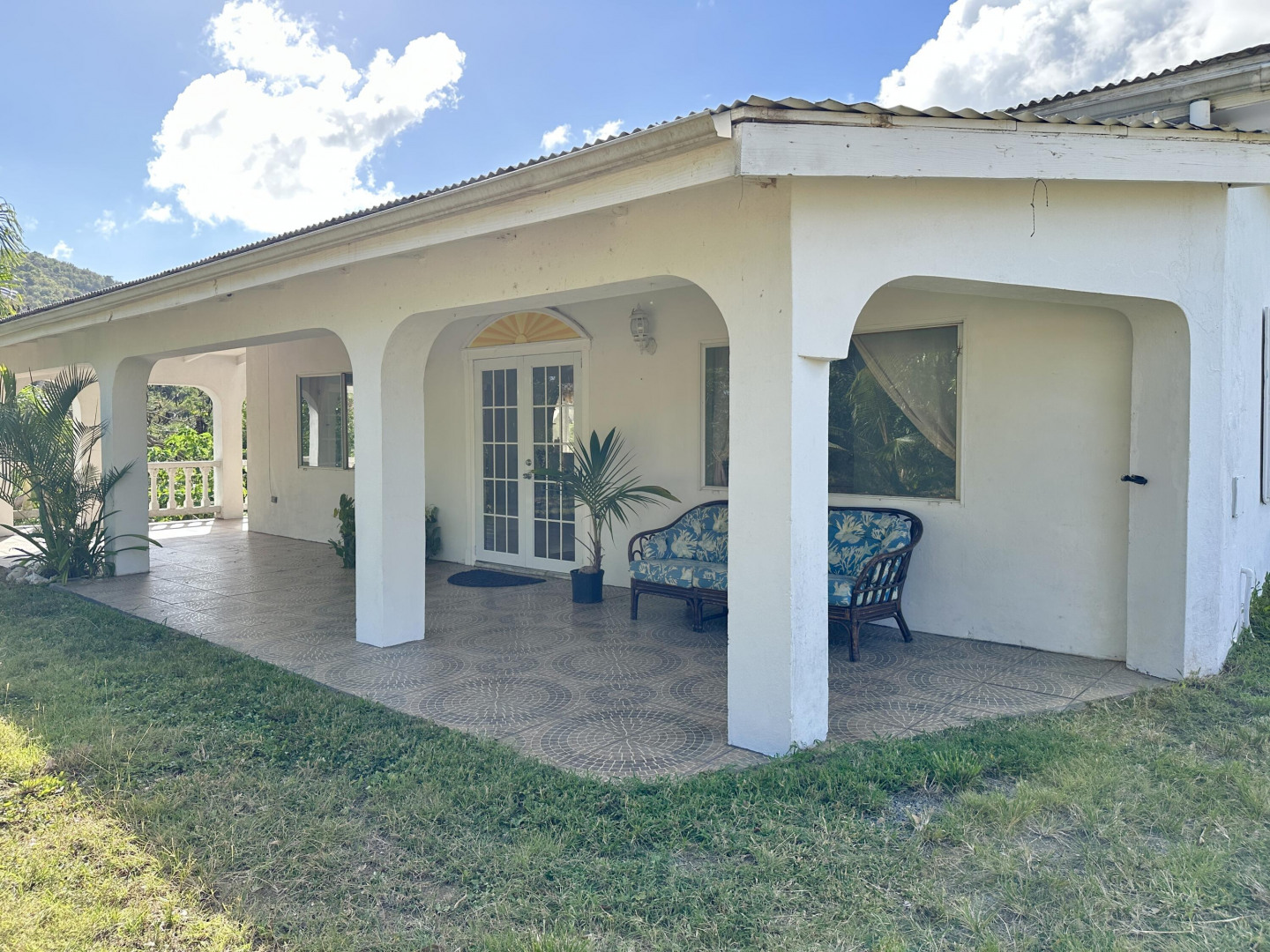 Enjoy the serenity of outdoor living from the wonderful covered porch and balcony of this solid, three bedroom, two bath home. This home sits on a full acre of land located on a nice hilltop at the edge of St. Croix's lush rainforest, with a peek-a-boo sea view from the balcony. Pick your own fruit from the mango, banana, almond, coconut palm, papaya and noni already on the property, with plenty space to plant your other favorites. Large, open rooms with vaulted ceilings welcome the island breezes. The kitchen to dining area pass through and the large covered porch off the dining room make it easy to dine al fresco. Unfinished open space on the lower level is plumbed with a toilet, making it flexible to be used as a workshop, storage, or finished as an apartment. Roof just painted.