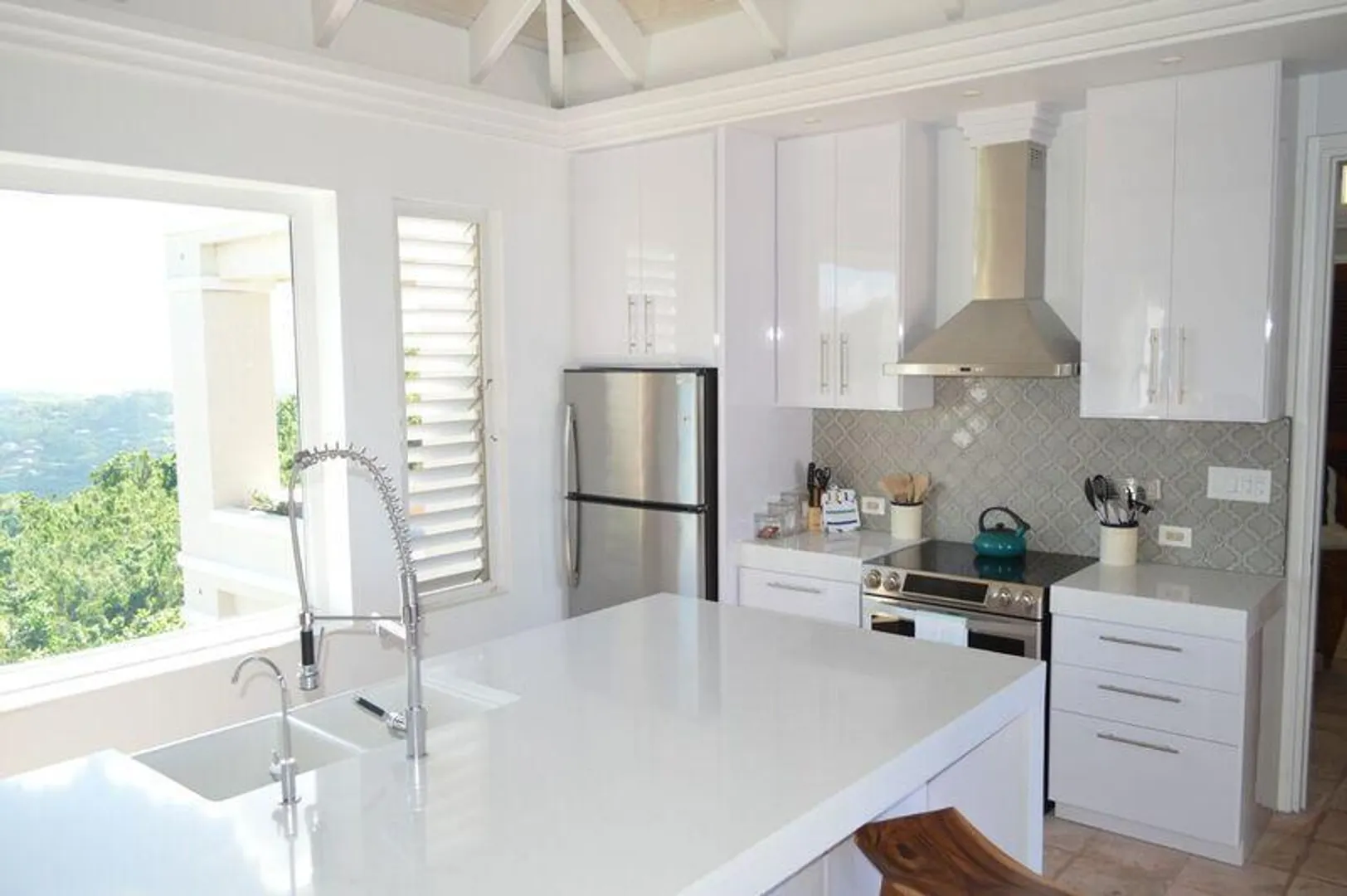 Nestled on a sunny hillside and surrounded by tropical foliage, Serenity enjoys 360 Panoramic views of the Caribbean and distant islands. This 4 Bedroom 4 1/2 bath ultra comfortable open-floor plan is ready for you to rent. Over two acres of land, infinity-edge pool, and 20K generator is all yours.