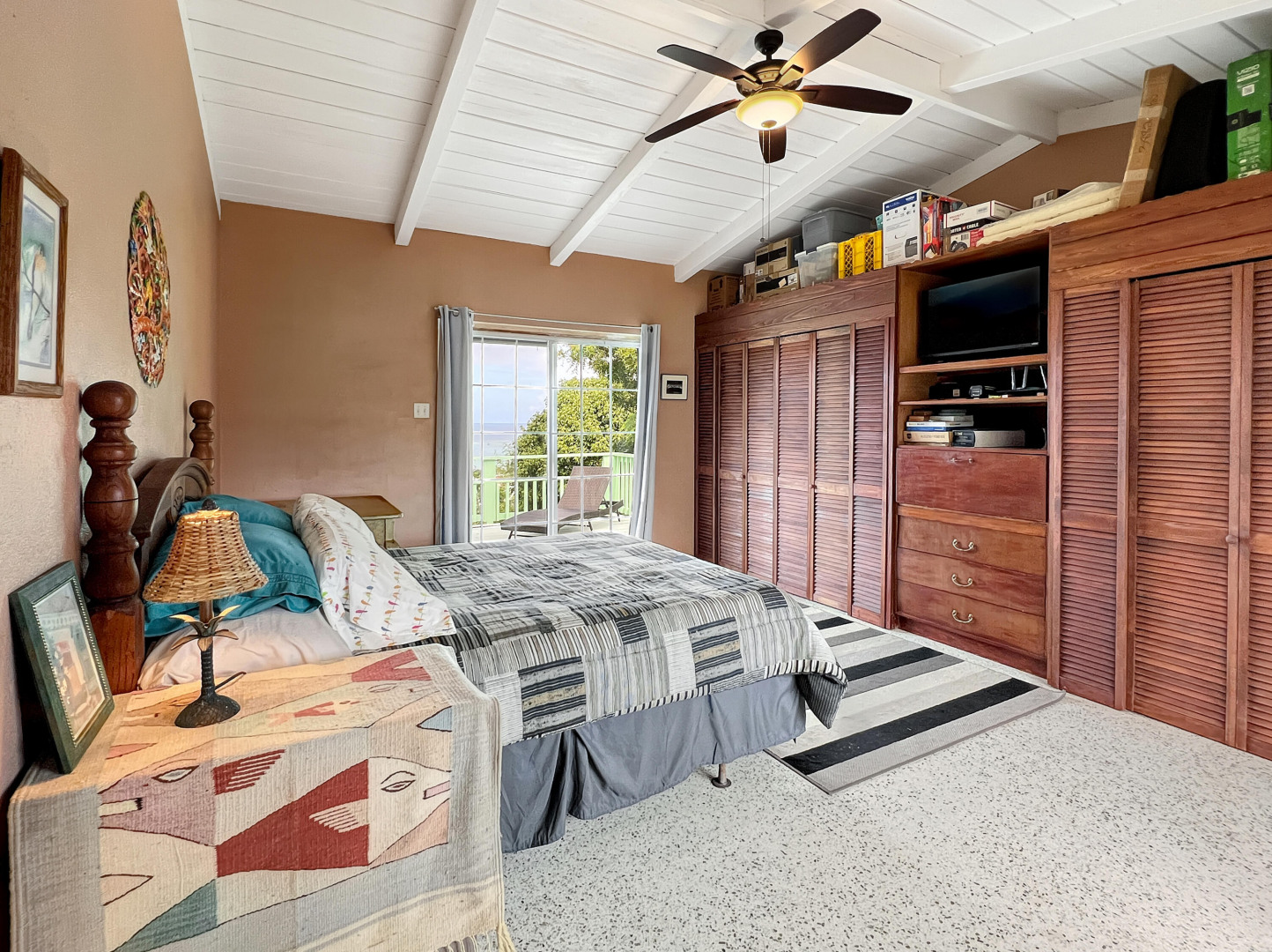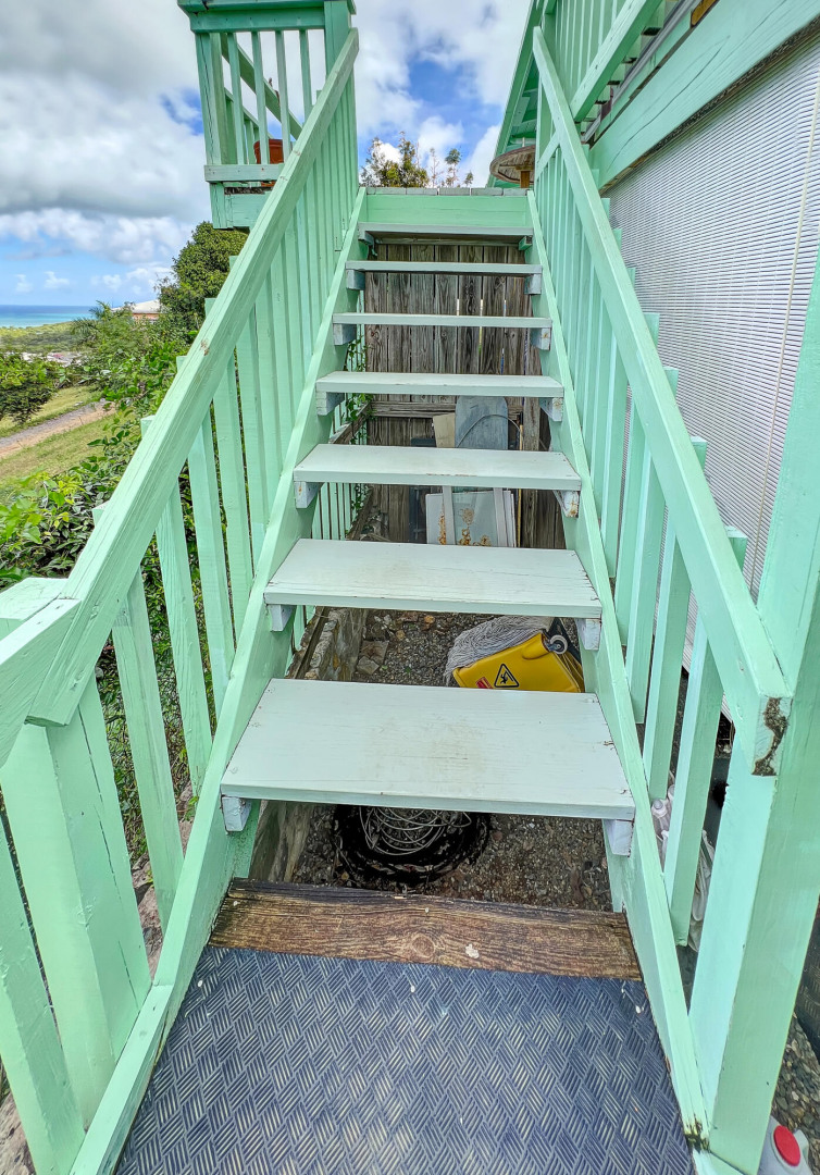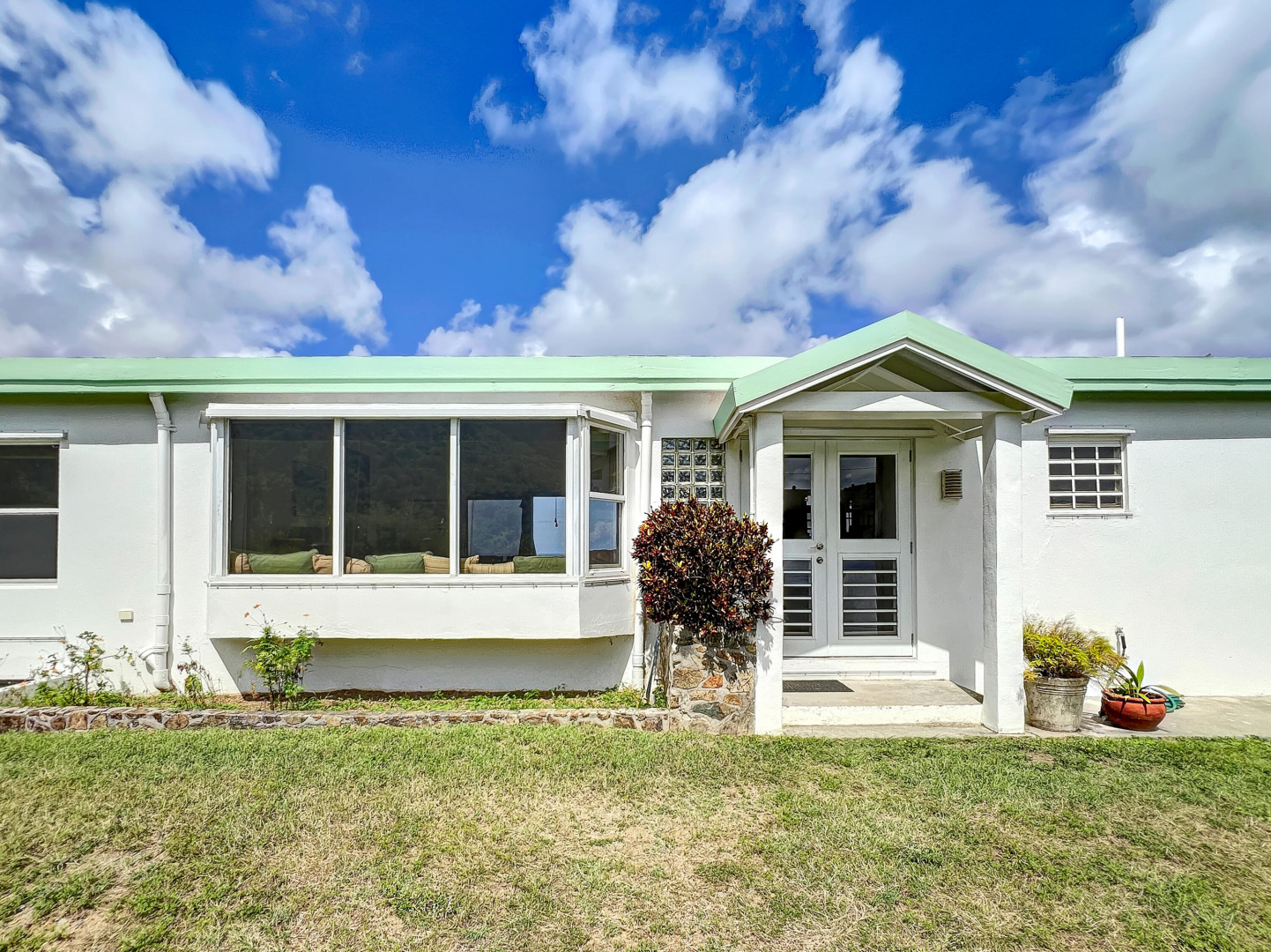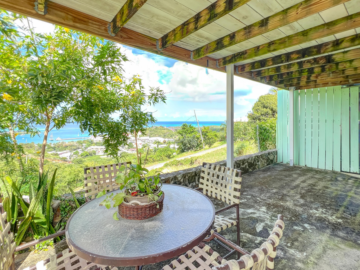 SPECTACULAR VIEW! You'll see the sea, harbor, Gallows Bay, & across the sea to the neighboring Islands. The living room & kitchen are in the middle of the house, with a bedroom & bathroom on either side, giving privacy to all. There's an additional room used as an office space or den, plus a little extra room. The wide deck extends the entire length of the house! The lovely breezes have kept this owner cool, so there is no AC upstairs. Downstairs is a cozy 1 bedroom apartment, also with a great view! With beautiful terrazzo floors, cathedral ceiling, 2 hurricane doors, lots of storage, stainless steel appliances, bay window seats, & comfortably sized rooms, this is a treasure! See the list of improvements, room dimensions & layout in the Documents Section. This was Captain Blair's house!