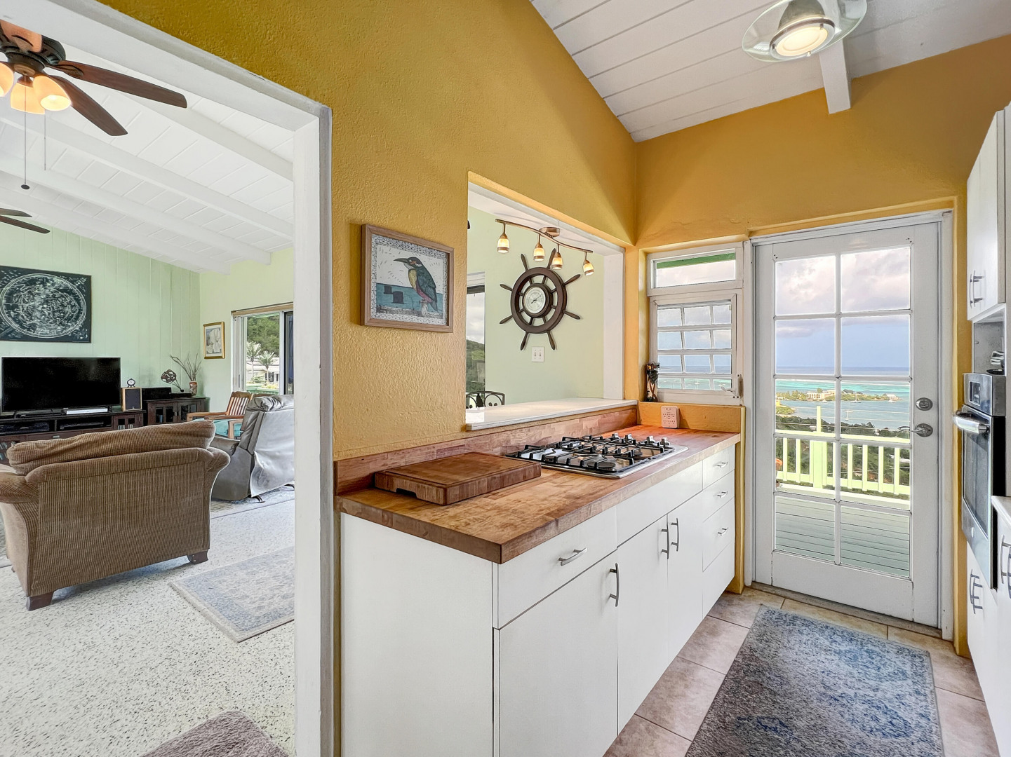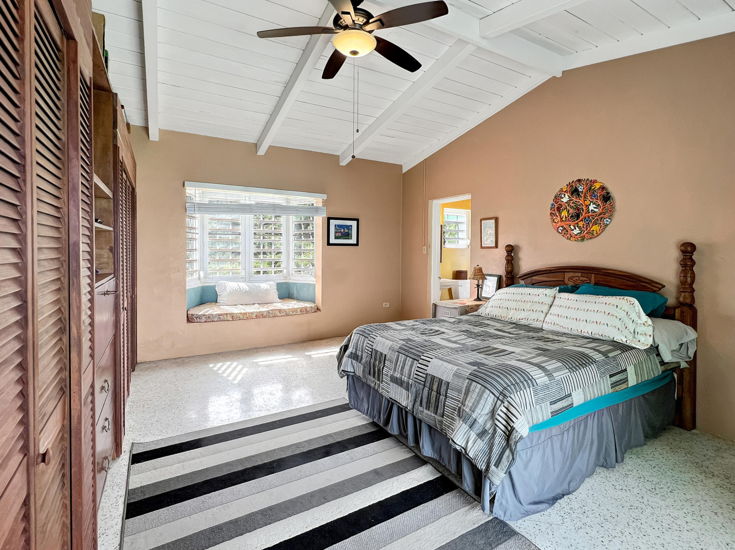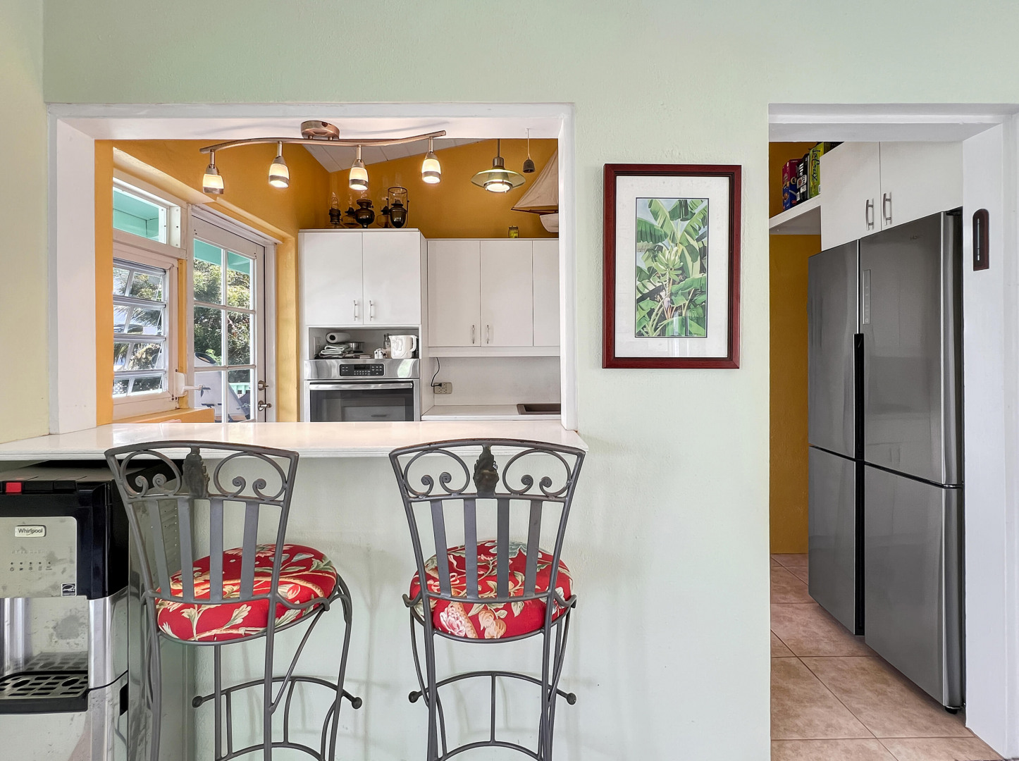 SPECTACULAR VIEW! You'll see the sea, harbor, Gallows Bay, & across the sea to the neighboring Islands. The living room & kitchen are in the middle of the house, with a bedroom & bathroom on either side, giving privacy to all. There's an additional room used as an office space or den, plus a little extra room. The wide deck extends the entire length of the house! The lovely breezes have kept this owner cool, so there is no AC upstairs. Downstairs is a cozy 1 bedroom apartment, also with a great view! With beautiful terrazzo floors, cathedral ceiling, 2 hurricane doors, lots of storage, stainless steel appliances, bay window seats, & comfortably sized rooms, this is a treasure! See the list of improvements, room dimensions & layout in the Documents Section. This was Captain Blair's house!