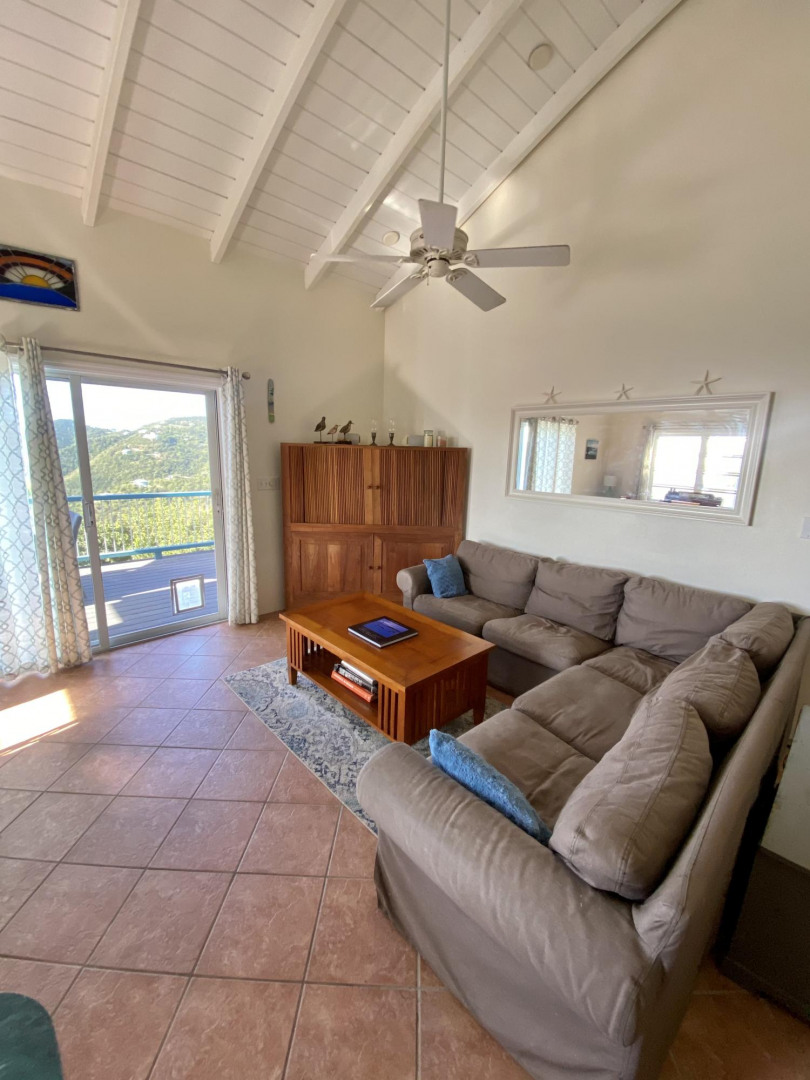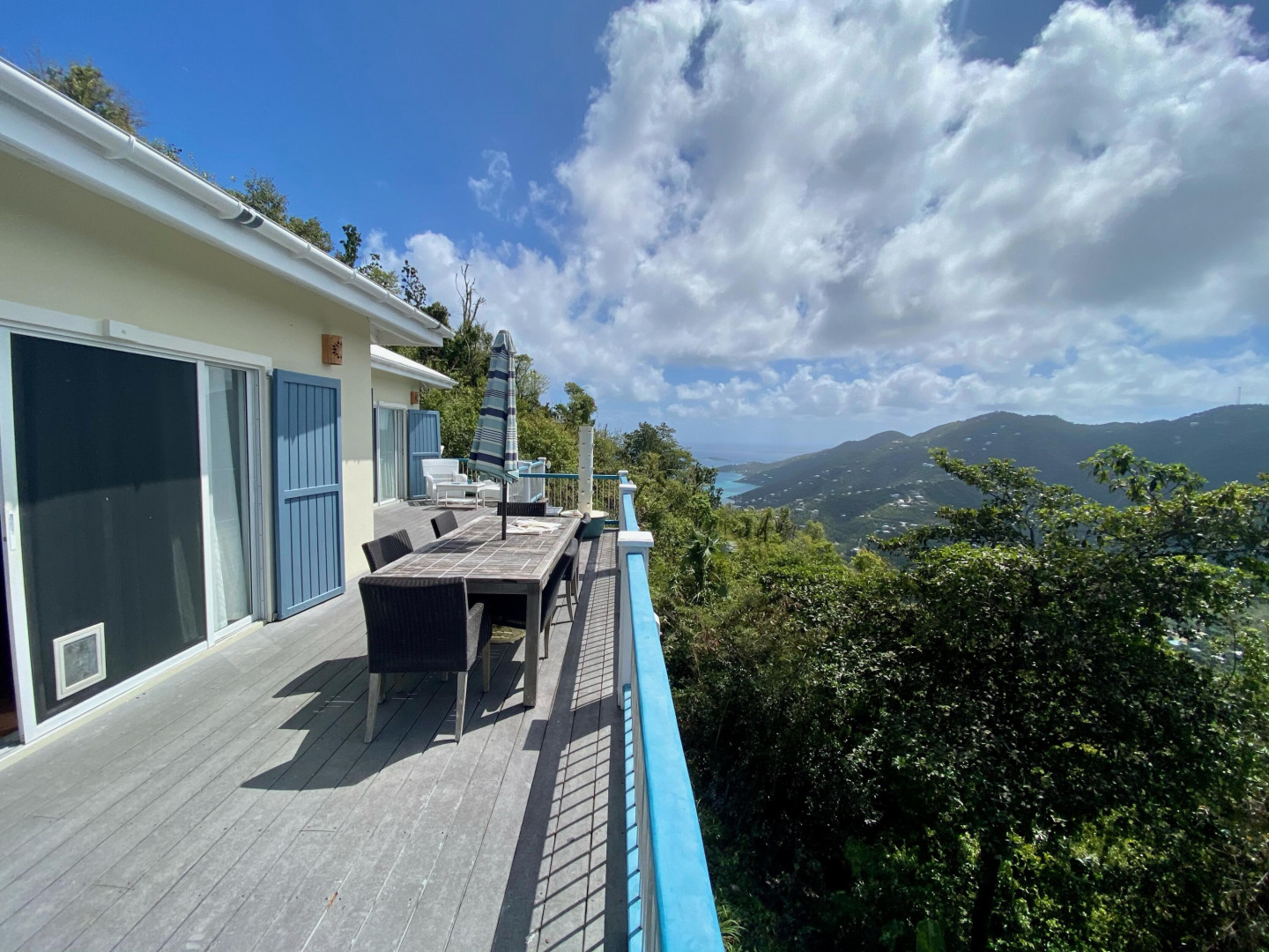 Just a 5 minute drive to Francis & Maho Bay beaches, Paradise on the Rocks rests high on the hilltop of desirable Ajax Peak. Beautiful Bordeaux Mountain and valley views from the main living area and the generous deck invite expansive panoramic sights including east/sunrise, Coral Bay harbor, and the valley across to the west/sunset. This well-built masonry home consists of a 2 units, offering a 2 bedroom, 2 bath main level with a 1 bedroom, 1 bath apartment on the lower level, both with private spacious decks and plenty of storage space. Resting on a .62 acre parcel, this home has an easy, flat driveway with ample parking. This income producing property offers flexibility of long or short term rentals, or a space for visiting family and friends.