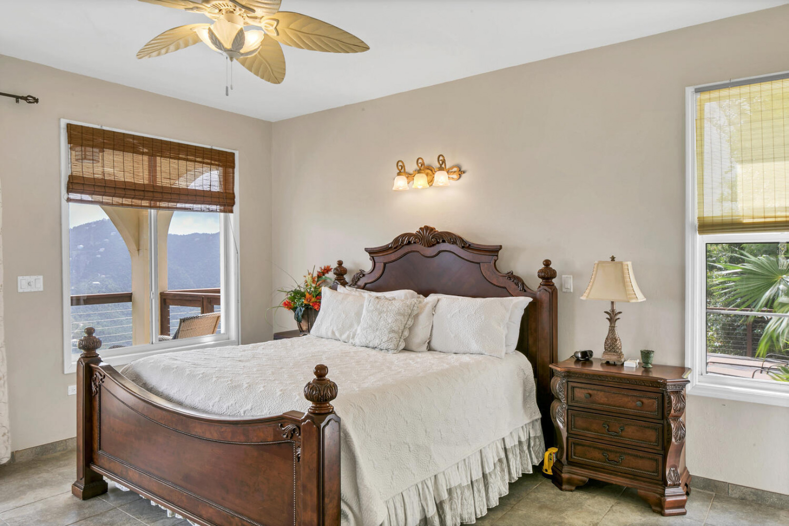 Caribbean Jewel is exactly that...your ideal little Caribbean hideaway! Bright and light, open concept layout highlights the expansive views over Coral Bay Harbor and beyond. Masonry construction with quality finishes this two-bedroom, two and a half bath is the ideal short term rental property. The Ajax Peak location affords privacy yet is a midway point between Coral Bay and Cruz Bay with easy access to the North Shore Beaches. Short term rentals to be honored.