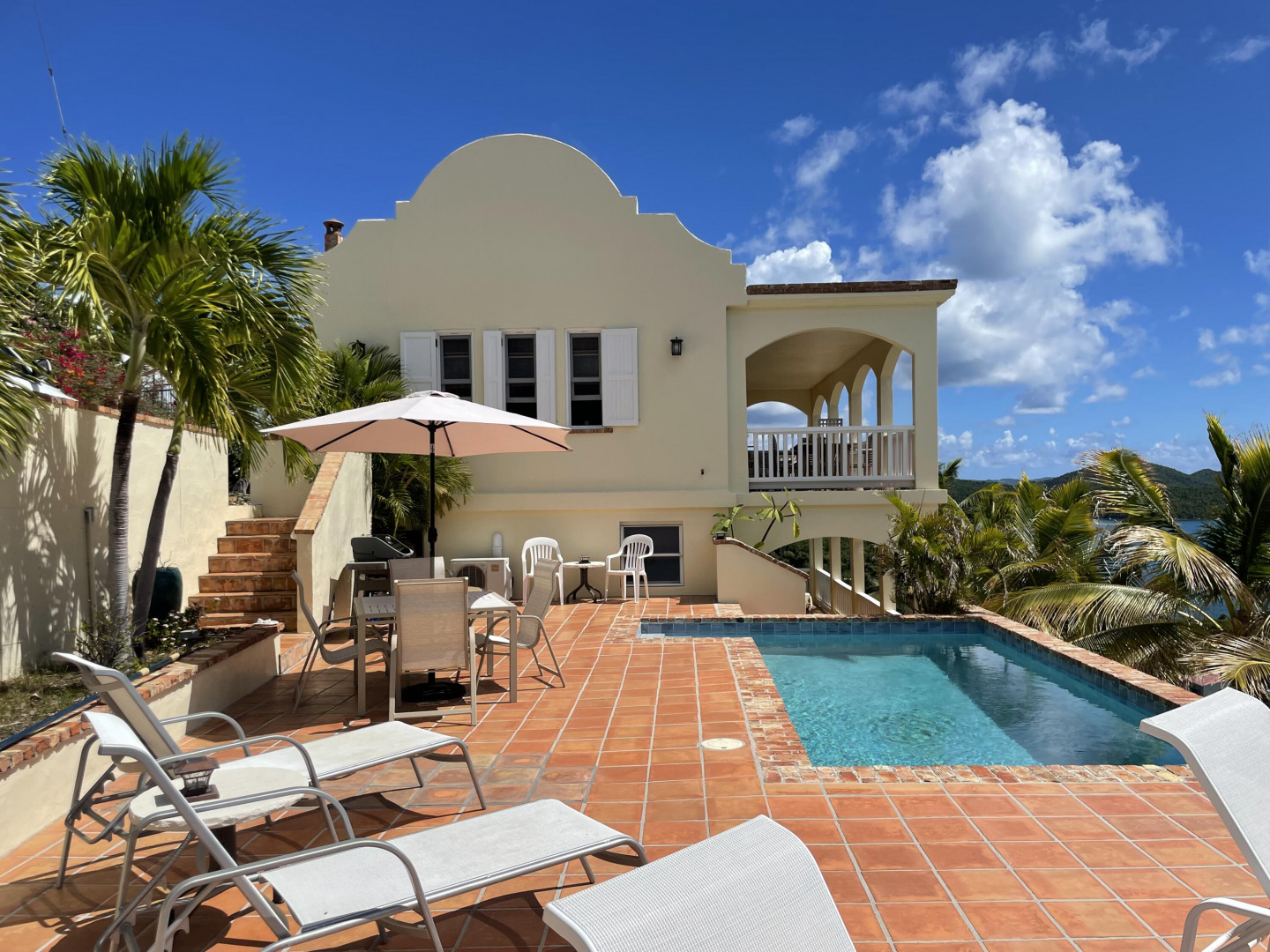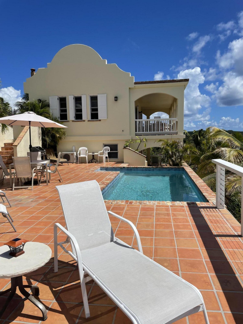 Adeste, an uniquely appointed West Indian Caribbean decor villa overlooking the VI National Park in Coral Bay. Comfortable, elegant and fit for a couple, family or group of friends looking for spectacular views. Enjoy the private pool under a sky full of stars or by day swimming in a pool that encaptures the beautiful vistas of Coral Bay Harbor and the serene waters to the east. The wrap around covered verandas afford many different view perspectives from quaint seating areas. A great short-term rental history. Lower level is a spacious separate owner's studio apartment with an exterior guest bedroom. This property is in an immaculately maintained and cared for. Views, excellent breezes, a great short term rental history, masonry construction Adeste is a must see!