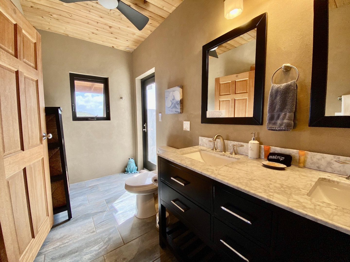 Located in the Sea Grape Hill, this recently built property is extreme quality and boast impressive rental performance. Aptly named Huis Aan Zee (House by the Sea), there are sweeping views of Coral Bay, the British Virgin Islands, and beyond. Interior finishes all higher-end. There is flexibility and room to expand, or add an additional building pod if desired. Currently, this house can comfortably sleep 4 with the use of the custom-made Murphy bed in the upper unit, which also enjoys its own full size bathroom. With cooling breezes, and stunning views, you can comfortably spend your days lounging on the expansive decks, and relaxing in the saltwater pool.