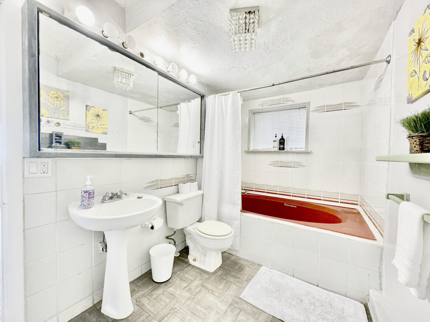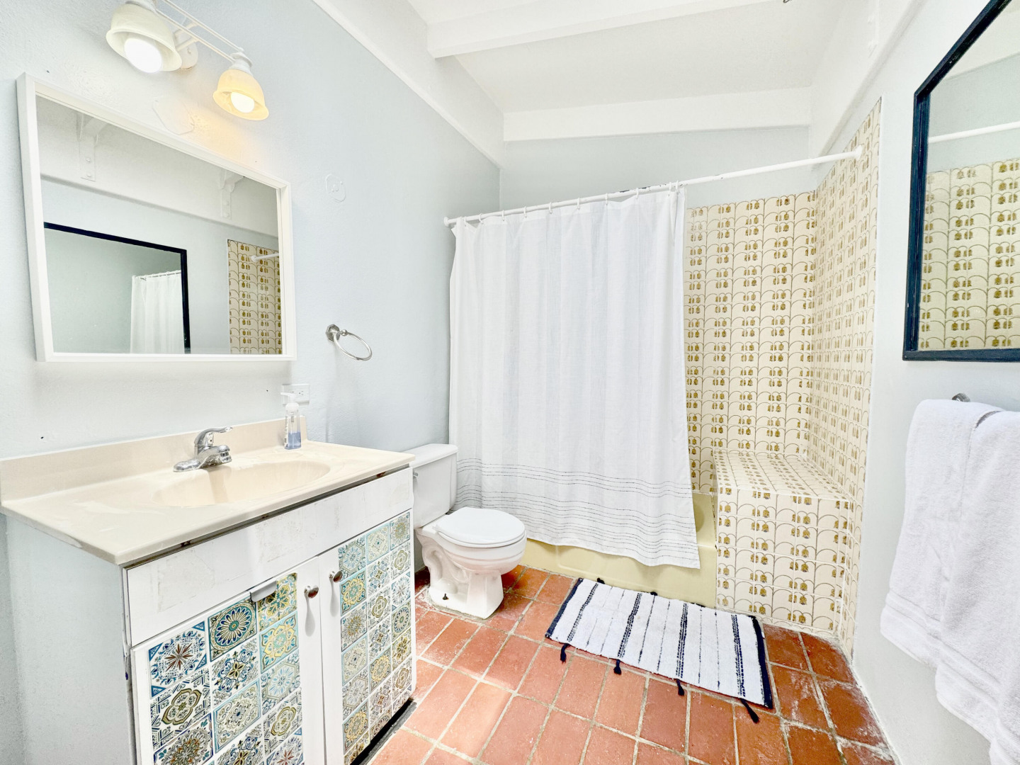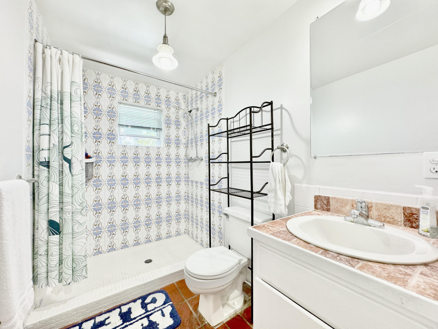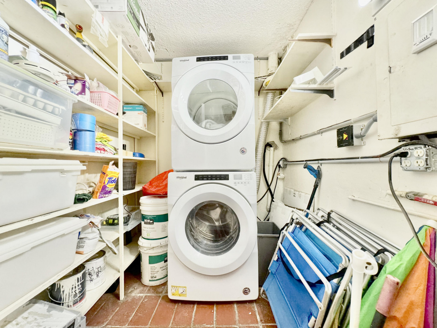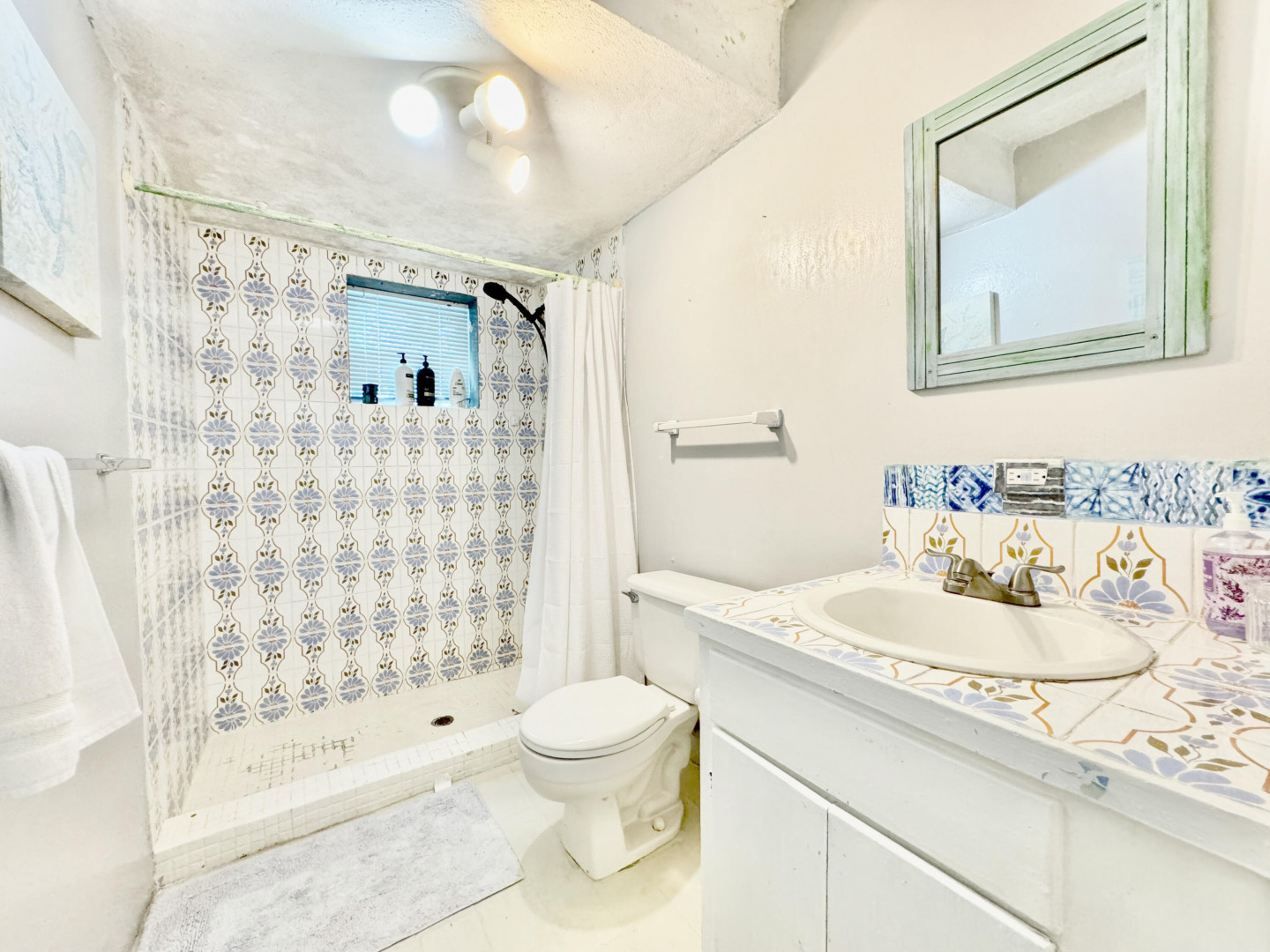 Enjoy breathtaking panoramic views of the Atlantic Ocean and Magen's Bay Beach from this spacious concrete home, featuring a 3-bedroom main residence and a matching 3-bedroom apartment below--ideal for extended family or rental income. The upper level boasts vaulted ceilings and a bright, open-concept living and dining area, while the lower apartment offers the same spacious layout with a newly remodeled kitchen, modern appliances, and a brand-new porch perfect for enjoying the Caribbean breeze. Thoughtfully updated with impact-resistant windows throughout, a freshly sealed cistern and roof, and new appliances on both levels. Set on beautifully landscaped grounds, the property also features a lush garden with tropical fruit trees, including sugar apples, bananas, mangos, and papayas