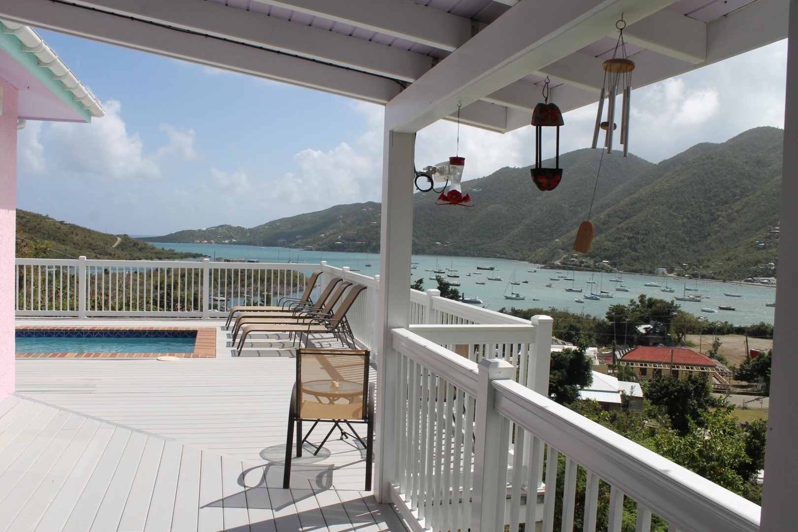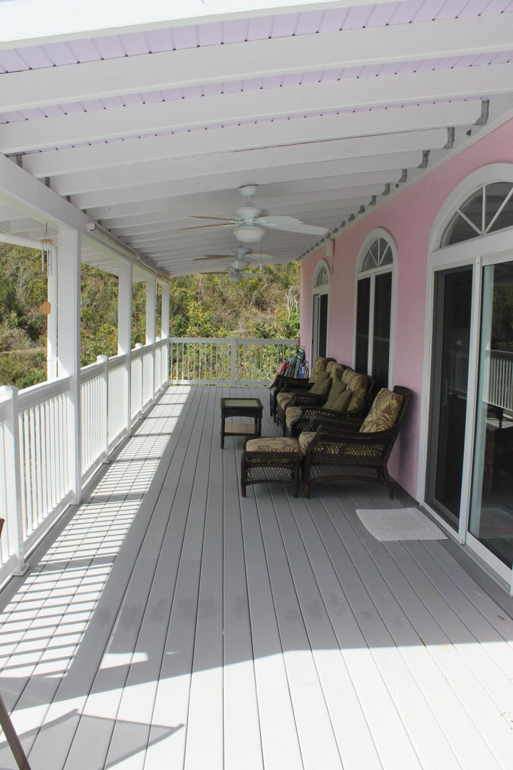 Villa Jumbie' is an immaculately maintained 2 Bed, 2.5 Bath custom-built home overlooking Coral Bay. This home enjoys a very private location with vacant adjoining lots and unrestricted views Coral Bay, the Bordeaux Valley and of the boats moored in Coral Harbor. This beautifully furnished home is fully air conditioned with individually controlled split systems and TV connected to Dish Network in the bedrooms and Great Room. The large, covered veranda deck is tastefully furnished and adjoins the open sun deck featuring a powder room bath, BBQ grill and storage closet all of which surrounds the 8' x 16' 'salt water' pool. The gourmet kitchen features granite counters and a convenient center island breakfast bar together with stainless steel appliances. Energy efficiency is optimized by the