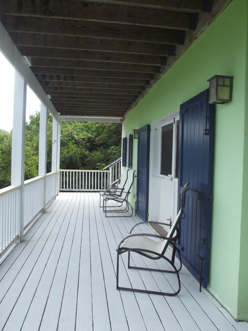 Perched high on a mountain ridge, about 1,000 feet above sea level, this solid masonry, fully shuttered Caribbean cottage features banana trees, dramatic views of Sir Francis Drake Channel, the British Virgin Islands, St. John's East End, Coral Bayand National Park land and waters. The short distance to North Shore beaches, Coral Bay and Cruz Baymakes this an ideal location with easy access. Facing in to the prevailing south-easterly tradewinds enjoy cooling breezes year round while lounging on the spacious decks. Upper level has a full bathroom with an outdoor shower and full kitchen, lower level bedroom has a full bathroom. The half acre offers plenty of room to build a pool and additional home. Buyer to pay 1/2 of Doc. Stamps.