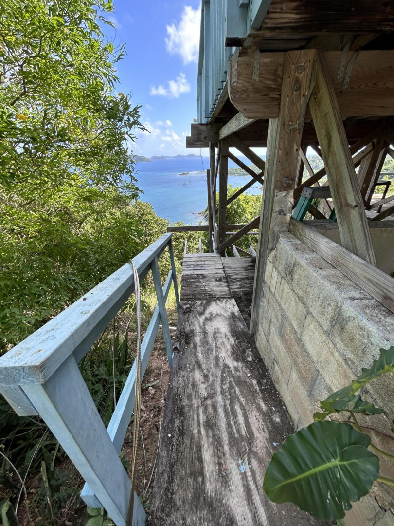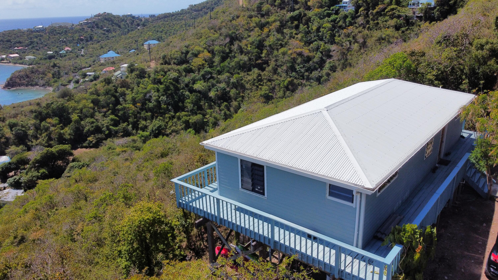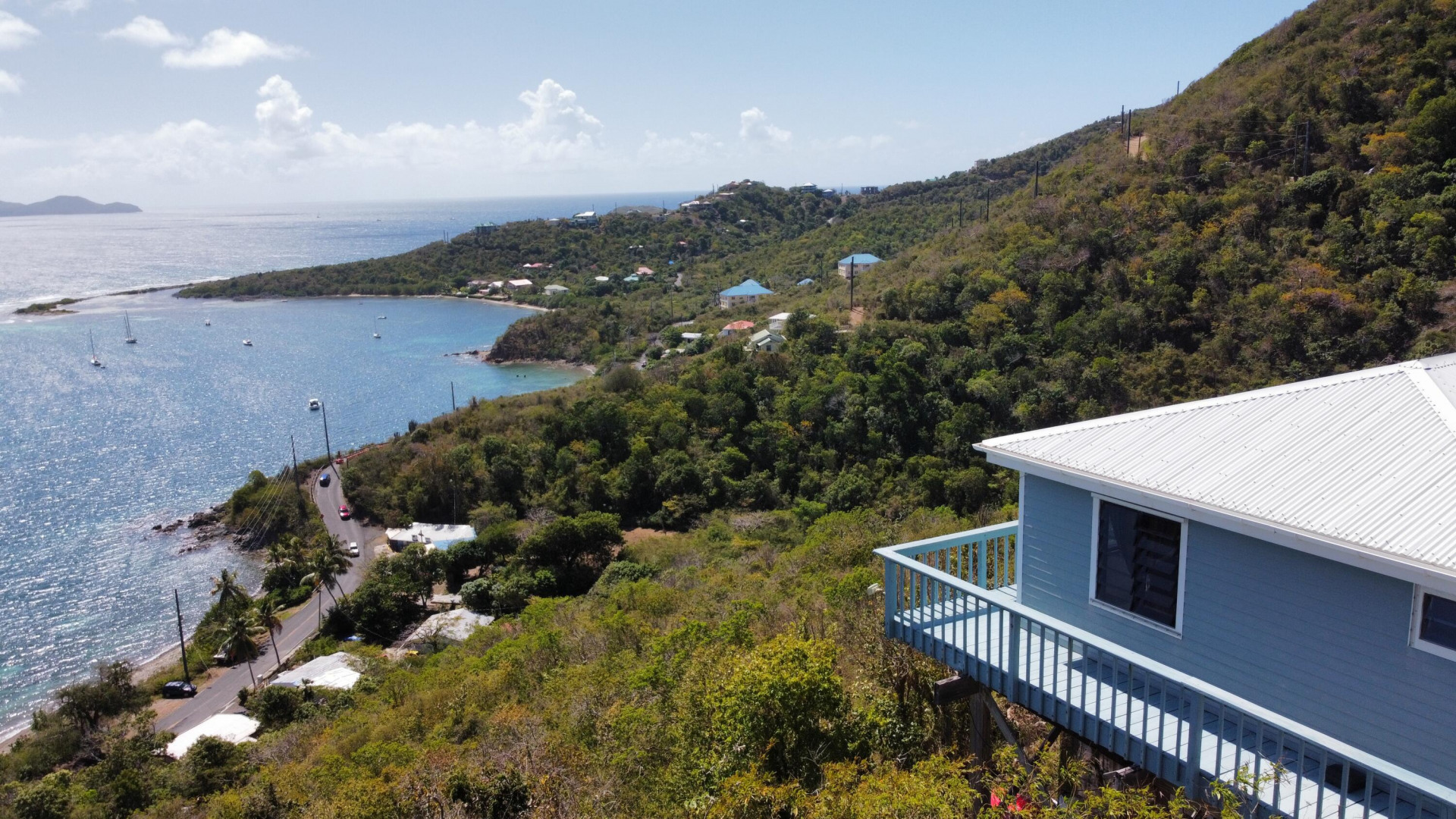 Enjoy breezes and sunrises year round in this charming neighborhood. This quaint Caribbean cottage has stunning views of the East End of St. John, Johnsons Reef, Caribbean Ocean, and the BVI. This property is a great starter home with two bedrooms and one bath. The existing footprint of the structure and ease of access lends itself to a multitude of future build options.
