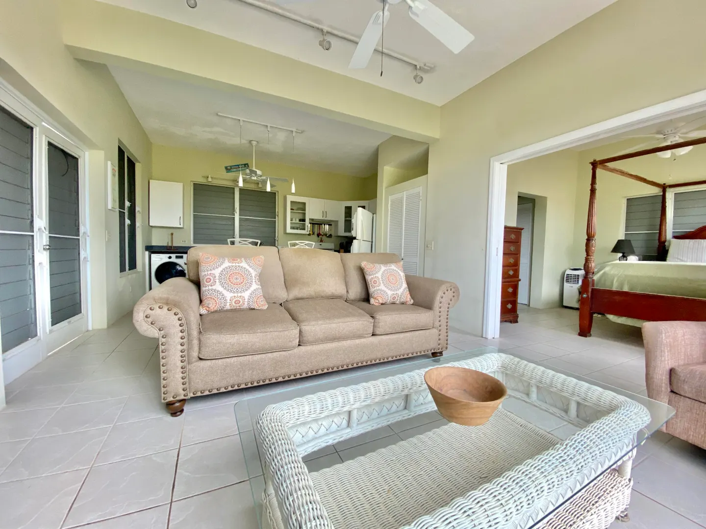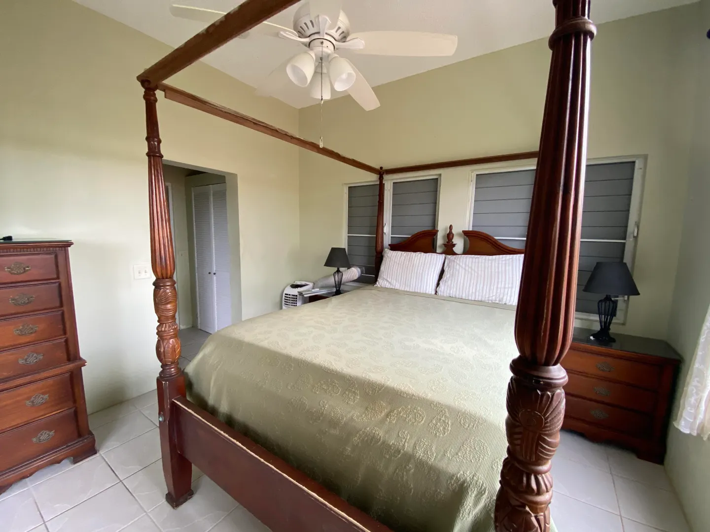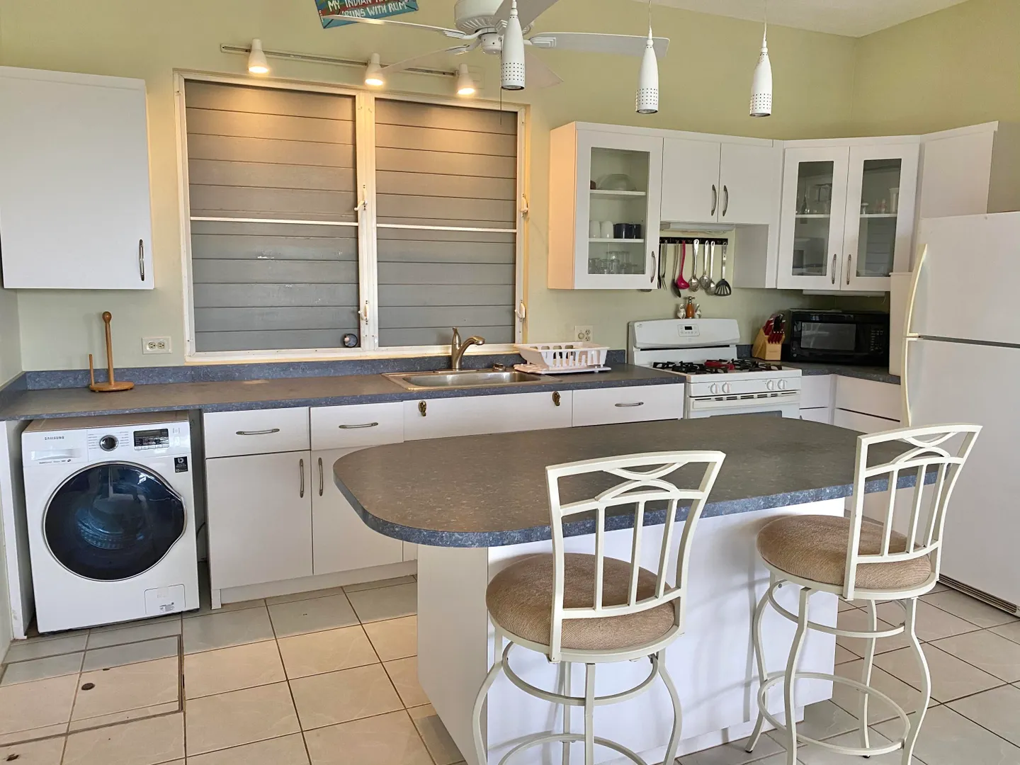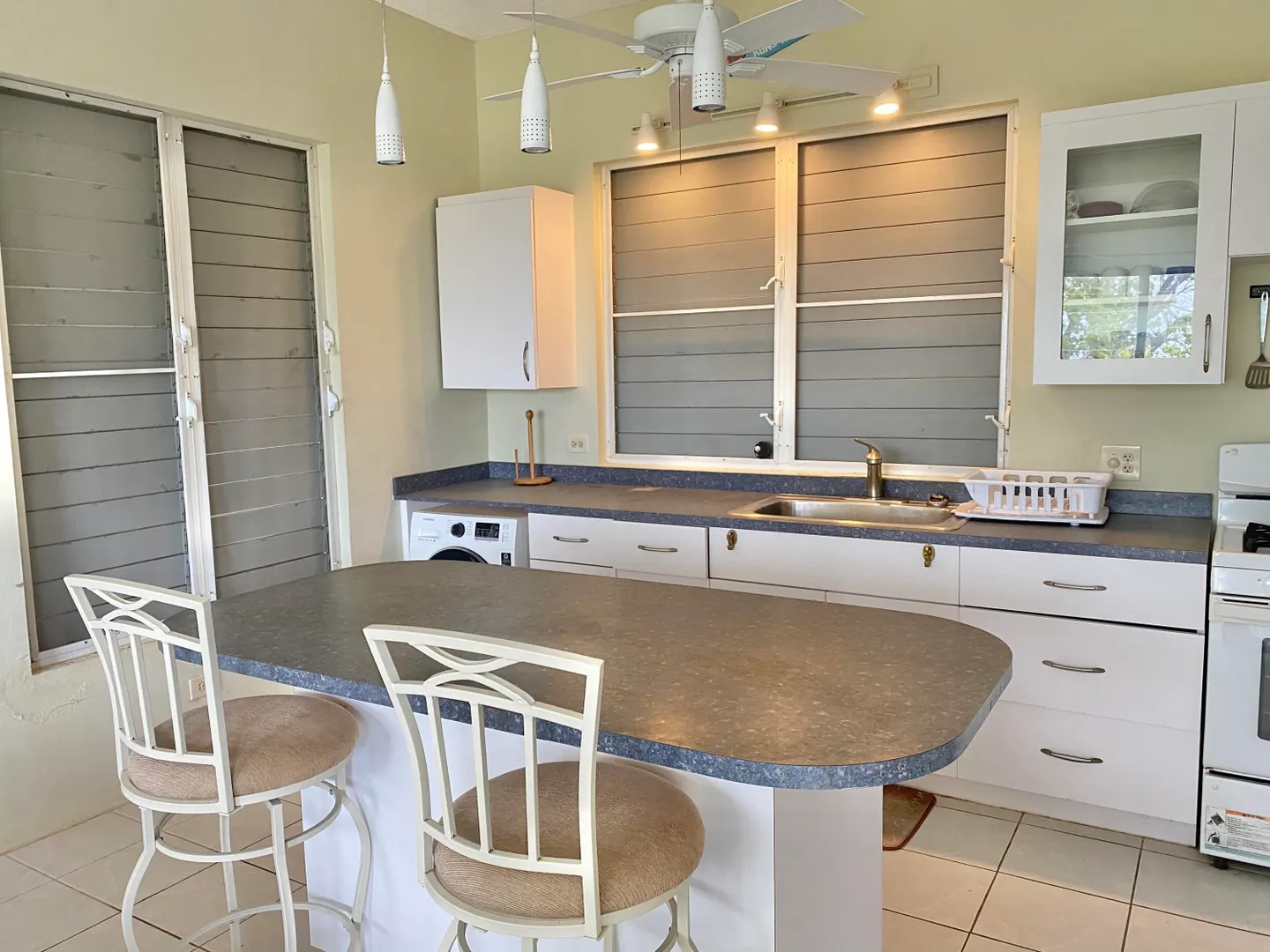This spacious free standing cottage faces east so you will enjoy delicious breezes and nice sea views in this quiet area on the east end of St Croix. The living andkitchen area are open, and the gallery is very spacious; plenty of room for you and your friends to dine alfresco there! generator, washer and dryer, and AC make for a comfortable place to call home!