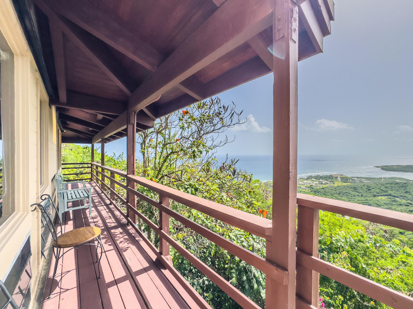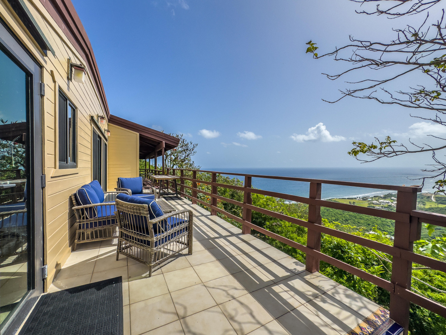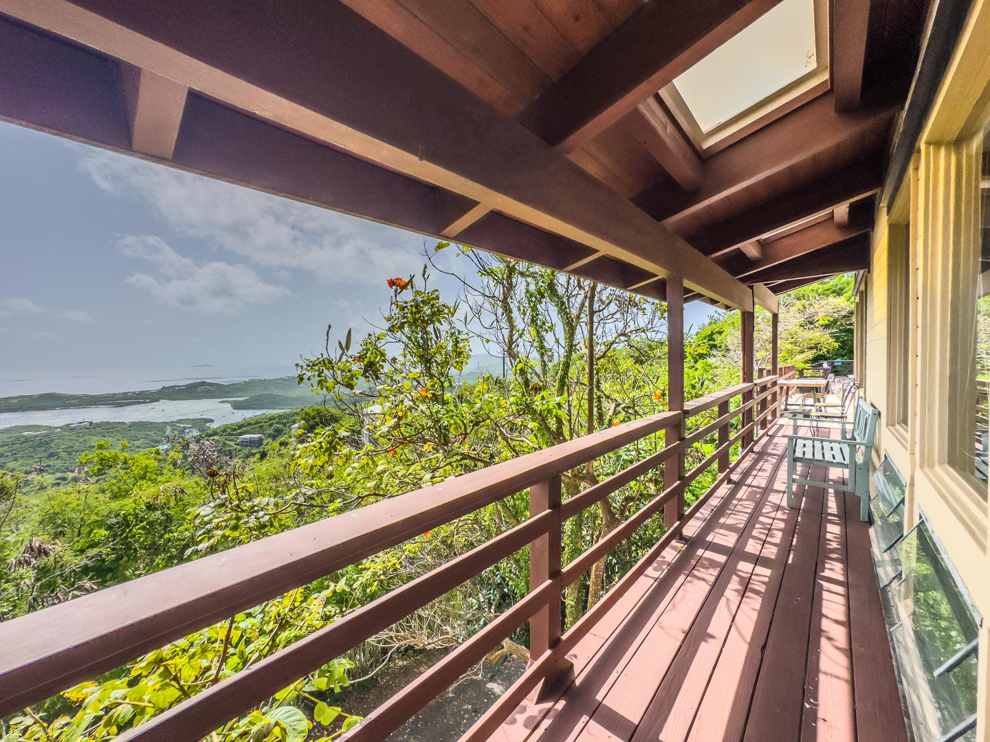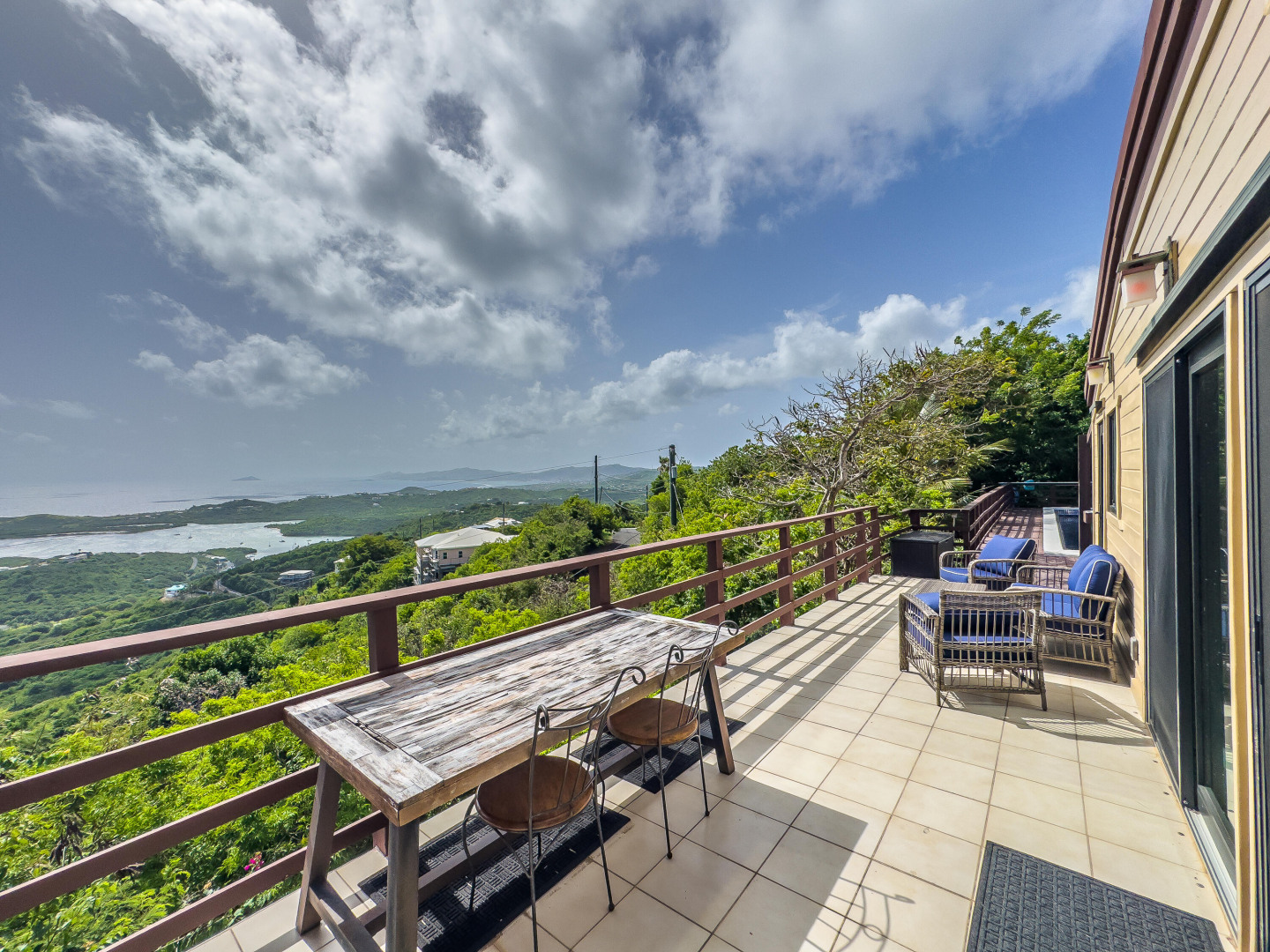 Make this hillside Retreat with exceptional Caribbean Ocean views your Home!This home provides breathtaking views of the Caribbean Sea, Christiansted Harbor, Salt River, and Buck Island. Enjoy the beauty of these vistas both day and night from the comfort of your residence.This thoughtfully designed home features a two-sided fireplace, an indoor Koi pond, and a cobalt blue double lap pool surrounded by an inviting deck and outdoor bar which can be accessed via the Main House or the exterior stairs coming from the apartment.The spacious master suite is a retreat in itself, boasting vaulted ceilings, a large walk-in closet, and a luxurious skylit bathroom equipped with a custom double vanity and expansive shower. The second bedroomoffers an ensuite bathroom with French doors that open to a private deck, while the third bedroom/den is conveniently located near a full bathroom. The dining area seamlessly transitions to the pool deck, providing an ideal space for entertaining.